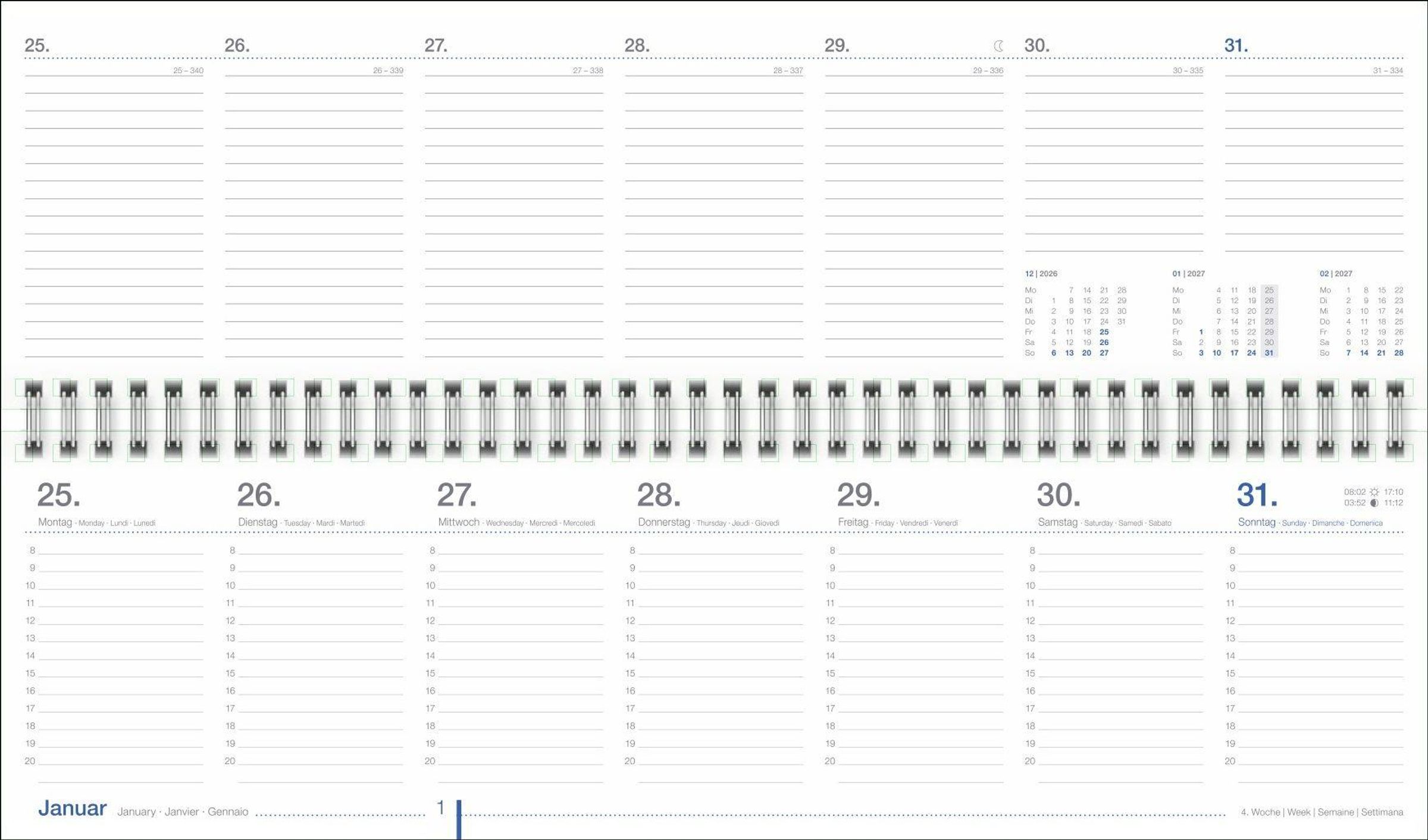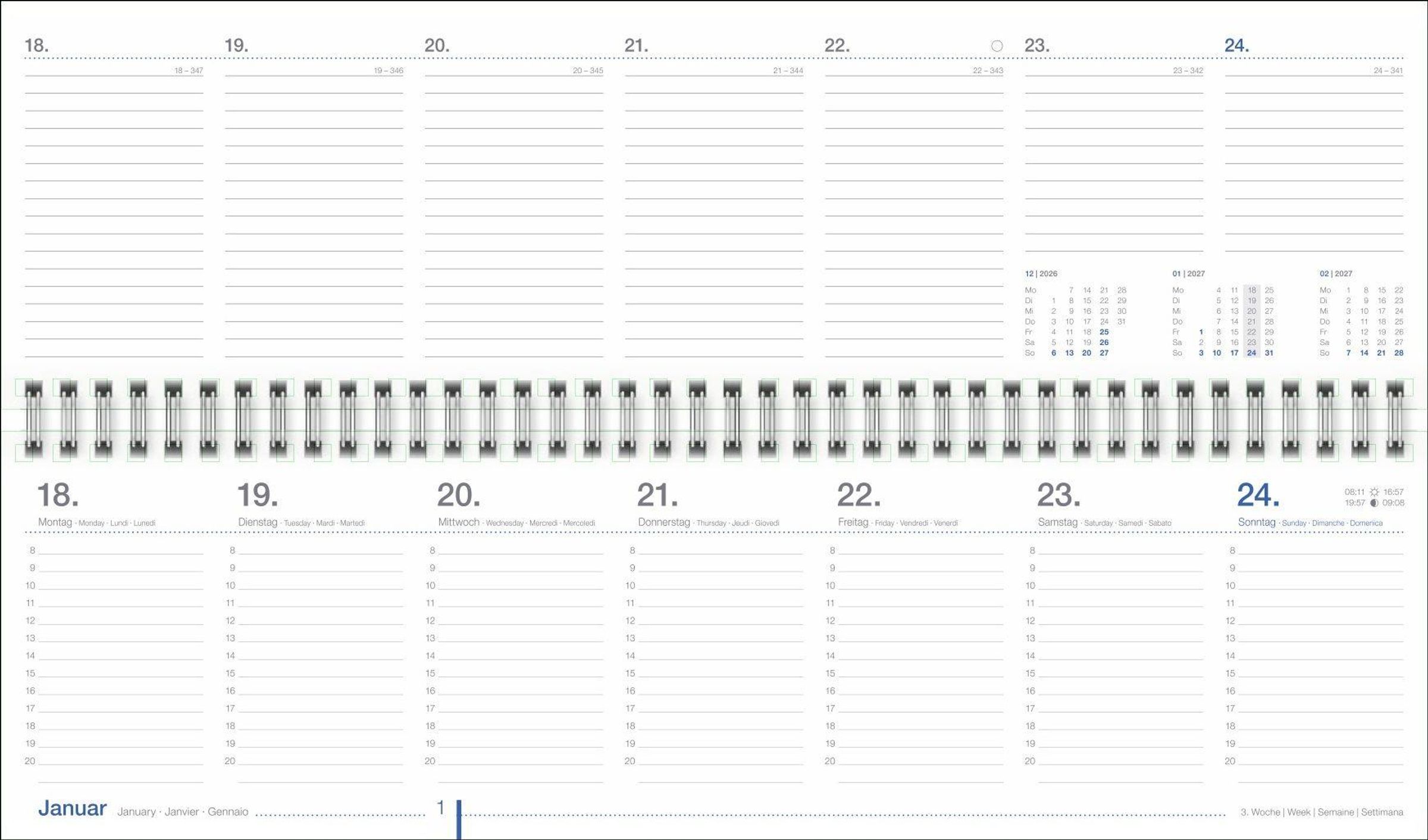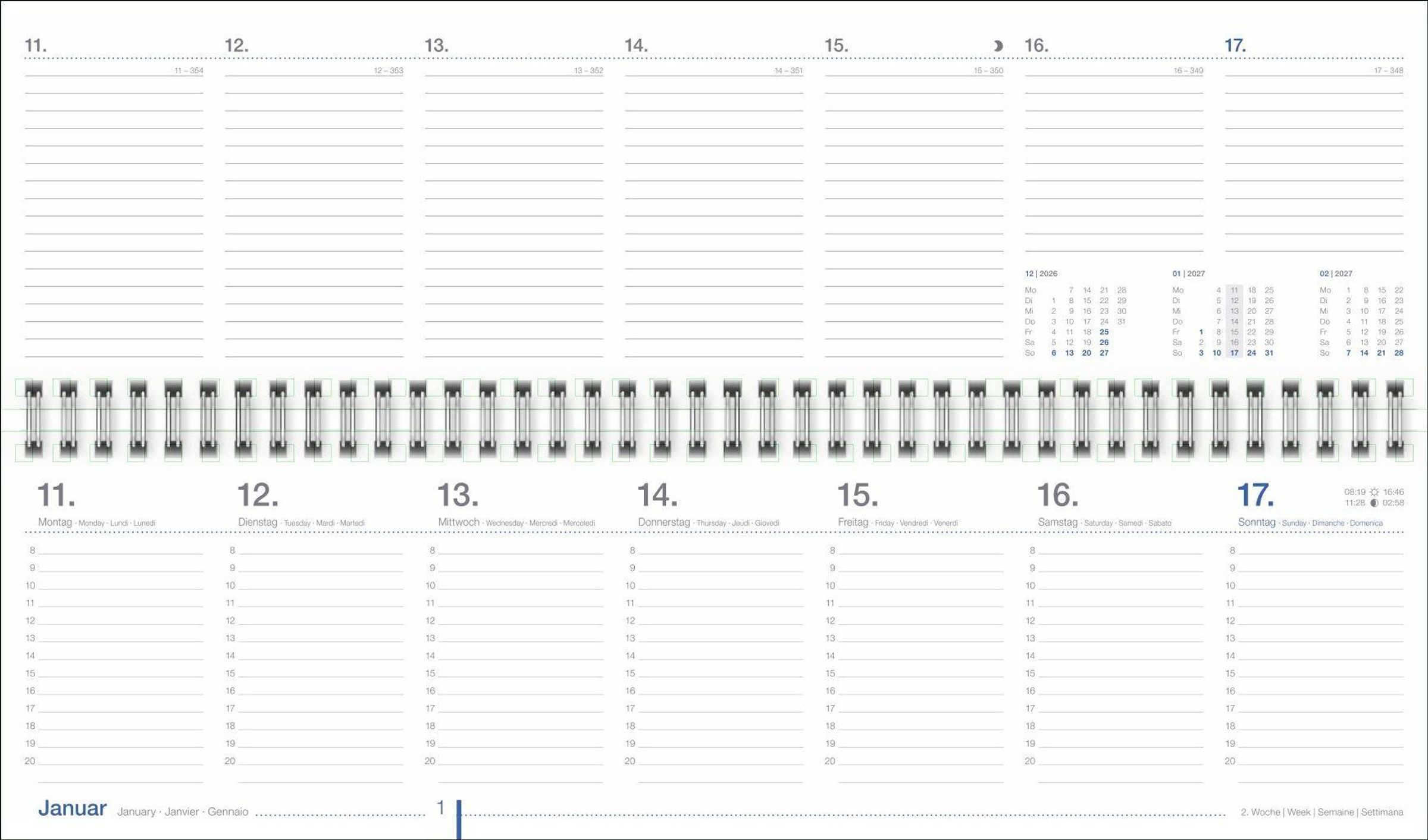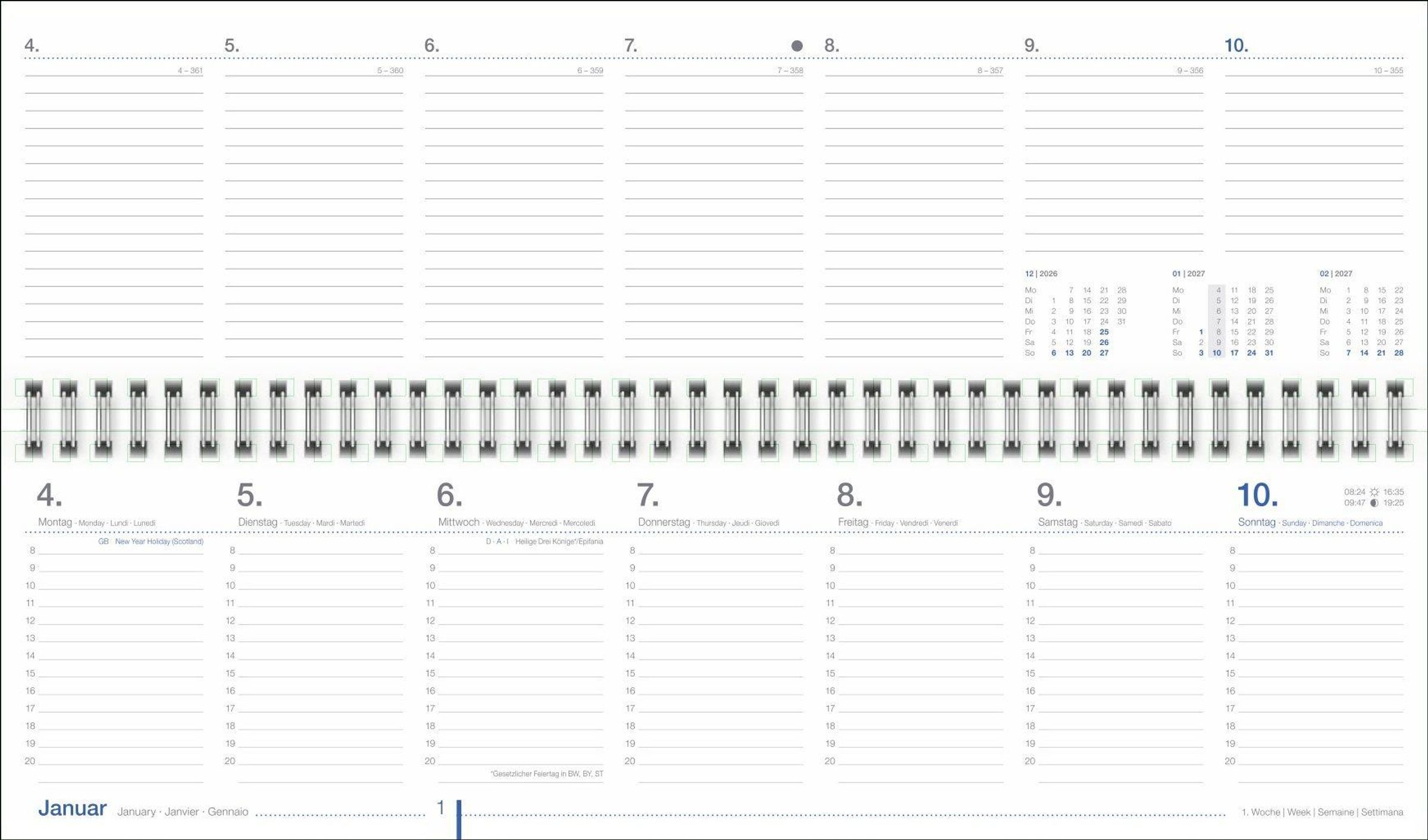 - Praktischer Tischquerkalender zum Umklappen. Zeitloser Spiral-Kalender 2027 fürs Büro. Wochenplaner für den Schreibtisch.