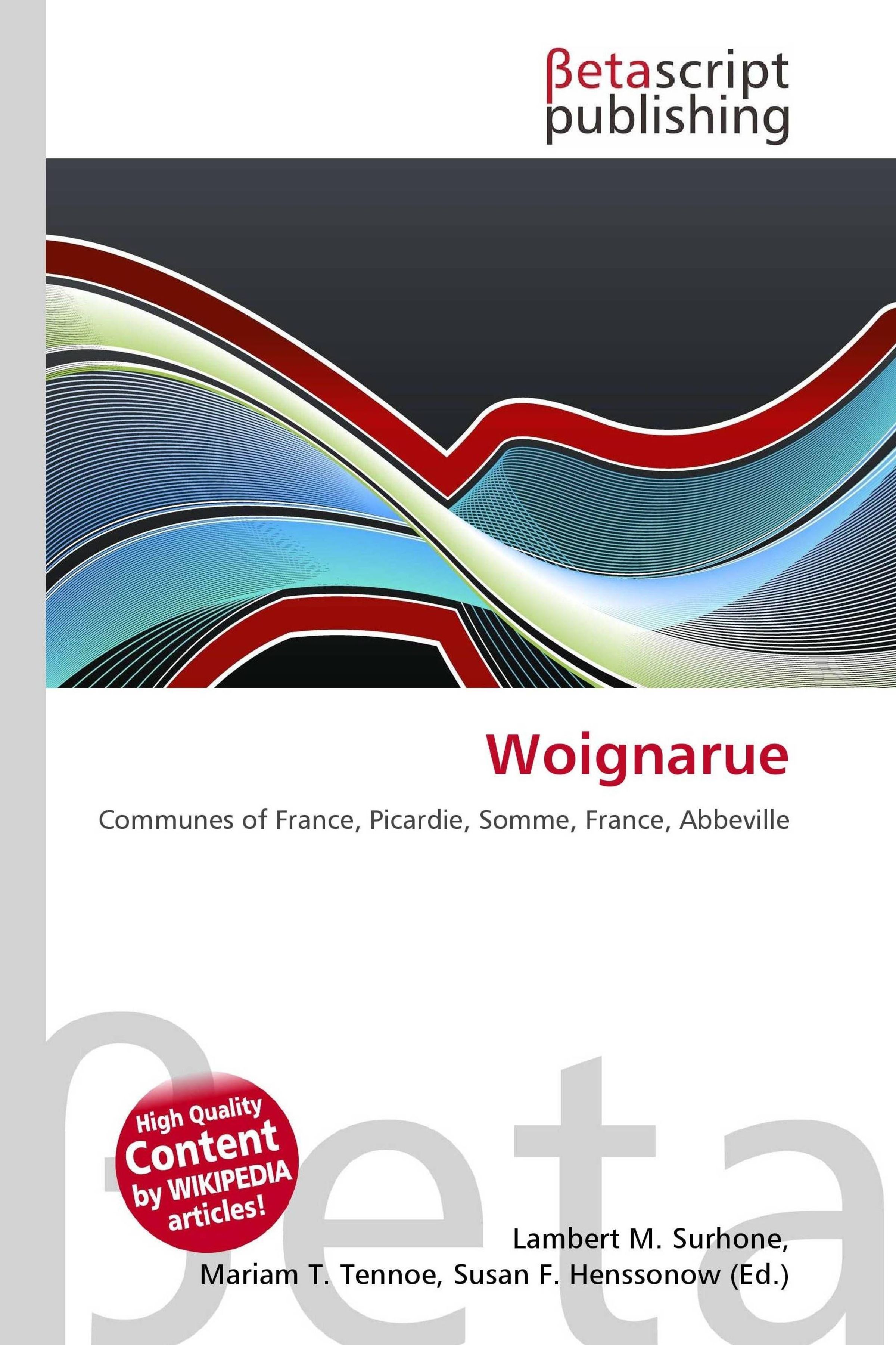 Please note that the content of this book primarily consists of articles available from Wikipedia or other free sources online. Woignarue is a commune in the Somme department in Picardie in northern France. Somme is a département of France, located in the north of the country and named after the Somme river. It is part of the Picardie region of France. The north central area of the Somme département was the site of a series of battles through the Great War. Particularly significant was the 1916 Battle of the Somme. As a result of this and other battles fought in the area the department is home to many military cemeteries and several major monuments commemorating the many soldiers from various countries who died on its battlefields.