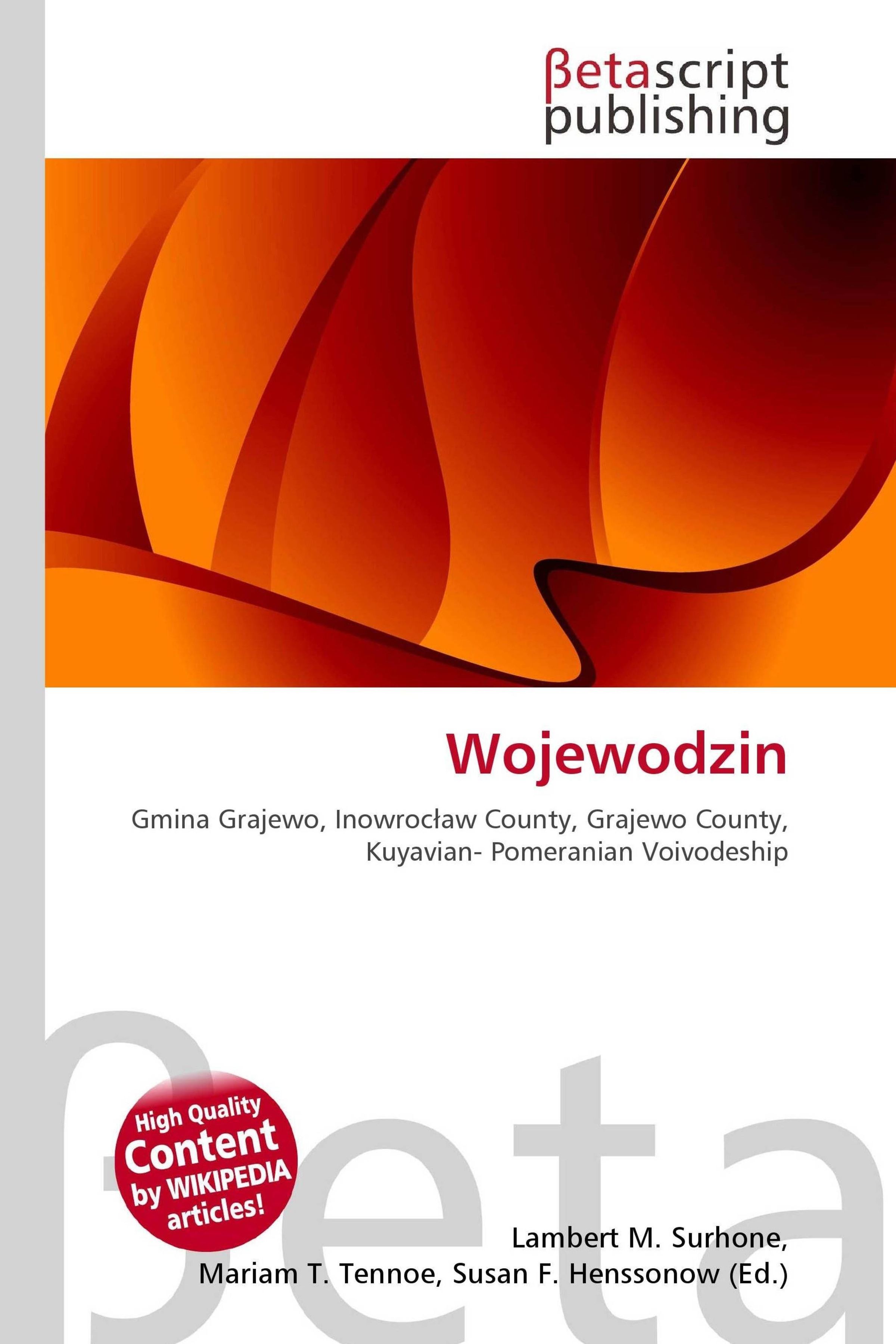 Please note that the content of this book primarily consists of articles available from Wikipedia or other free sources online. Wojewodzin is a village in the administrative district of Gmina Grajewo, within Grajewo County, Podlaskie Voivodeship, in north-eastern Poland. It lies approximately 4 kilometres (2 mi) south of Grajewo and 74 km (46 mi) north-west of the regional capital Biäystok. Gmina Grajewo is a rural gmina (administrative district) in Grajewo County, Podlaskie Voivodeship, in north-eastern Poland. Its seat is the town of Grajewo, although the town is not part of the territory of the gmina. The gmina covers an area of 308.13 square kilometres (119.0 sq mi), and as of 2006 its total population is 6, 142.
