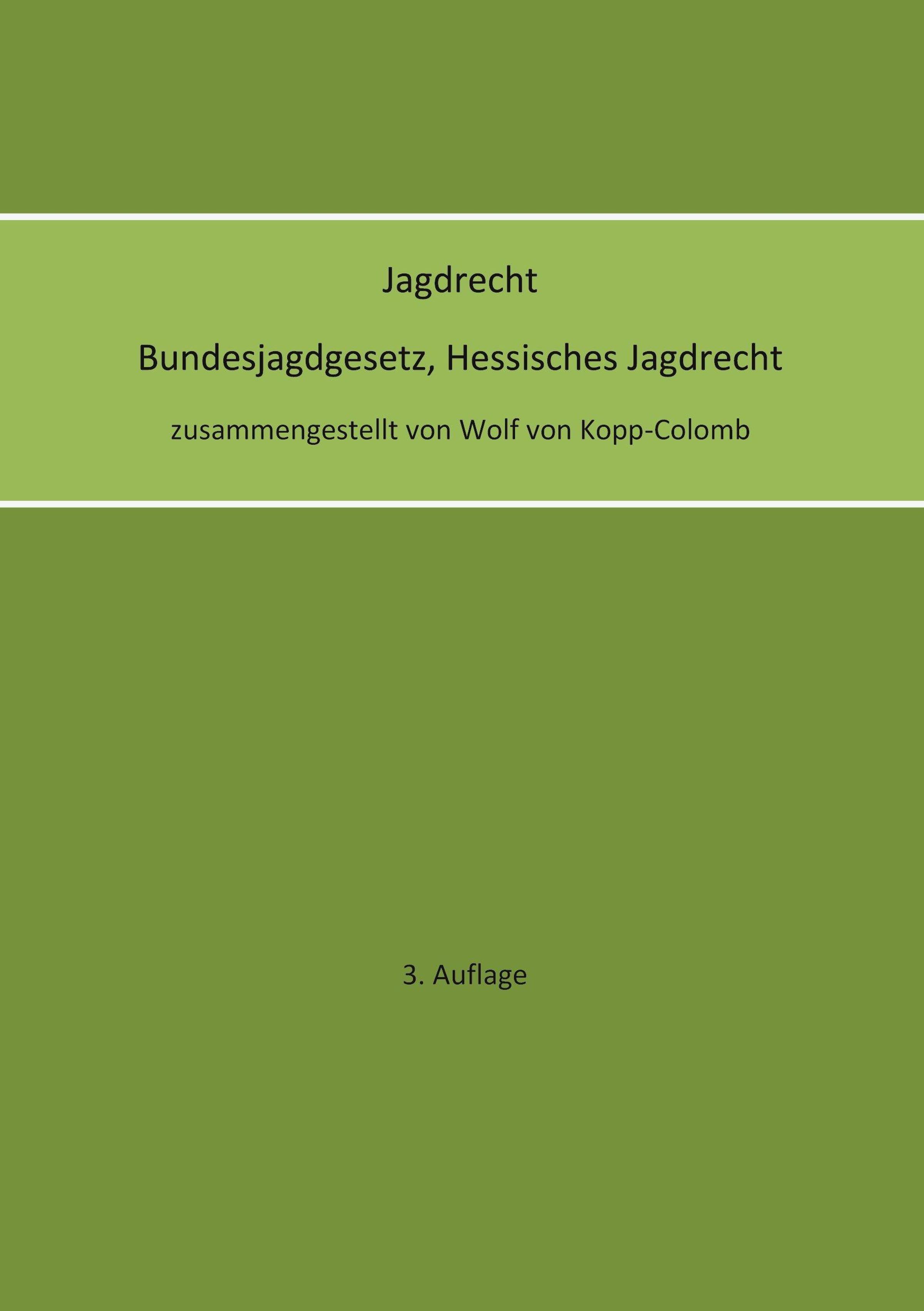 Wolf von Kopp-Colomb: Jagdrecht Bundesjagdgesetz, Hessisches Jagdrecht (3. Auflage), Kartoniert / Broschiert