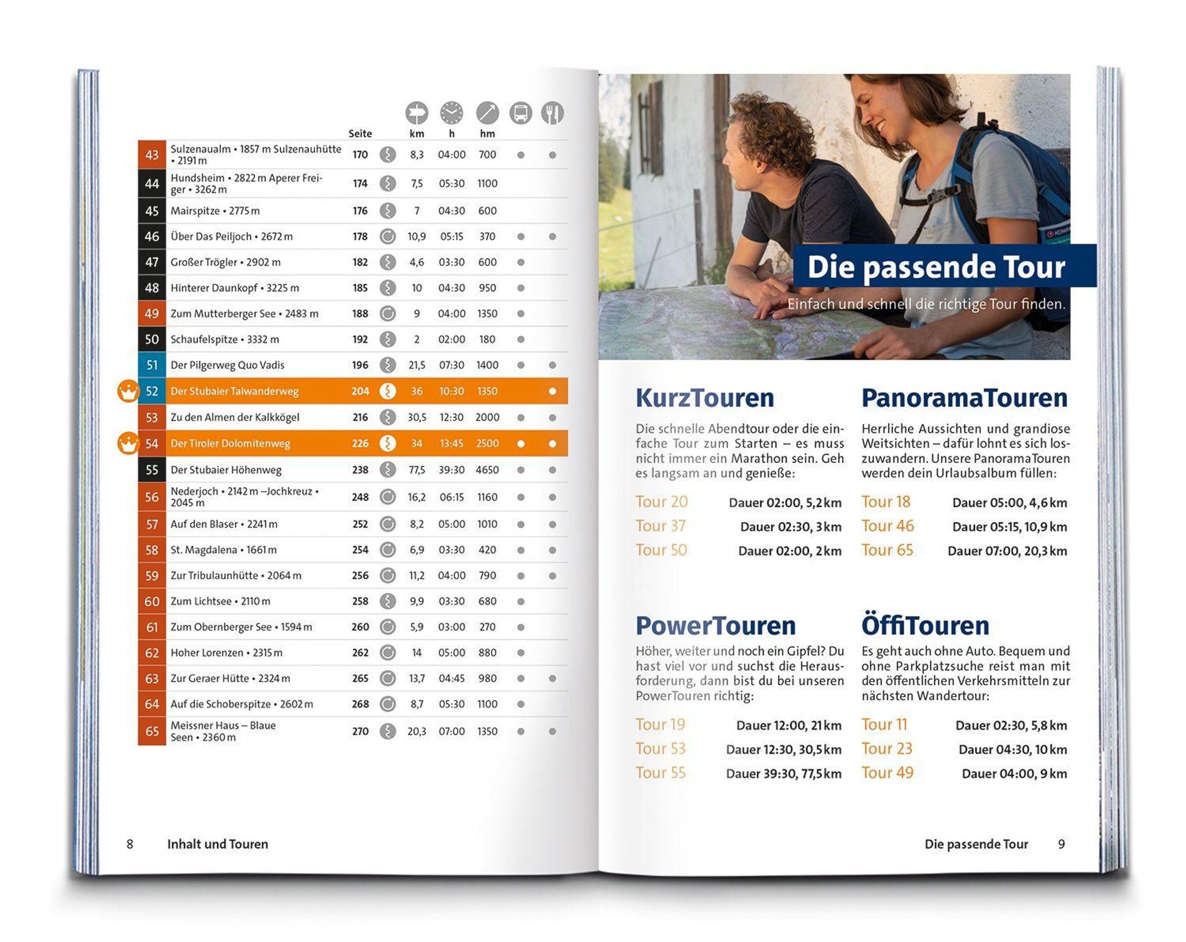 Extra-Tourenkarte unterstützt bei Tourenauswahl
