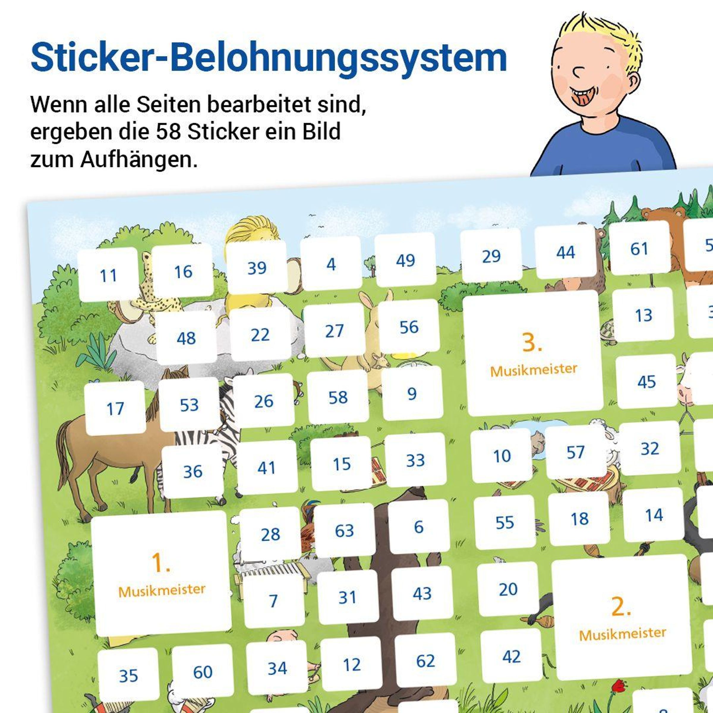 - 17 x 24 cm, 64 S., vierf., Gh, Stickerbogen, Lösungsheft (16 S. ), Hörbeispiele