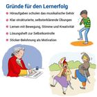 Die Übungen sprechen dabei die unterschiedlichen Lerneingangskanäle der Schülerinnen und Schüler in vielfältiger Weise an: Sie lernen über Bewegung, über das Hören, Sprechen und Singen. Sie schreiben auf, reflektieren, vergleichen und übertragen. Am Ende jedes Kapitels gibt es eine Musikmeister-Doppelseite zur spielerischen Anwendung und Festigung des zuvor Geübten.