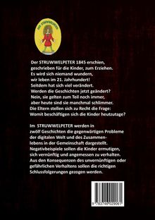 Im STRUWWELPETER werden in zwölf Geschichten die gegenwärtigen Probleme der digitalen Welt und des Zusammenlebens in der Gemeinschaft dargestellt. Negativbeispiele sollen die Kinder ermutigen, sich vernünftig und angemessen zu verhalten. Aus den Konsequenzen des unvernünftigen oder gefährlichen Verhaltens sollen die richtigen Schlussfolgerungen gezogen werden.