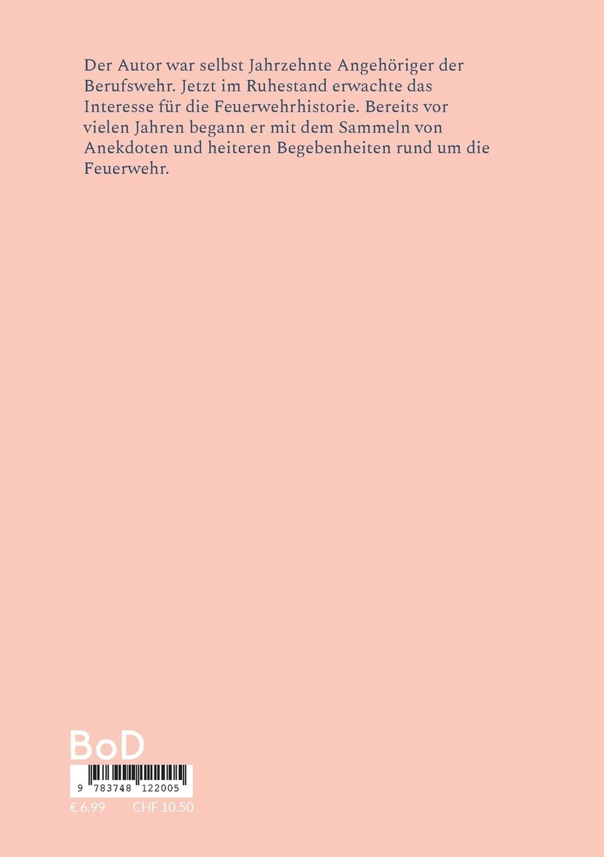 Der Autor war selbst Jahrzehnte Angehöriger der Berufswehr. Jetzt im Ruhestand erwachte das Interesse für die Feuerwehrhistorie. Bereits vor vielen Jahren begann er mit dem Sammeln von Anekdoten und heiteren Begebenheiten rund um die Feuerwehr.