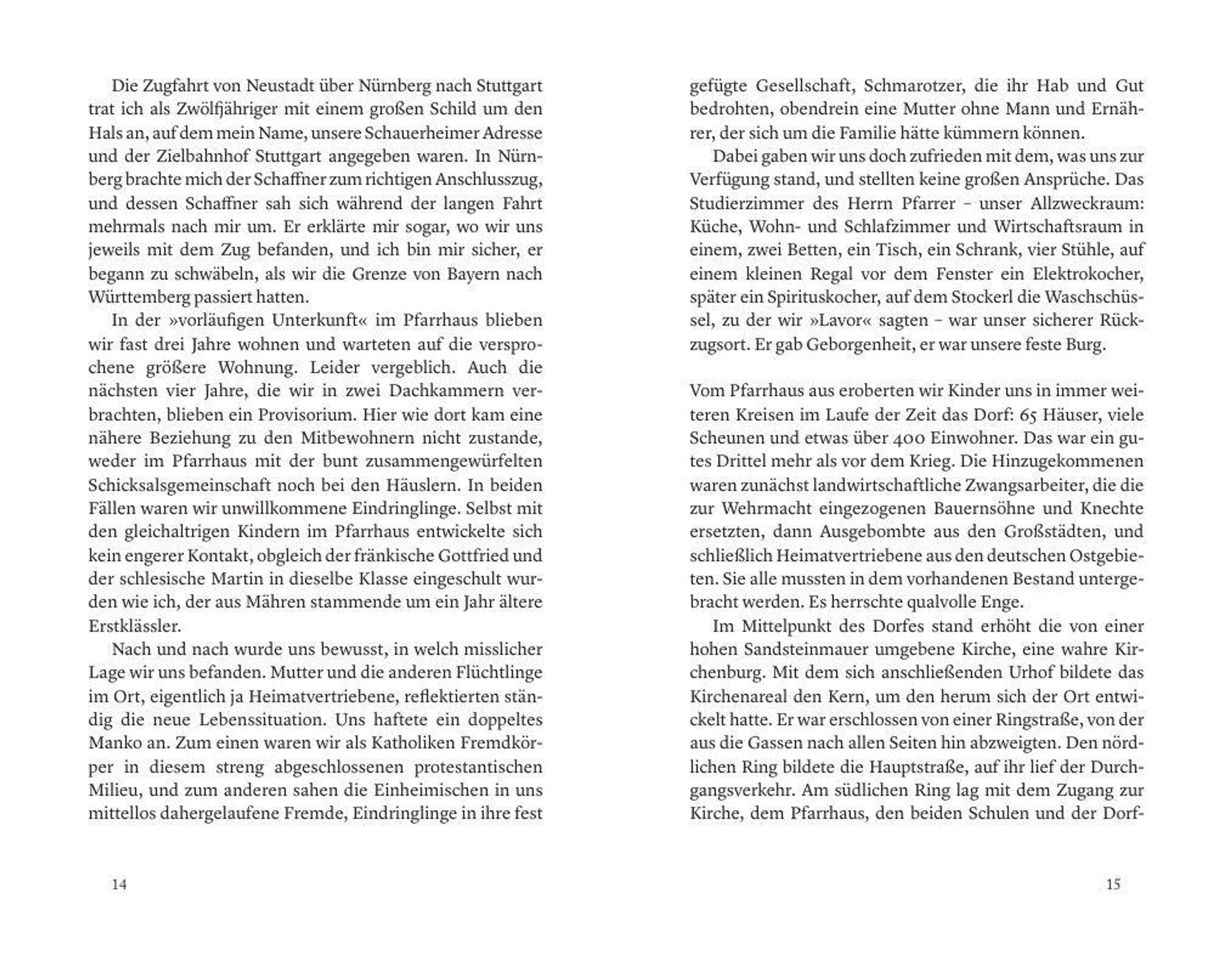 Jetzt im Taschenbuch: das ergreifende Memoir von Bundesverdienstkreuzträger Wolfgang Mück über den Verlust von Heimat und die Eroberung eines neuen Lebens Der siebenjährige Wolfgang kommt im Jahr 1946 mit seiner Mutter und seinen zwei Brüdern nach der Vertreibung aus Mähren im fränkischen Dorf Schauerheim an und muss für einige Jahre ein provisorisches Notquartier im Pfarrhaus beziehen. Schritt für Schritt lebt sich die Familie in die festgefügte Dorfgemeinschaft ein, stößt teils auf freundliche Unterstützung, teils aber auch auf strikte Ablehnung und heftige Ressentiments gegen die sogenannten >>Rucksackdeutschen<<. Der scheue Bub wird zu einem Beobachter dieser für ihn zunächst so fremden Welt mitsamt ihren allmählich vertrauter werdenden Menschen und Gebräuchen und einer Landschaft, die in ihrer Weite an die heimatliche Herkunft erinnert.