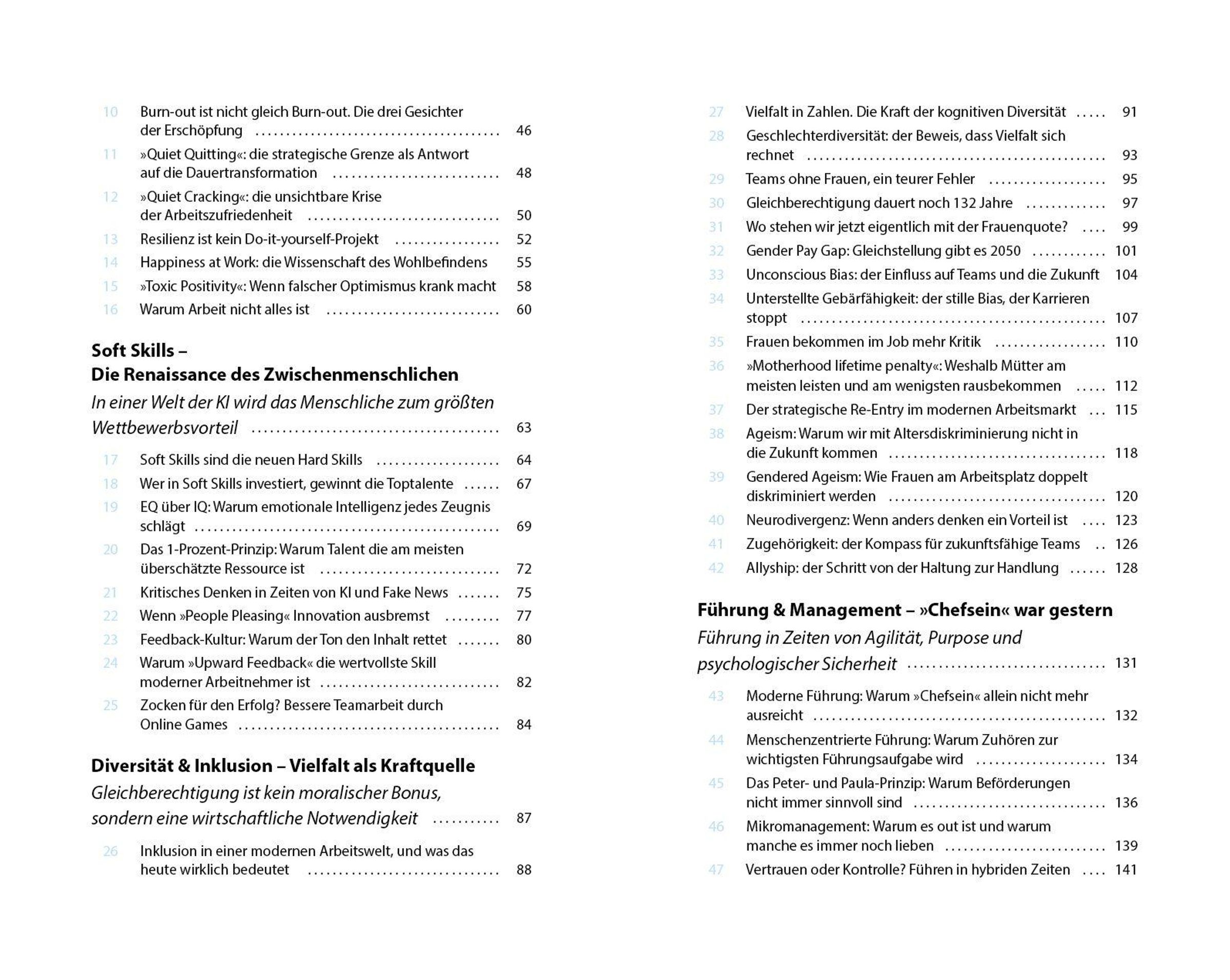 Dieses Buch liefert 100 Impulse für alle, die nicht einfach funktionieren, sondern gestalten wollen. Fundiert, aufrüttelnd, konkret. Es geht um Machtspiele im Büro und mentale Gesundheit, um KI am Arbeitsplatz und die leisen Krisen in lauten Karrieren.