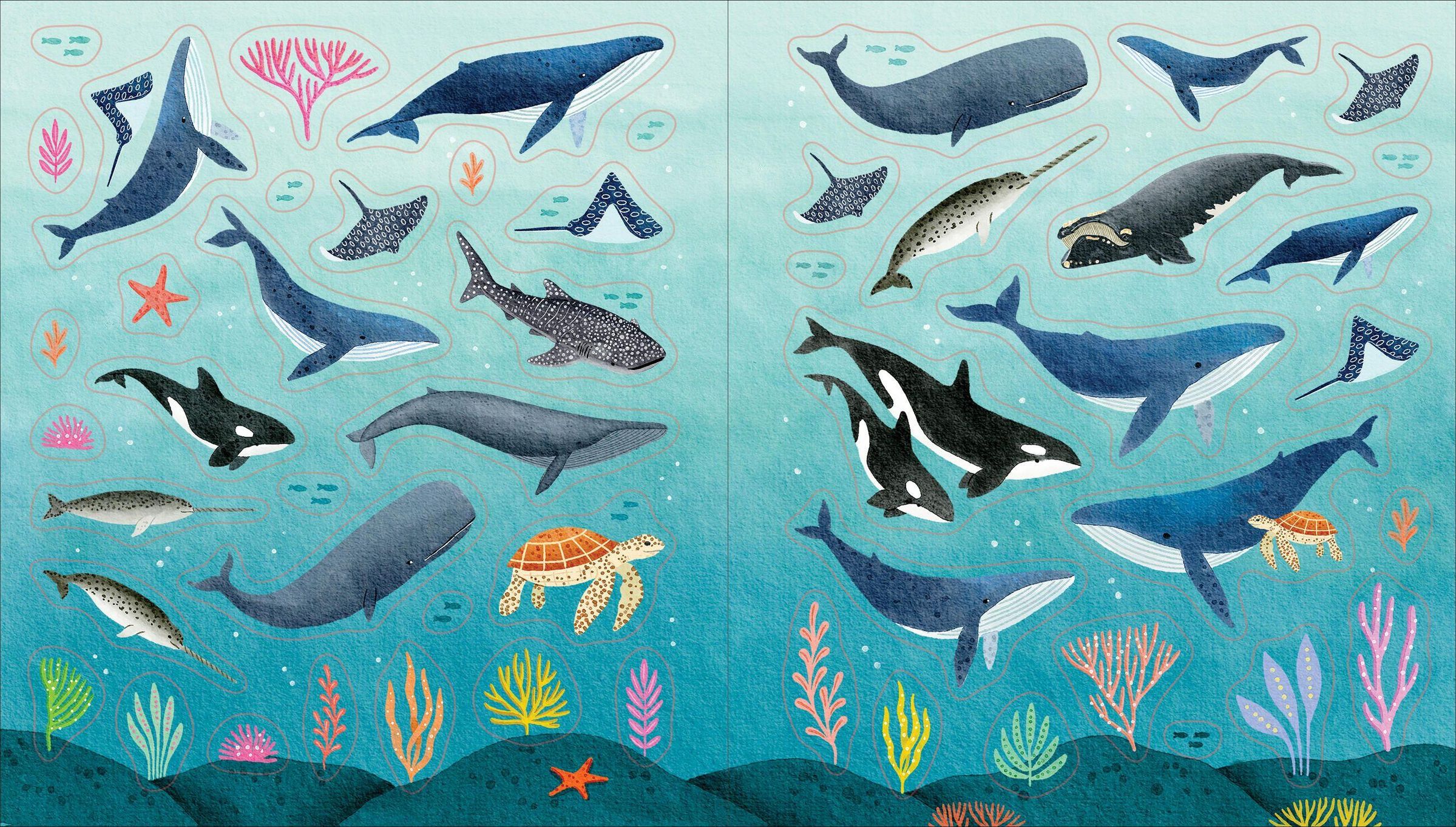 Wade into the deep end with this stunning collection of hundreds of illustrated stickers, each one a celebration of the vast, majestic, and mysterious ocean. There's a scattering of intricately detailed seashells of all shapes and sizes; sea turtles swim playfully with their babies; graceful dolphins jump and glide through the waves; and much more. Specially created for anyone who loves the sea and being by the water, every sticker is a small work of art, meant to inspire creativity and infuse your notebooks, postcards, and stationery with color, wonder, and whimsy.