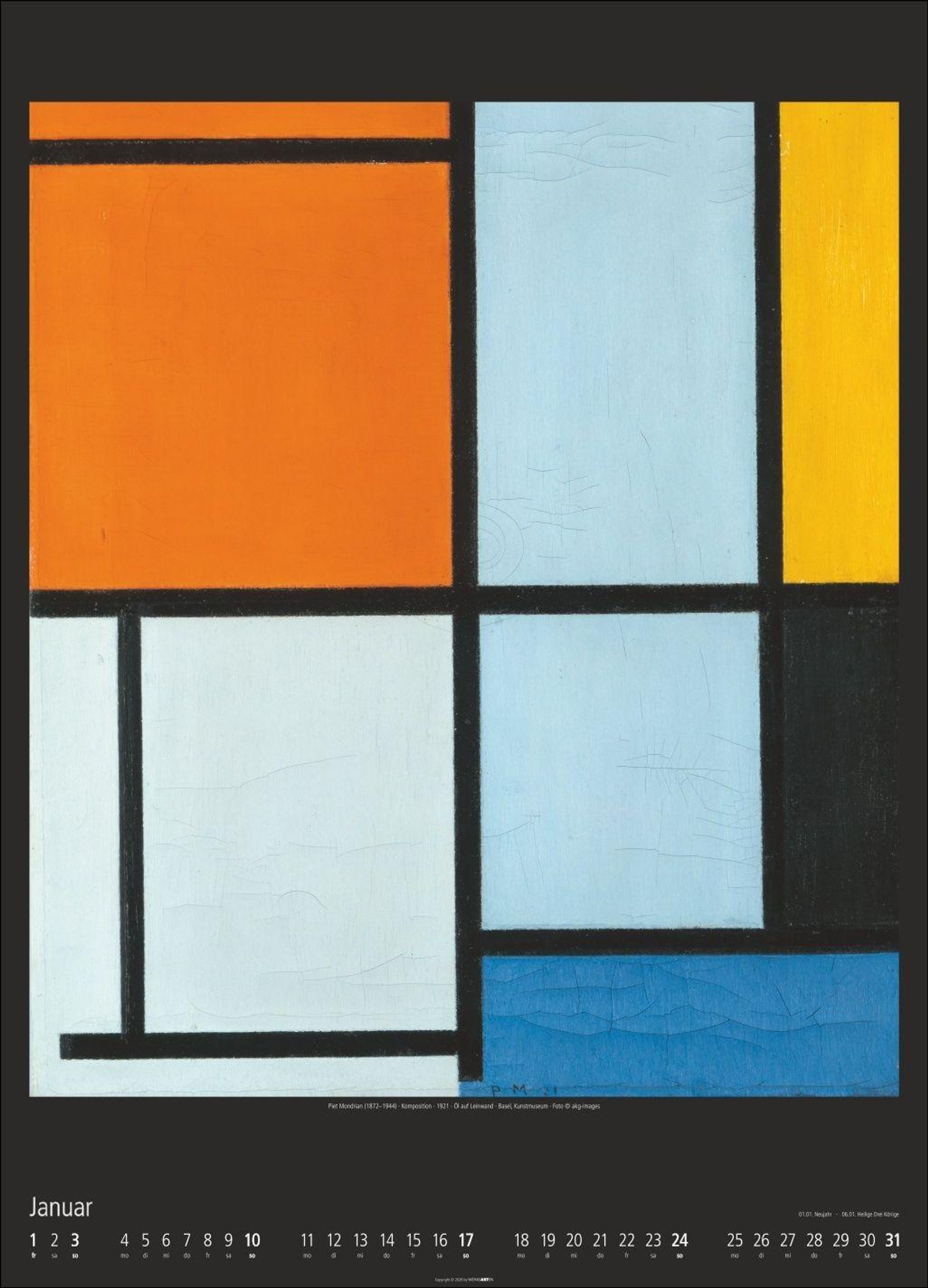 Auf Augenhöhe mit den großen Meistern des 20. Jahrhunderts: Kunstkalender im XXL-Format 49 x 68 cm mit Gemälden von Mondrian, Klee, Oskar Schlemmer und anderen
