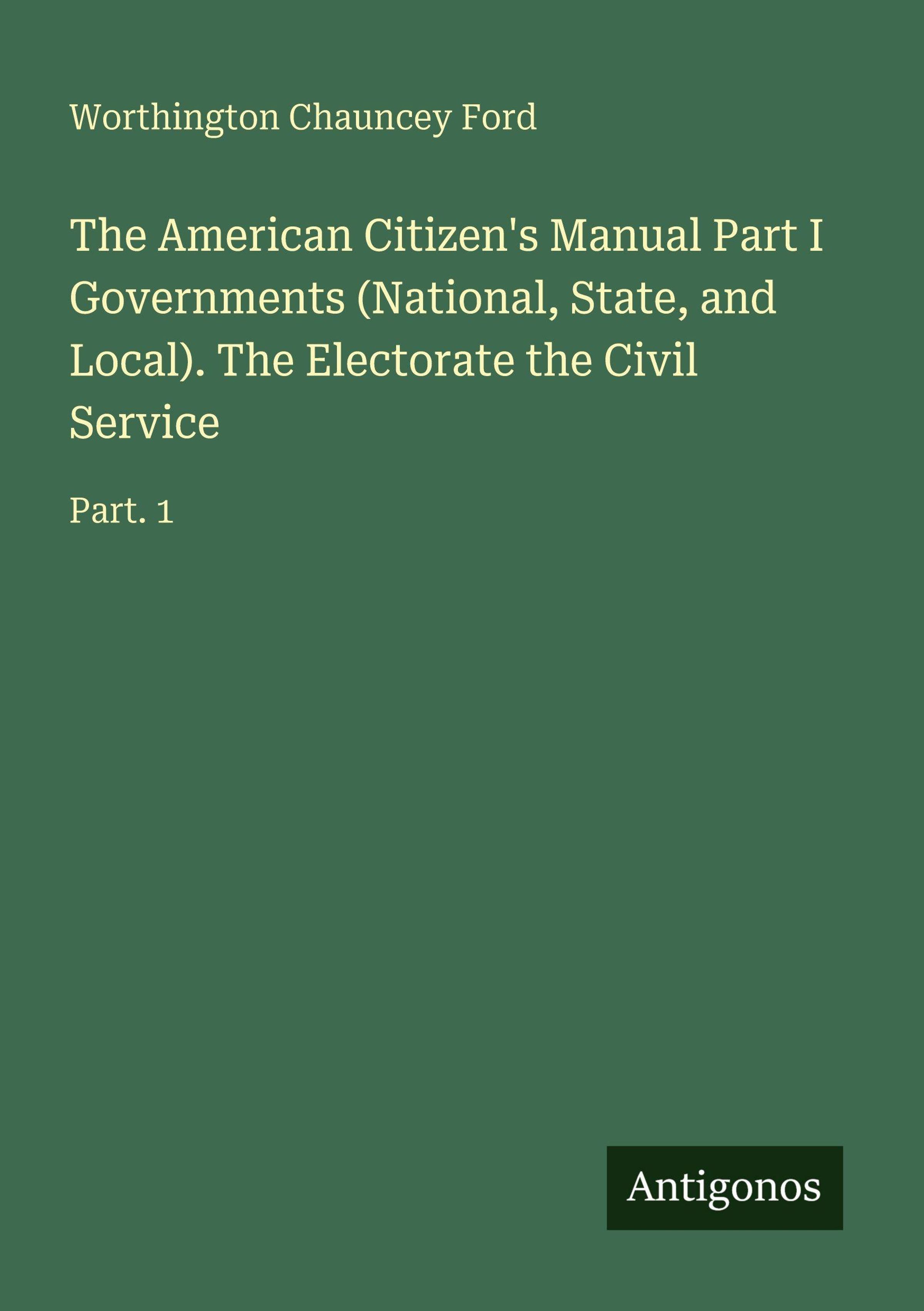 Worthington Chauncey Ford: The American Citizen's Manual Part I Governments (National, State, and Local). The..., Kartoniert / Broschiert