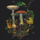 Gräser, Pilze, Moose und zarte Blumen: mystische Schönheiten des Ökosystems Wald, arrangiert in kunstvollen Gesamtkompositionen