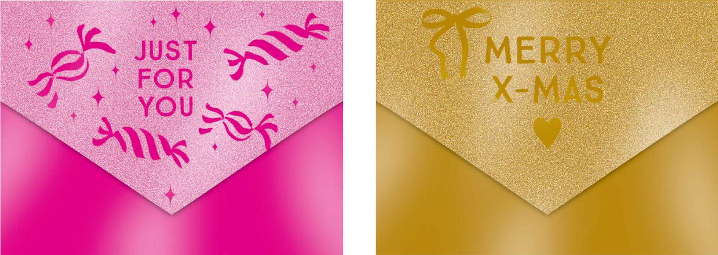 Geschenkumschläge mit Glitter und glänzender Folie in Gold oder Pink