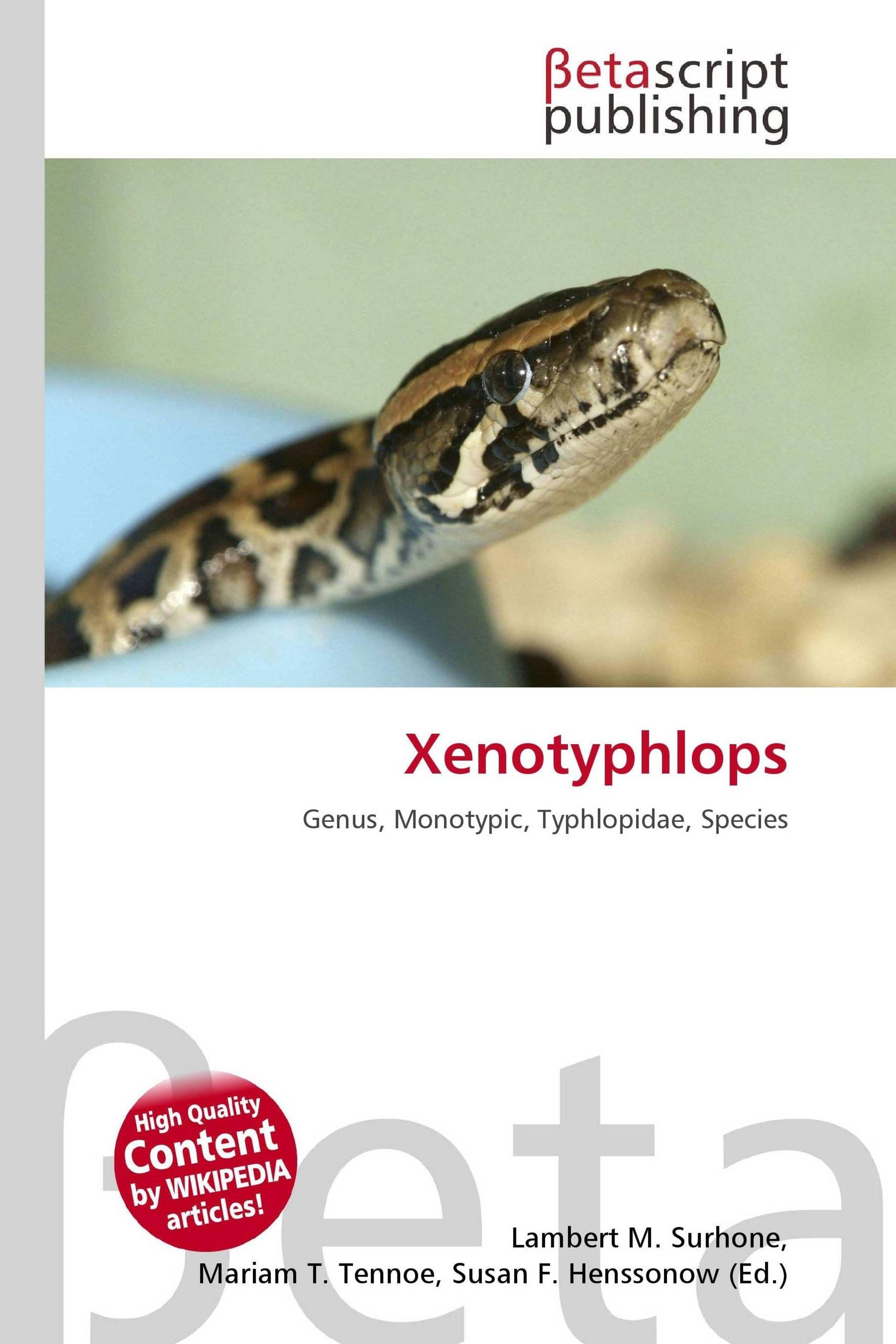 Oben: Betascript Publishing Logo. Titel: Xenotyphlops, Genus, Monotypic, Typhlopidae, Species. Eine Schlange ist abgebildet., Buch