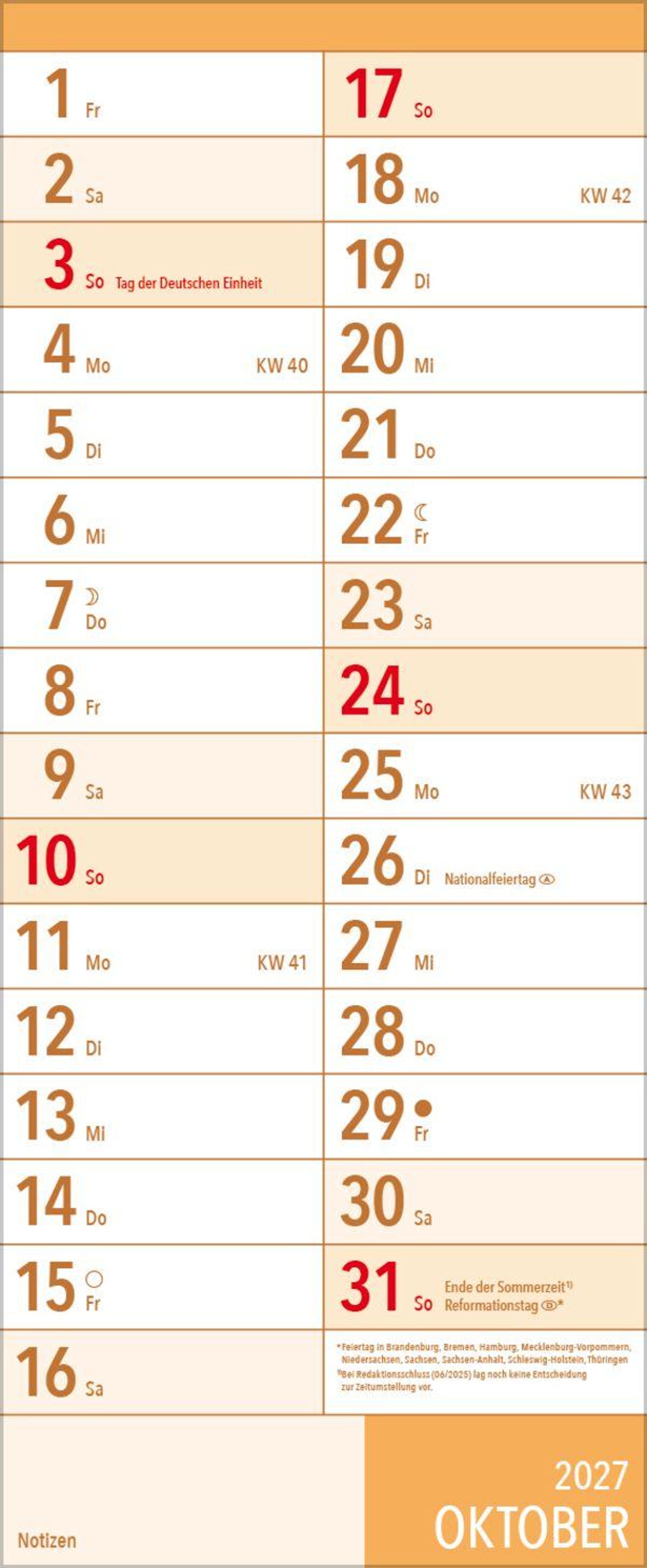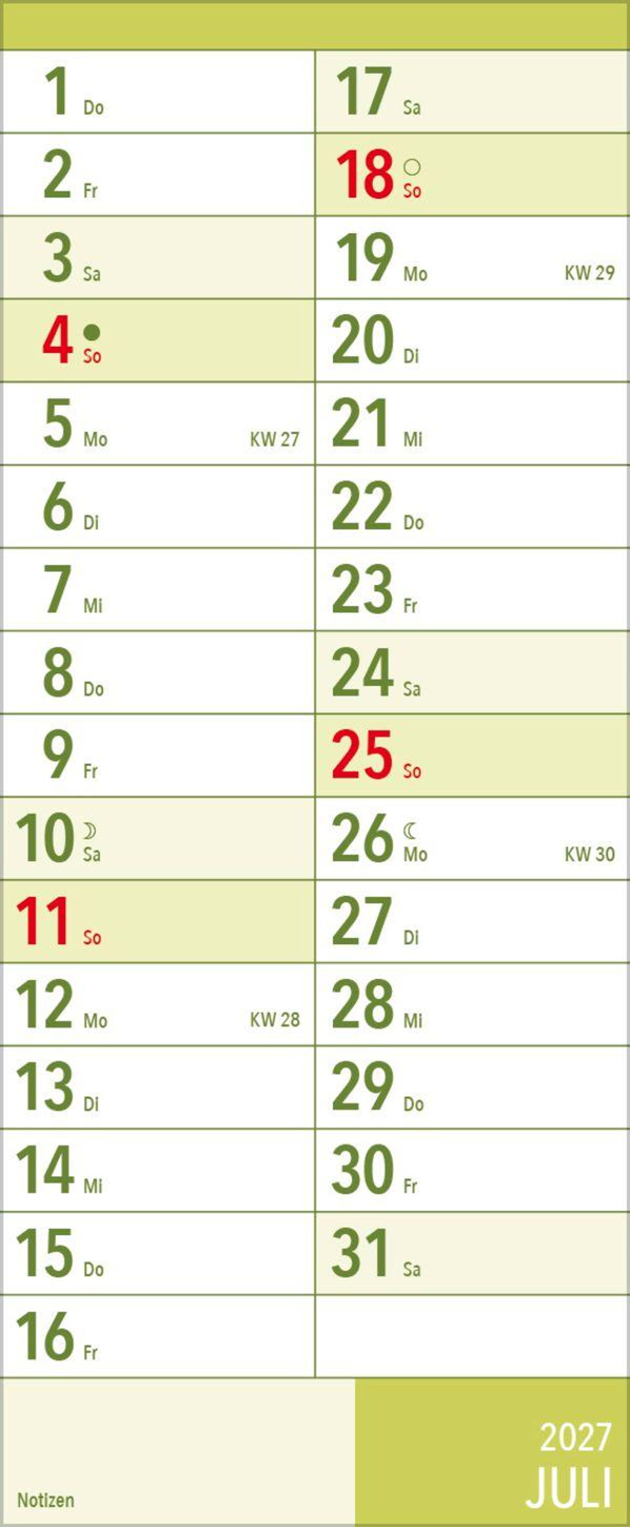 - Praktischer Streifenkalender mit Spiralbindung und extra großen Zahlen. Format: 19 x 46 cm