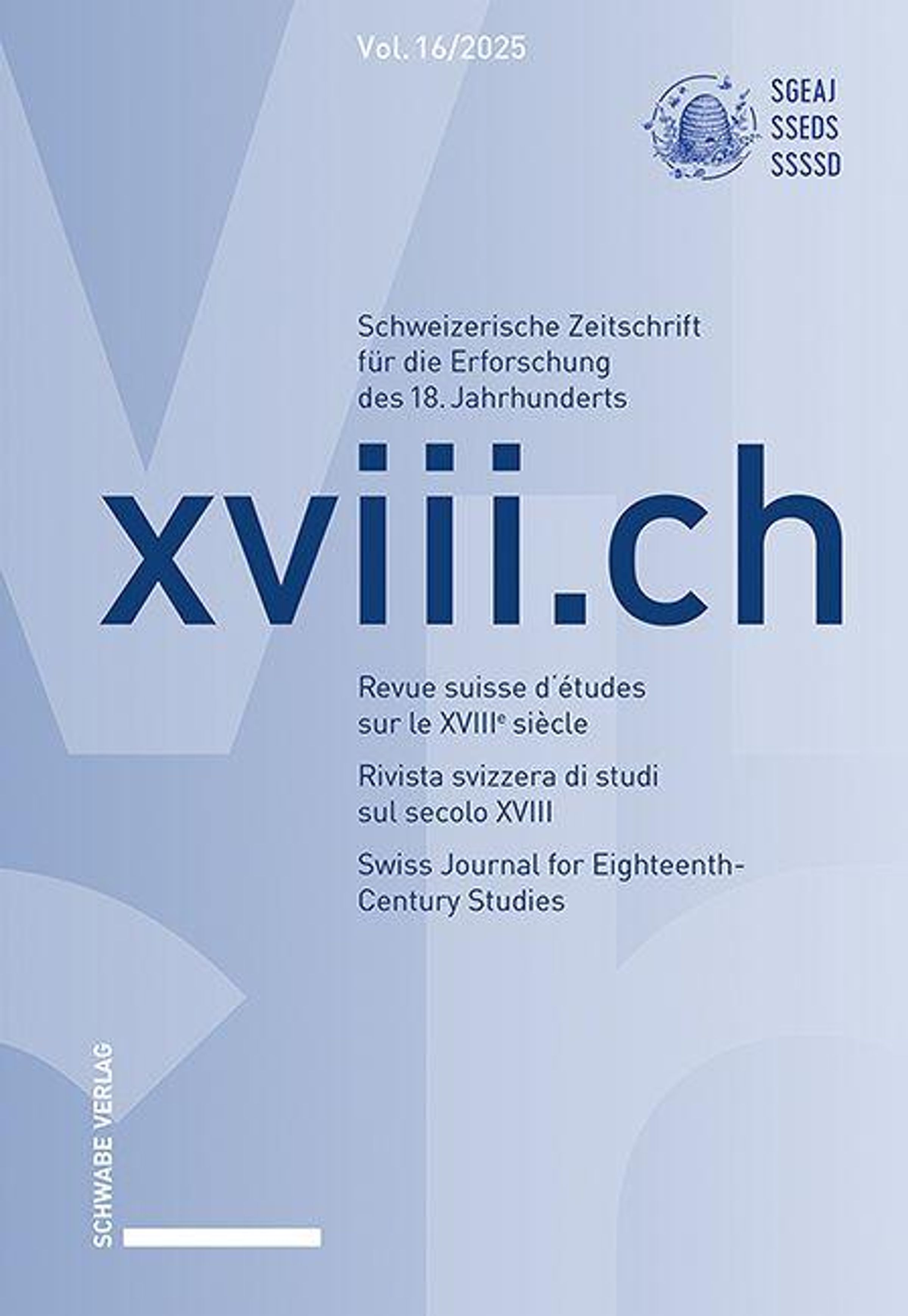 xviii. ch - Revue suisse d'étude sur le XVIIIe siècle publie des études issues de différentes disciplines touchant à l'histoire sociale, l'histoire culturelle et l'histoire des savoirs portant sur l'espace helvétique durant le siècle des Lumières. Elle paraît chaque année en alternance sous forme de numéro thématique et de numéro libre et propose des articles scientifiques, des éditions de sources commentées ainsi que des recensions. Elle s'attache à refléter la diversité régionale et linguistique de la Suisse. Le volume 2025 est un numéro libre qui comprend entre autres des articles sur l'histoire des sentiments, l'agentivité féminine, les questions économiques constitutives aux temps de guerre et les discours savants et encyclopédiques. Plus d'informations sur www. xviii. ch.