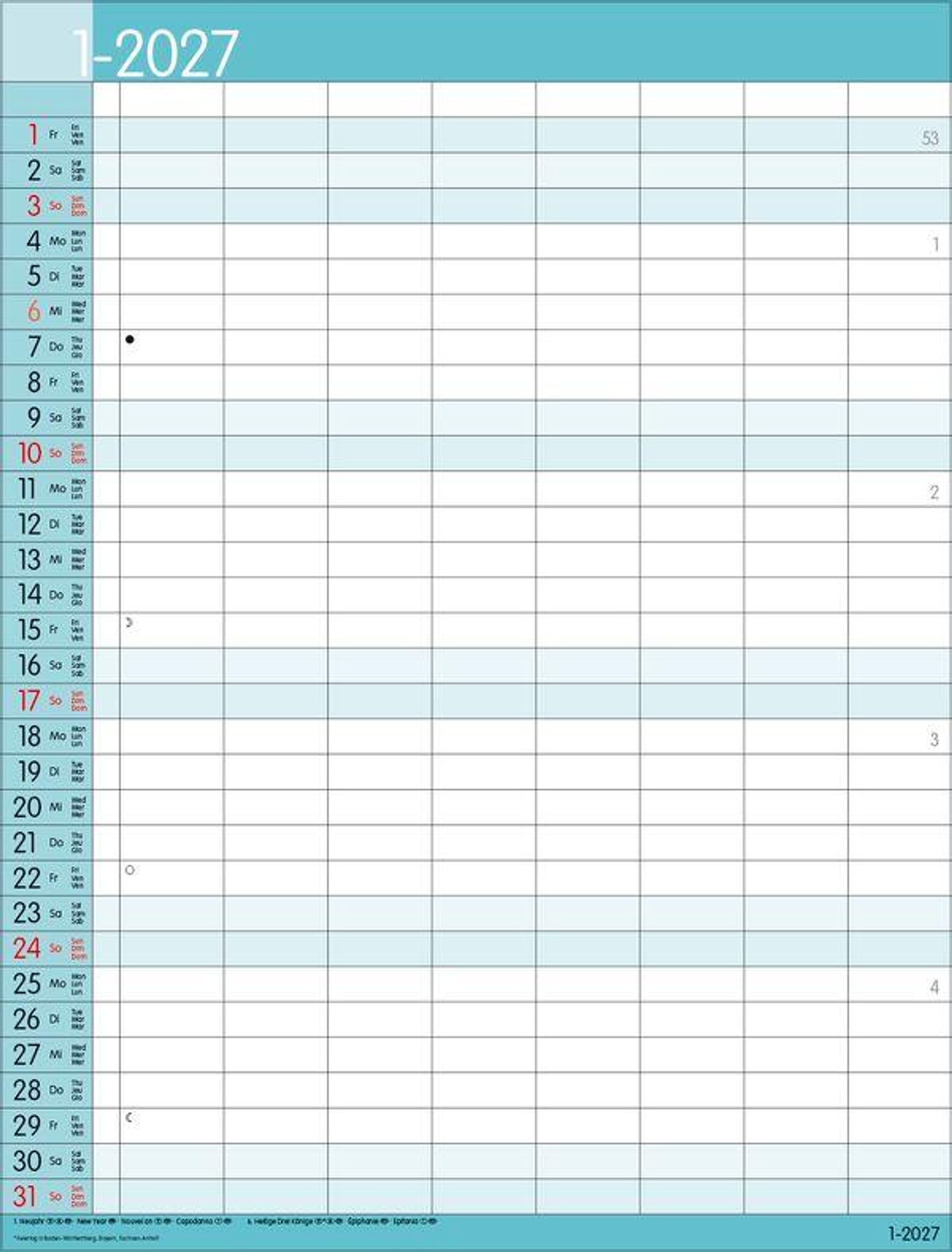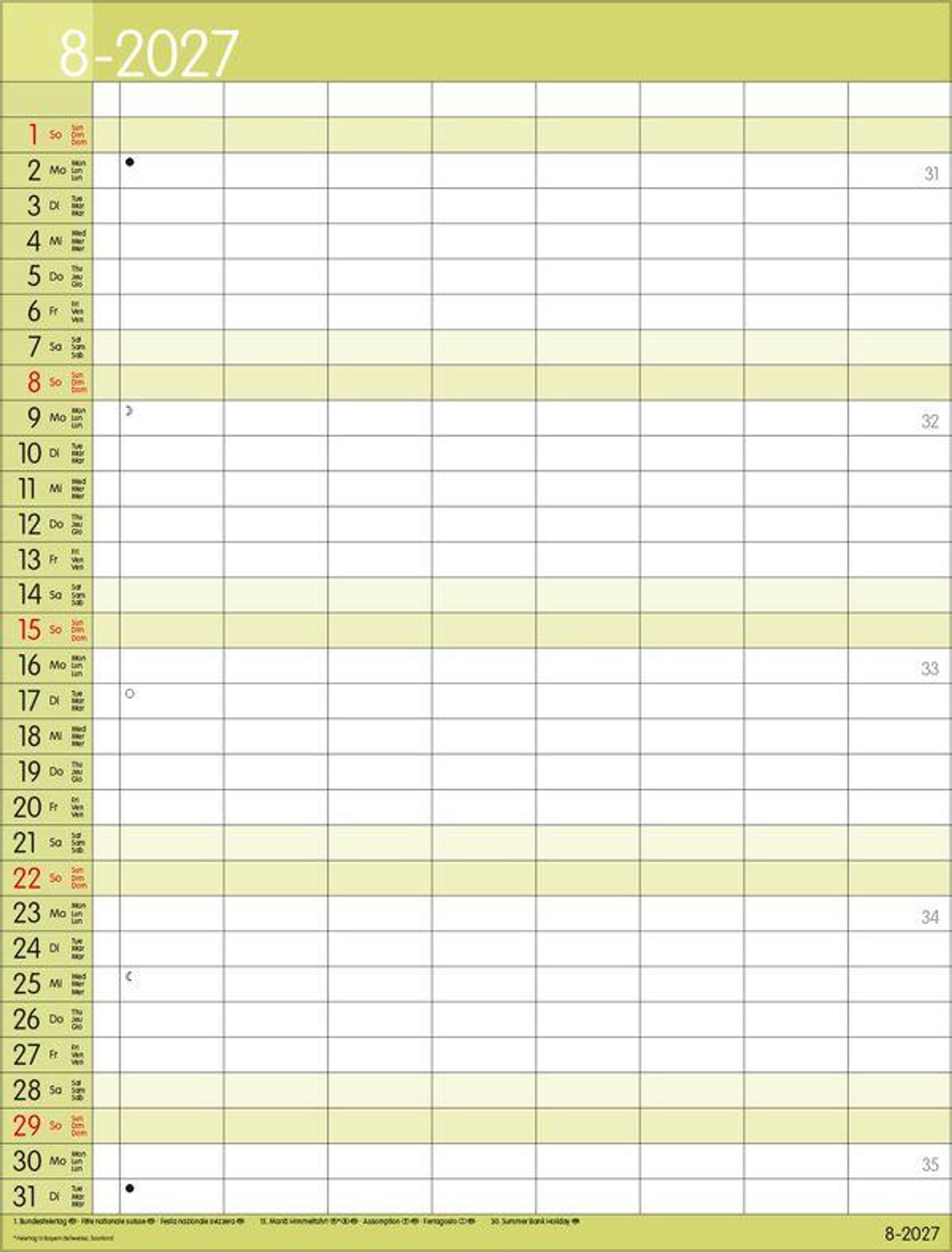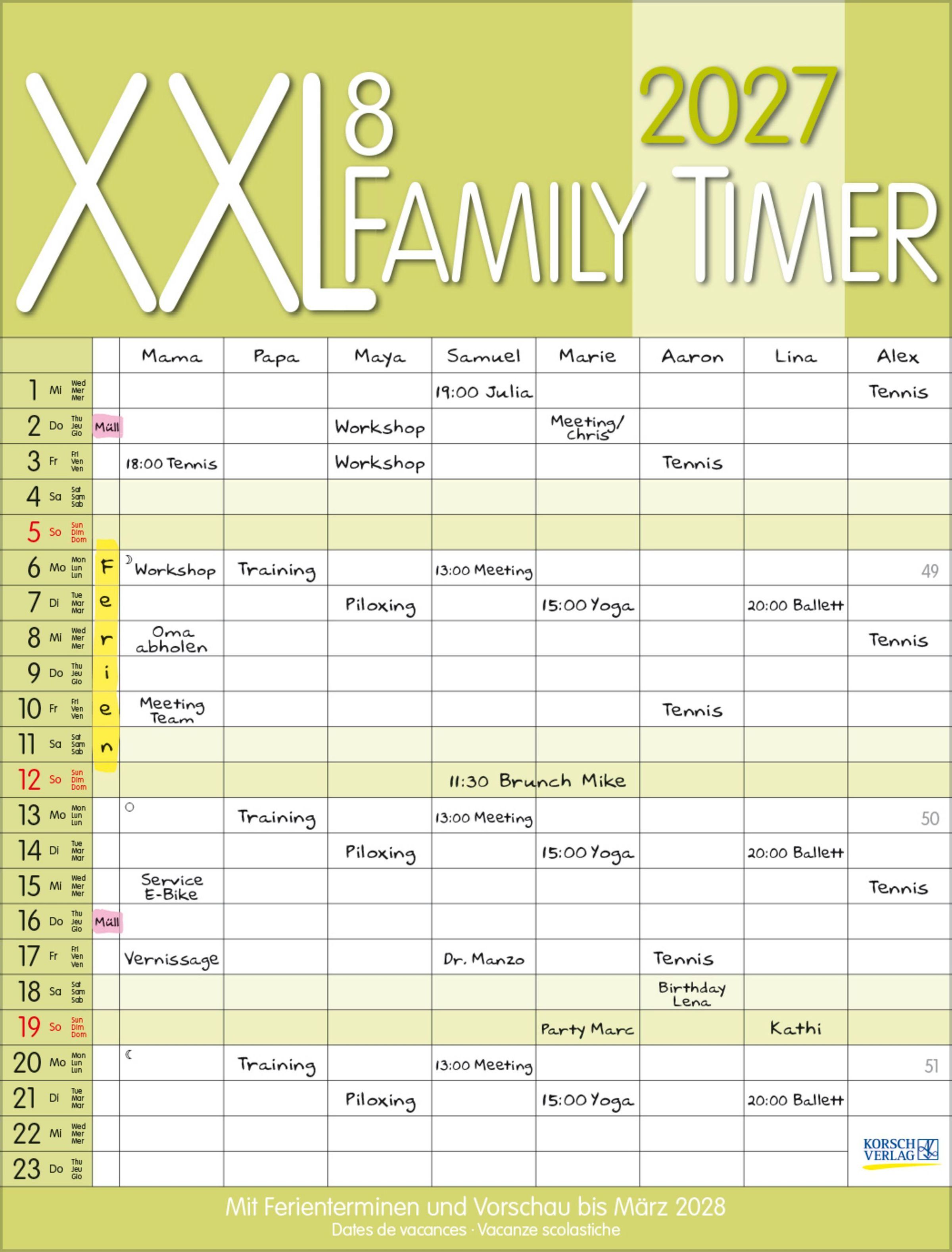 - Familienplaner mit 8 breiten Spalten. Hochwertiger Familienkalender mit Ferienterminen, extra Spalte, Vorschau bis März 2027 und nützlichen Zusatzinformationen.