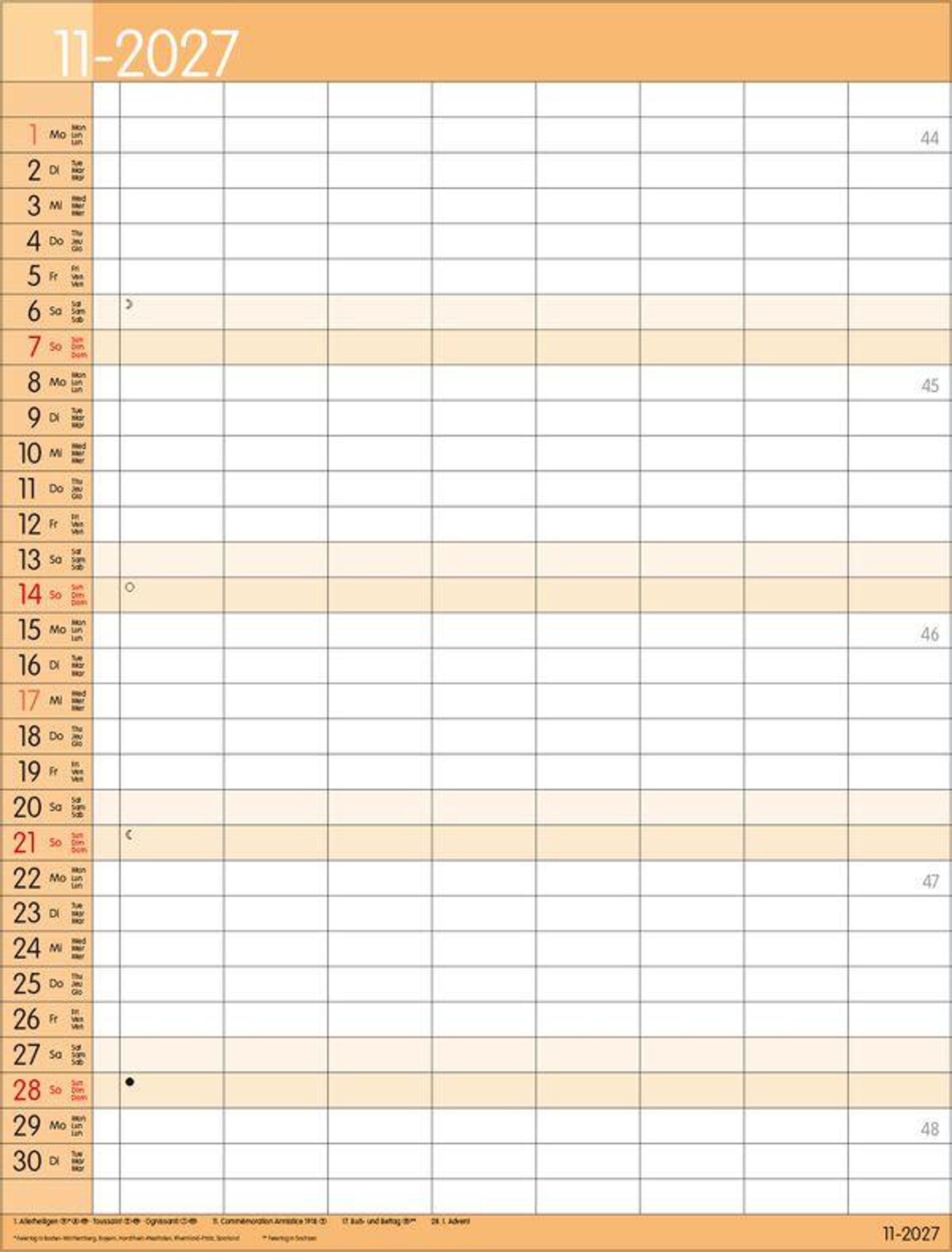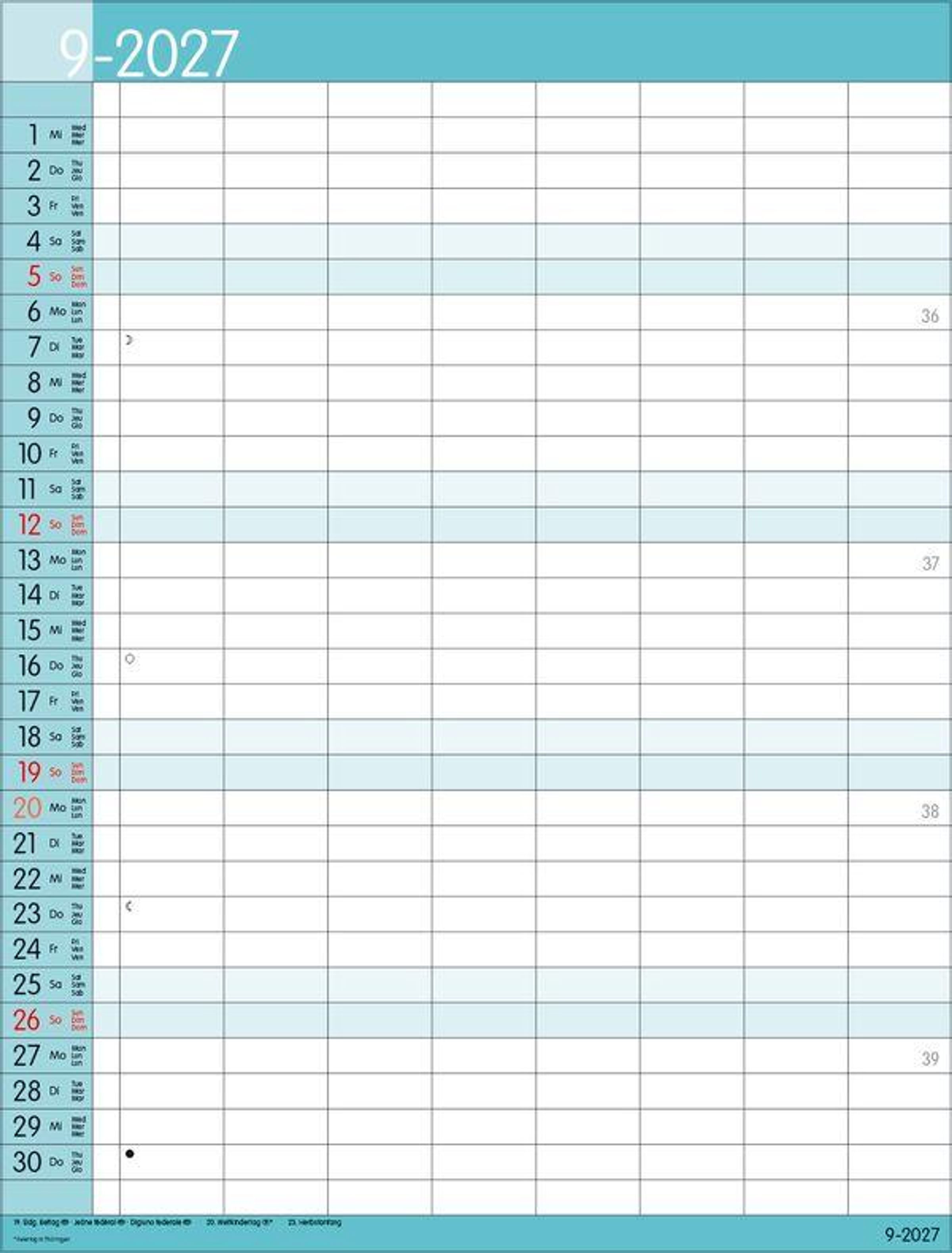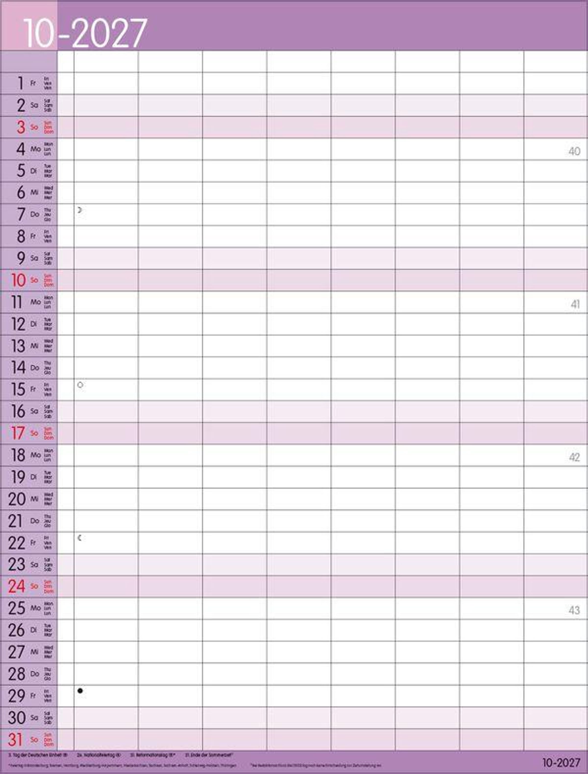 - Familienplaner mit 8 breiten Spalten. Hochwertiger Familienkalender mit Ferienterminen, extra Spalte, Vorschau bis März 2027 und nützlichen Zusatzinformationen.