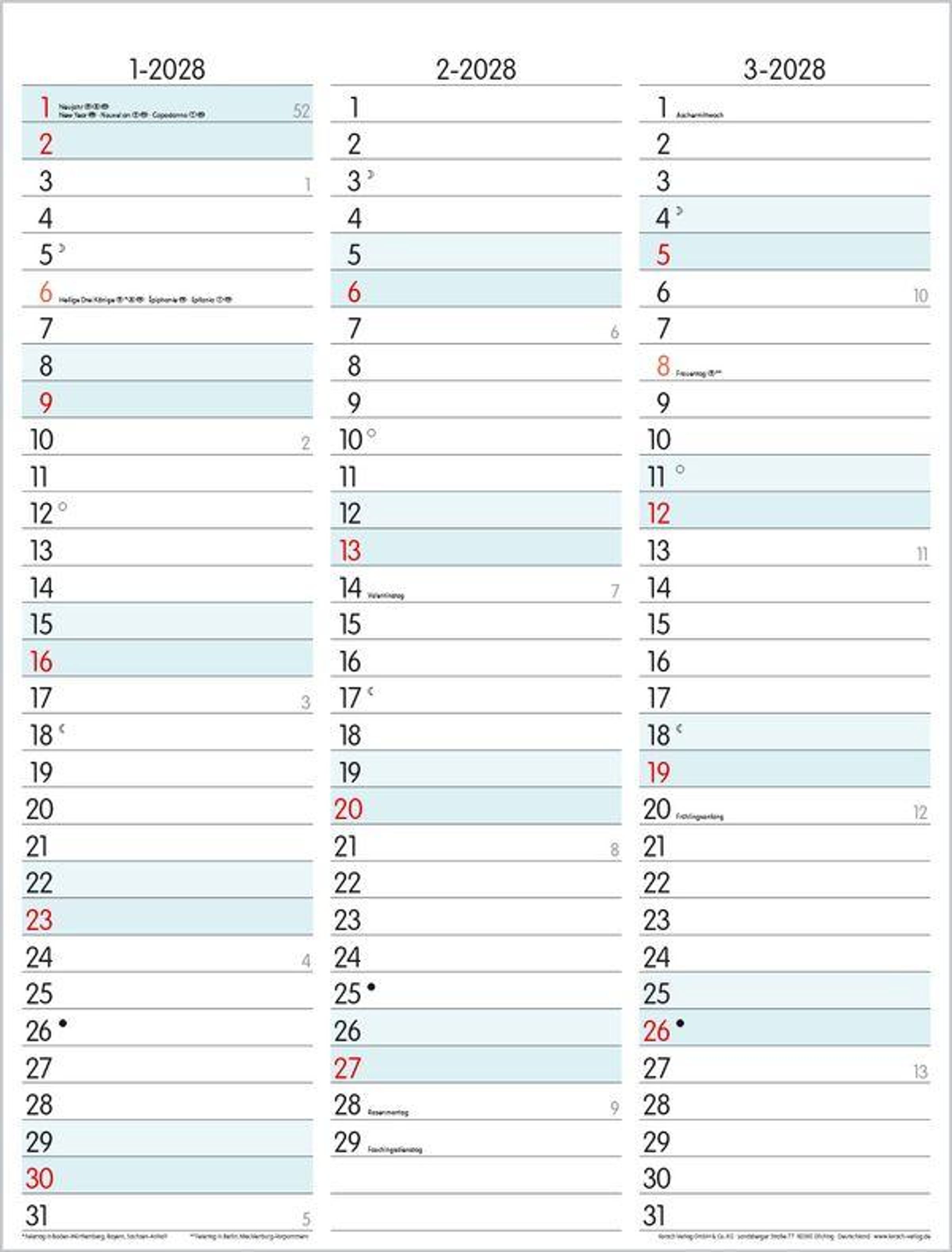 Weitere Informationen wie Mondphasen , Ferientermine und Feiertage (auch regionale) sowie deutlich lesbare Kalenderwochen runden den Kalender ab und sorgen für einen vollständigen Überblick Ihres Jahres.