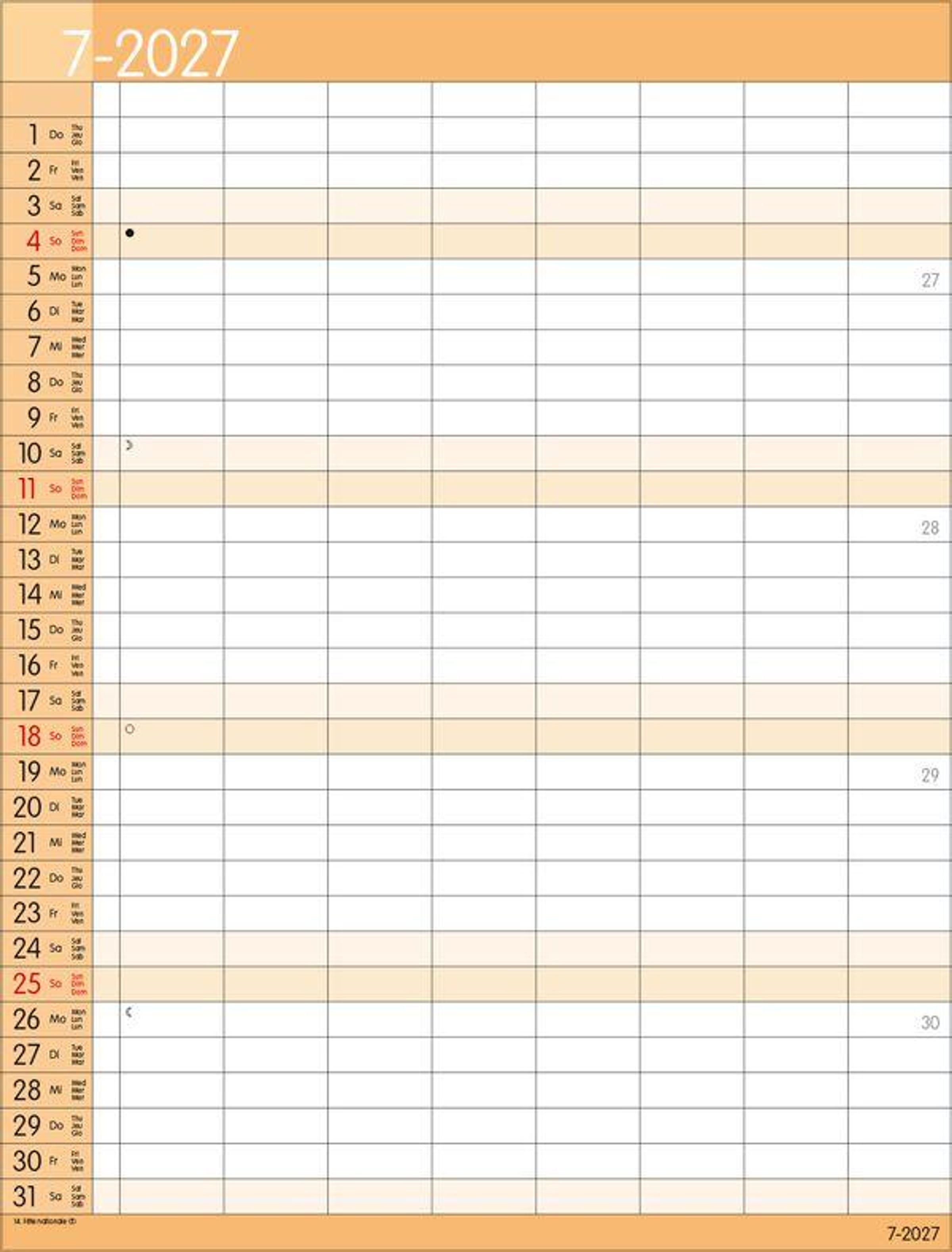 - Terminkalender mit viel Platz für Eintragungen, ohne störende Bilder in den Spalten