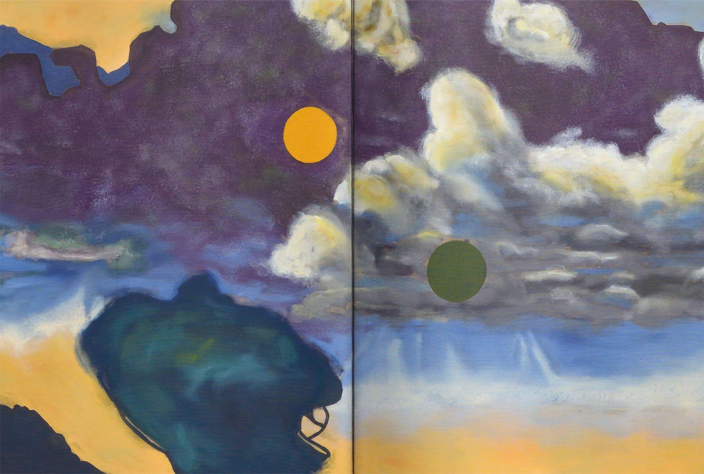 ' La peinture de paysage est comme le jazz libre ', affirme Yann Stéphane Bisso (*1998). Il combine différents éléments dans une improvisation libre, la lumière et l'eau étant des composants essentiels. L'eau - sous forme de vapeur, de liquide ou de glace, et surtout sous celle de nuages - lui sert d'image de la mutabilité, de l'identité et de sa fluidité. Dans ses œuvres, l'artiste réfléchit sur le patrimoine culturel, sa circulation, sa récurrence et sa réinterprétation. Ses origines camerounaises constituent le socle de cette réflexion, tout comme son enfance en France et ses études en Suisse. La vie, les souvenirs et les héritages étant fondés sur le changement, ils offrent une grande diversité de perspectives.