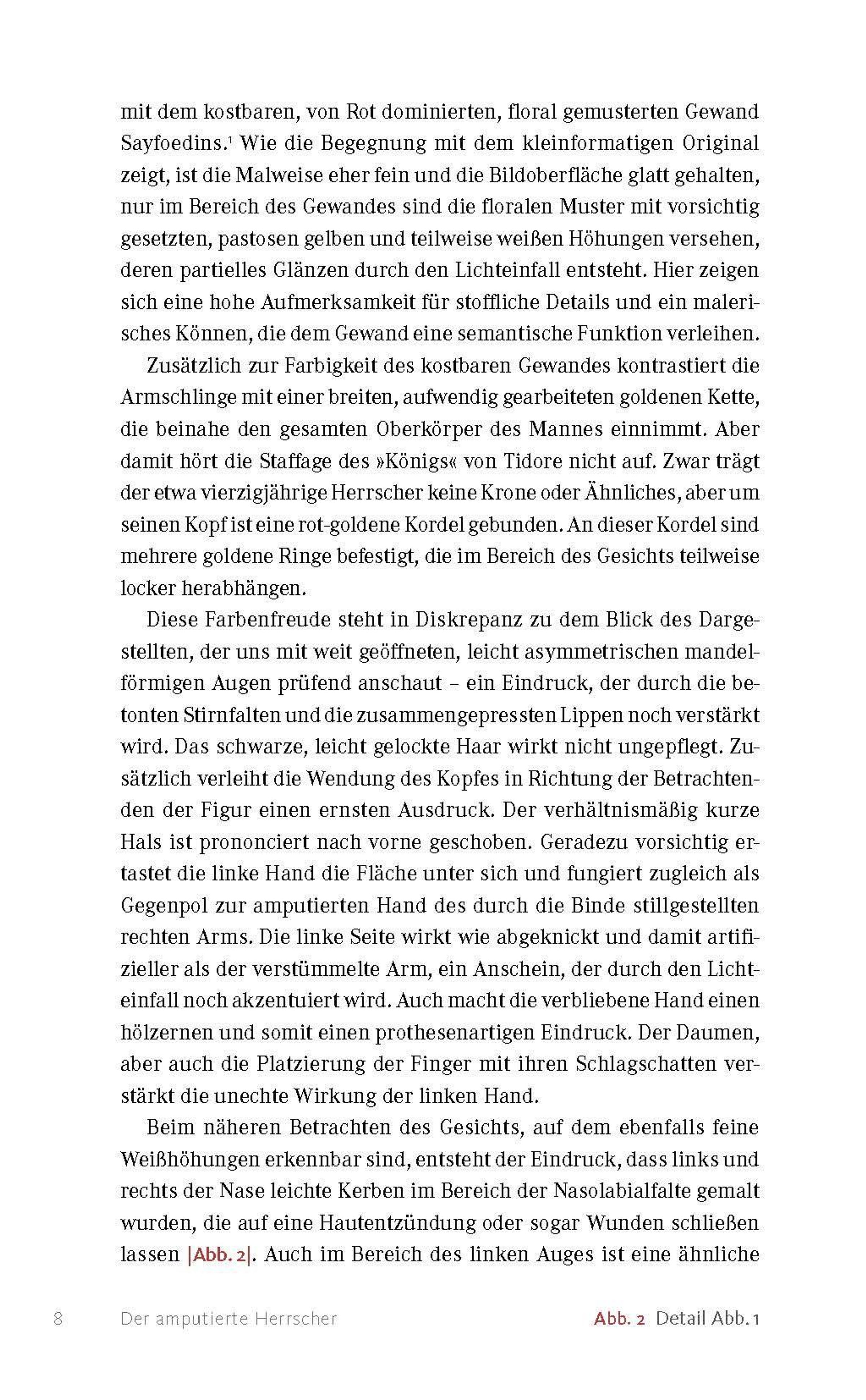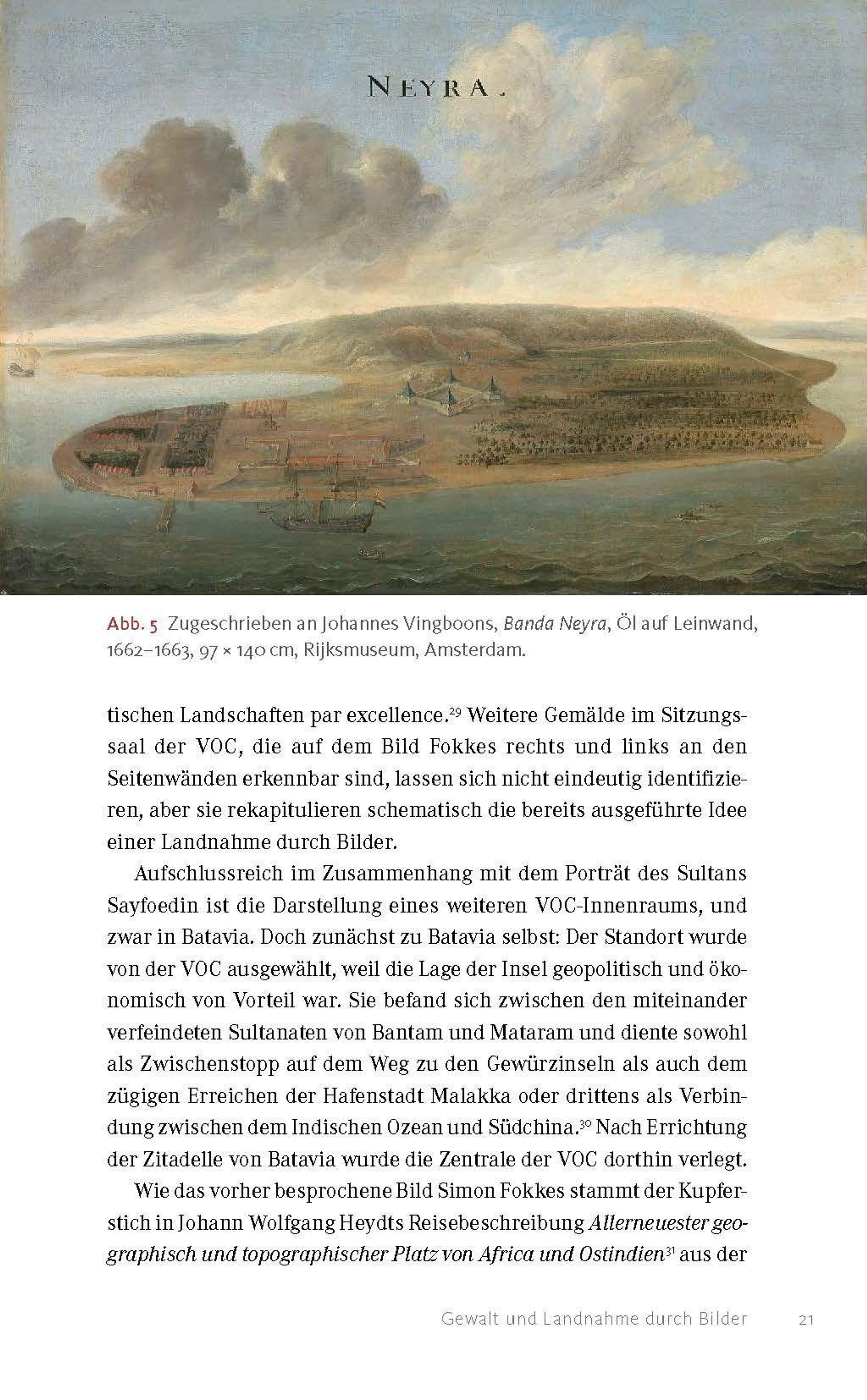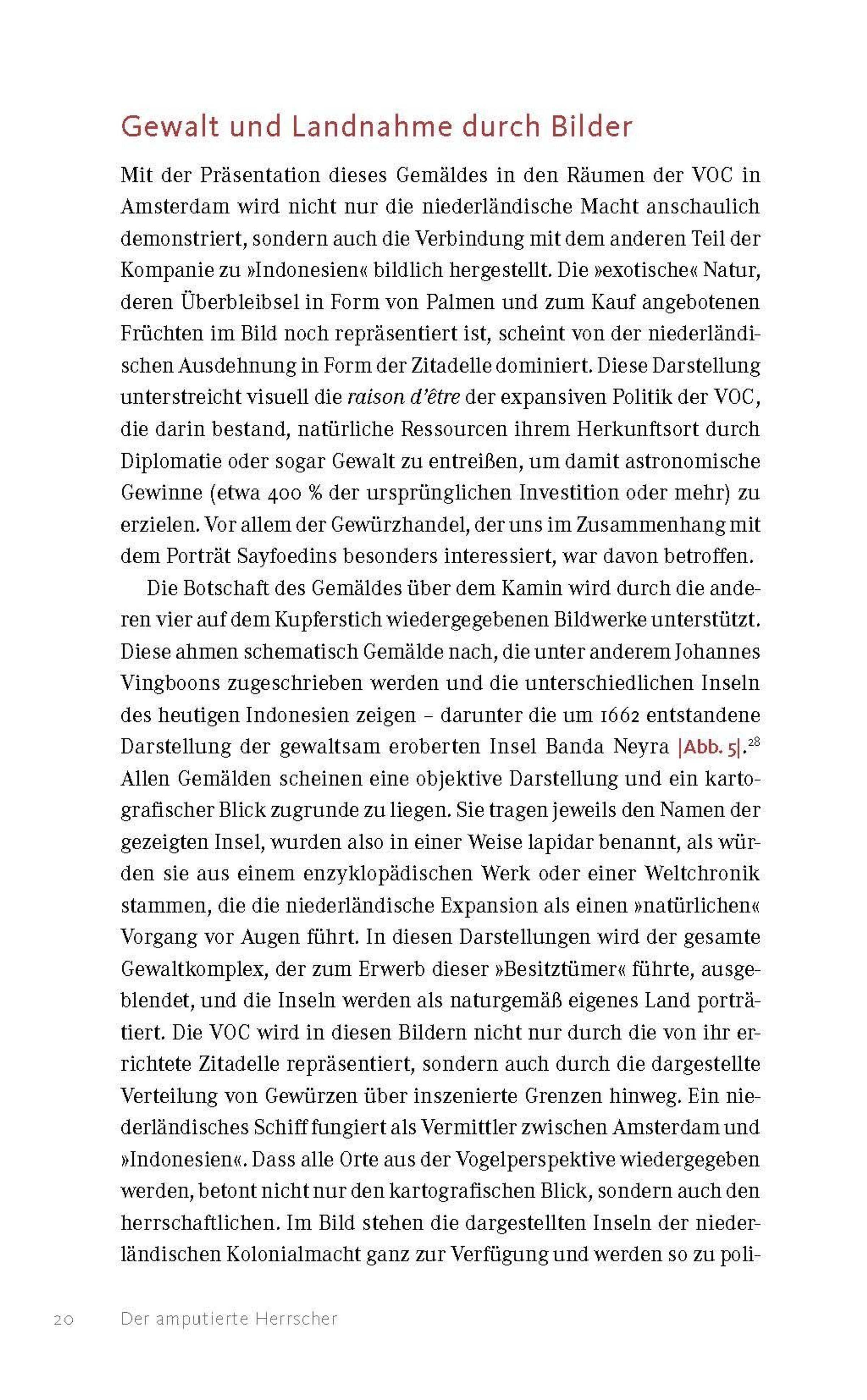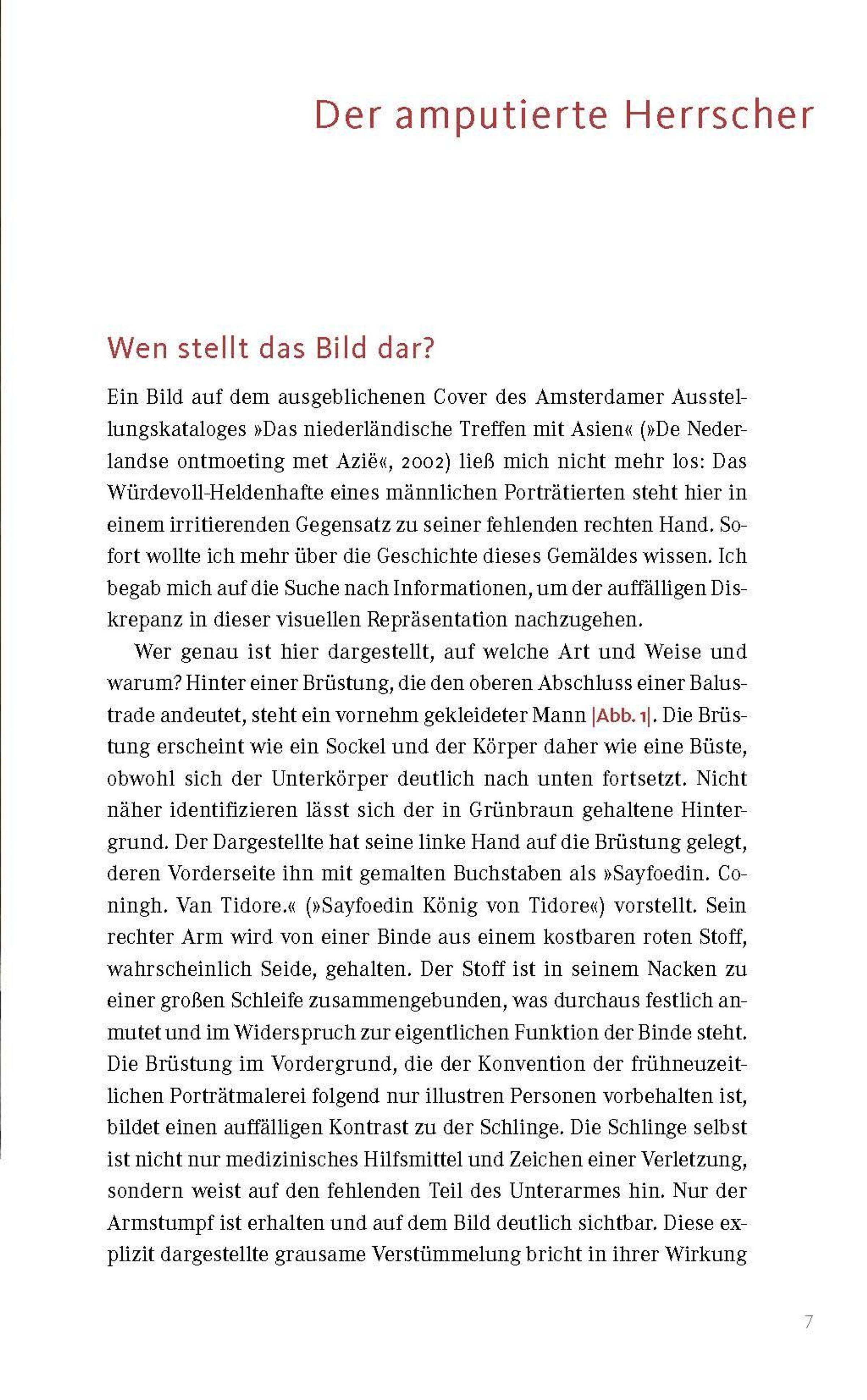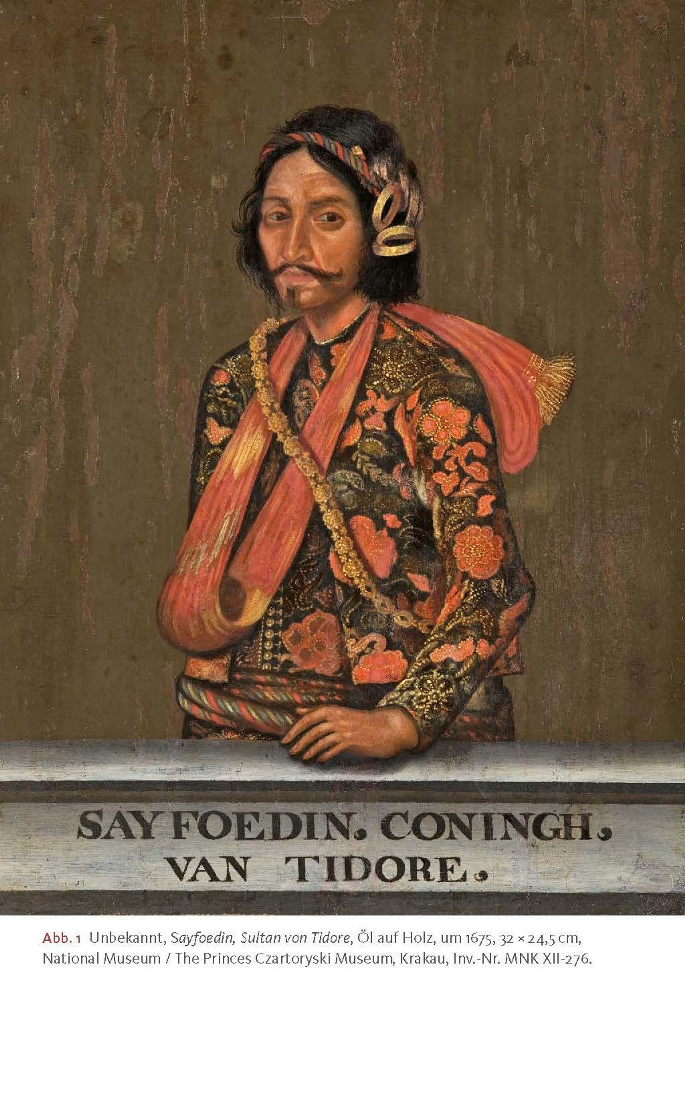 Warum malte ein unbekannter niederländischer Künstler im 17. Jahrhundert das Porträt eines molukkischen Herrschers mit amputiertem Arm? Yannis Hadjinicolaou geht der spannenden Geschichte der ungewöhnlichen Darstellung des Sultans Sayfoedin nach, der zwischen 1657 und 1687 Herrscher von Tidore, einer der Molukken-Inseln im Nordosten des heutigen Indonesiens, war. Er fragt nach den Gründen für die Visualisierung der Amputation Sayfoedins, deutet die Kleidung des Herrschers und rekonstruiert die Provenienz des Gemäldes, das sich heute im Czartoryski-Museum in Krakau befindet. Dabei zeigt er, welche Bedeutung die Partnerschaft zwischen Sayfoedin und der Niederländischen Ostindien-Kompanie sowie der Nelkenhandel hatten und inwiefern das Porträt die Beziehung zwischen kolonialer Macht und lokaler Herrschaft widerspiegelt.