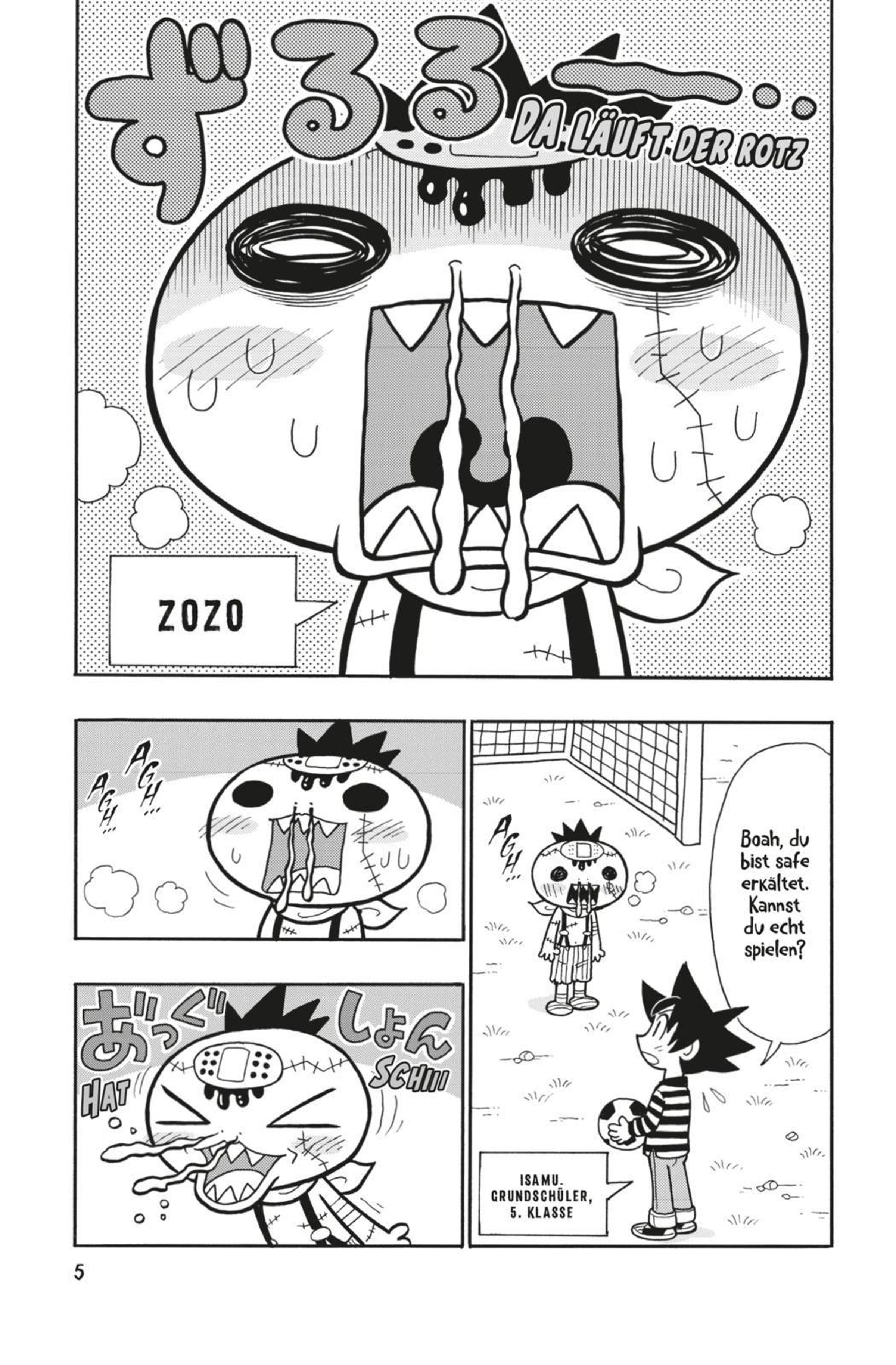 Als der Fünftklässler Isamu von einem kleinen Zombie verfolgt wird, ist die Panik groß. Zumindest so lange bis er merkt, dass Zozo gar nicht böse ist. Im Gegenteil, denn der ulkige Zombie wäre am liebsten ein ganz normaler Junge! Er ist nämlich ganz schön einsam und wünscht sich eigentlich nur jemanden zum Spielen. Zum Glück kennt er jetzt Isamu. Und der ist ziemlich beeindruckt von Zozos Fähigkeiten. Wer hat schon einen Freund, der seinen Magen als Kopfkissen aufblasen und unnützes Wissen aus seinem Hirn wegfurzen kann?! Schon bald stellt Zozo Isamus Leben buchstäblich auf den Kopf.