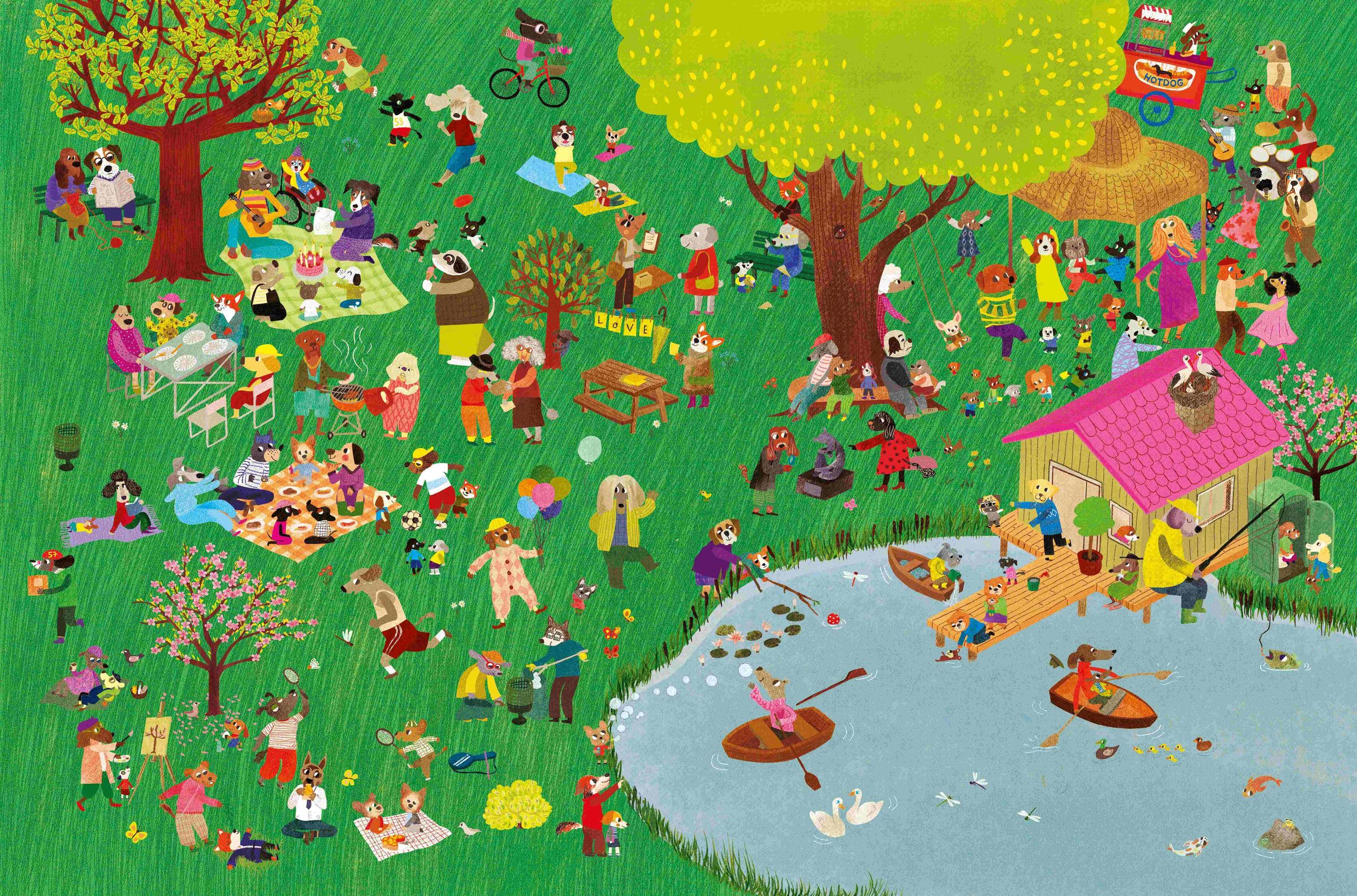 Die Stadt der Hunde hält hinter jeder Ecke Überraschungen bereit: Vom Terrier, der anderen gerne etwas beibringt, bis zum schachspielenden Schnauzer erinnern uns all diese Hundecharaktere immer wieder an Menschen, die wir kennen. Liebe- und humorvoll zeichnet Yayo Kawamura in ihren Figuren eine Vielfalt menschlicher Charaktereigenschaften nach und lässt sie unzählige kleine Geschichten erleben. Kinder können sich nicht sattsehen an dem Gewimmel auf dem Markt, dem Spielplatz oder beim Eislaufen in der kleinen Stadt und entdecken immer wieder etwas Neues. Und selbst die Erwachsenen amüsieren sich herrlich über die modebewusste Afghanische Windhunddame, die charmante Dackelfamilie, die kulturbeflissene Dalmatinerin oder den konservativen Cockerspaniel... Jeder Charakter hat hier eine ganz eigene Persönlichkeit und gemeinsam schaffen sie **eine Stadt, die so lebendig und vielfältig ist wie das echte Leben.**Mit Humor, Herzlichkeit und Witz illustriert, bieten diese farbenfrohen Bilder ein inspirierendes Porträt des urbanen Lebens. Ein kleines "Who is Who" auf der Rückseite stellt etliche Charaktere mit Namen vor und lädt dazu ein, ihnen durch die Stadt zu folgen. Dieses Buch ist ein unentbehrlicher Begleiter für Hundeliebhaber*innen und perfekt für Kinder, die lernen, die Welt um sich herum zu beobachten.