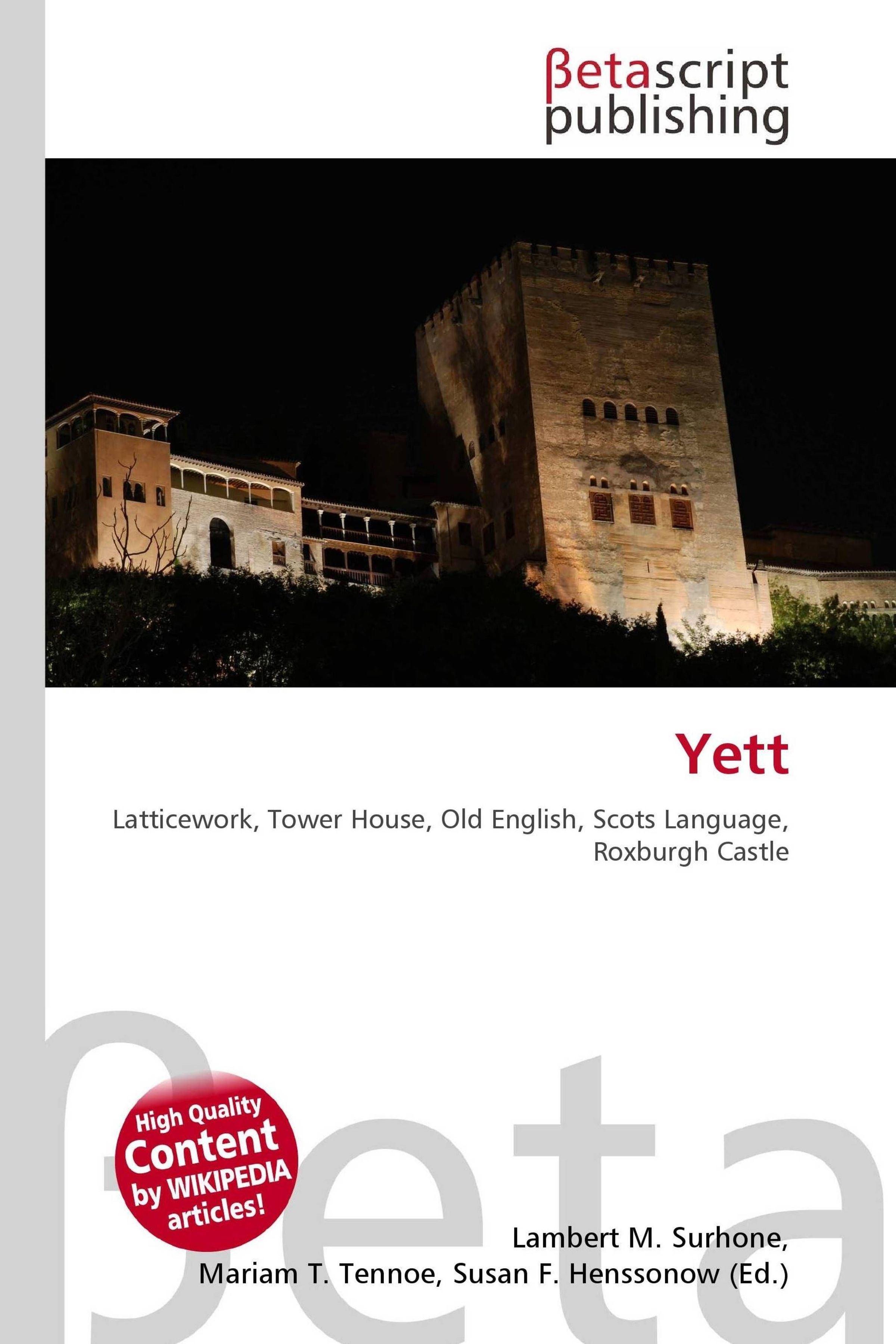 Please note that the content of this book primarily consists of articles available from Wikipedia or other free sources online. A yett (from the Old English and Scots language word for "gate") is a gate or grille of latticed wrought iron bars used for defensive purposes in castles and tower houses. Unlike a portcullis, which is raised and lowered vertically using mechanical means, yetts are hinged in the manner of a traditional gate or door, and secured by bolts attached to the yett, or by long bars drawn out from the wall or gateway. Yetts are predominantly found in Scotland - where most towers, particularly the later ones, were equipped with them rather than portcullises - but some iron gates are found in the Border counties of England. While few references to yetts exist outside Scotland, an English report of 1416 on Roxburgh Castle (then in English hands) contained recommendations for the insertion of iron gates. Yetts are not restricted to any one region or district within Scotland, but are widespread throughout.