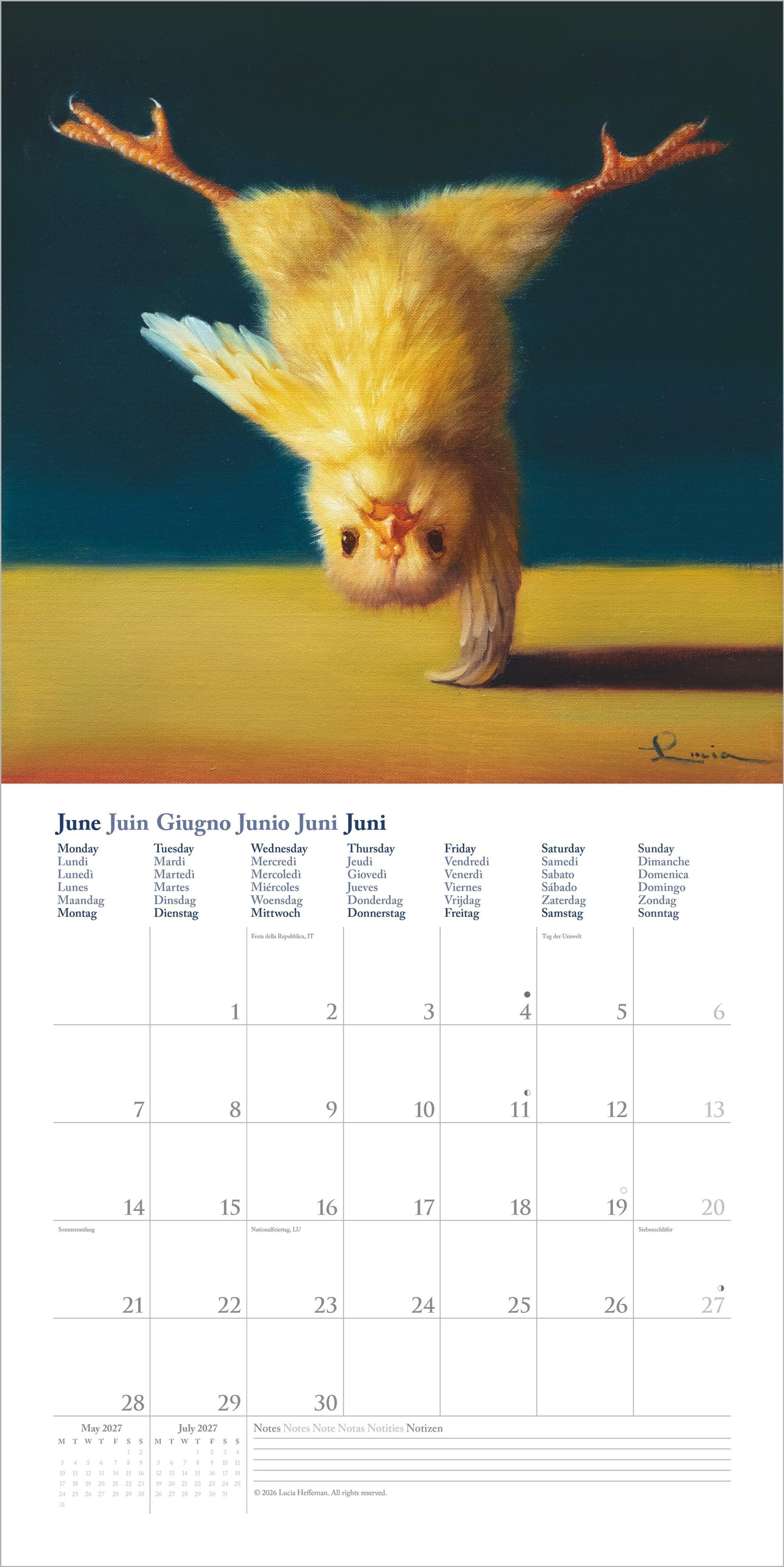 Der DUMONT Broschürenkalender 2027 „Yoga Chicks" bringt gute Laune in den Alltag: Die amerikanische Künstlerin Lucia Heffernan hat ihre flauschigen Küken ins Yoga-Studio geschickt -- mit liebevollen und humorvollen Illustrationen, die jede Pose zum Schmunzeln machen.