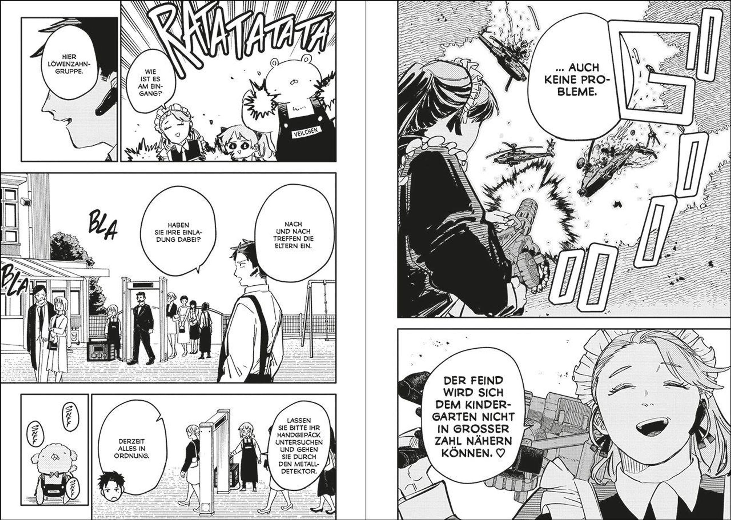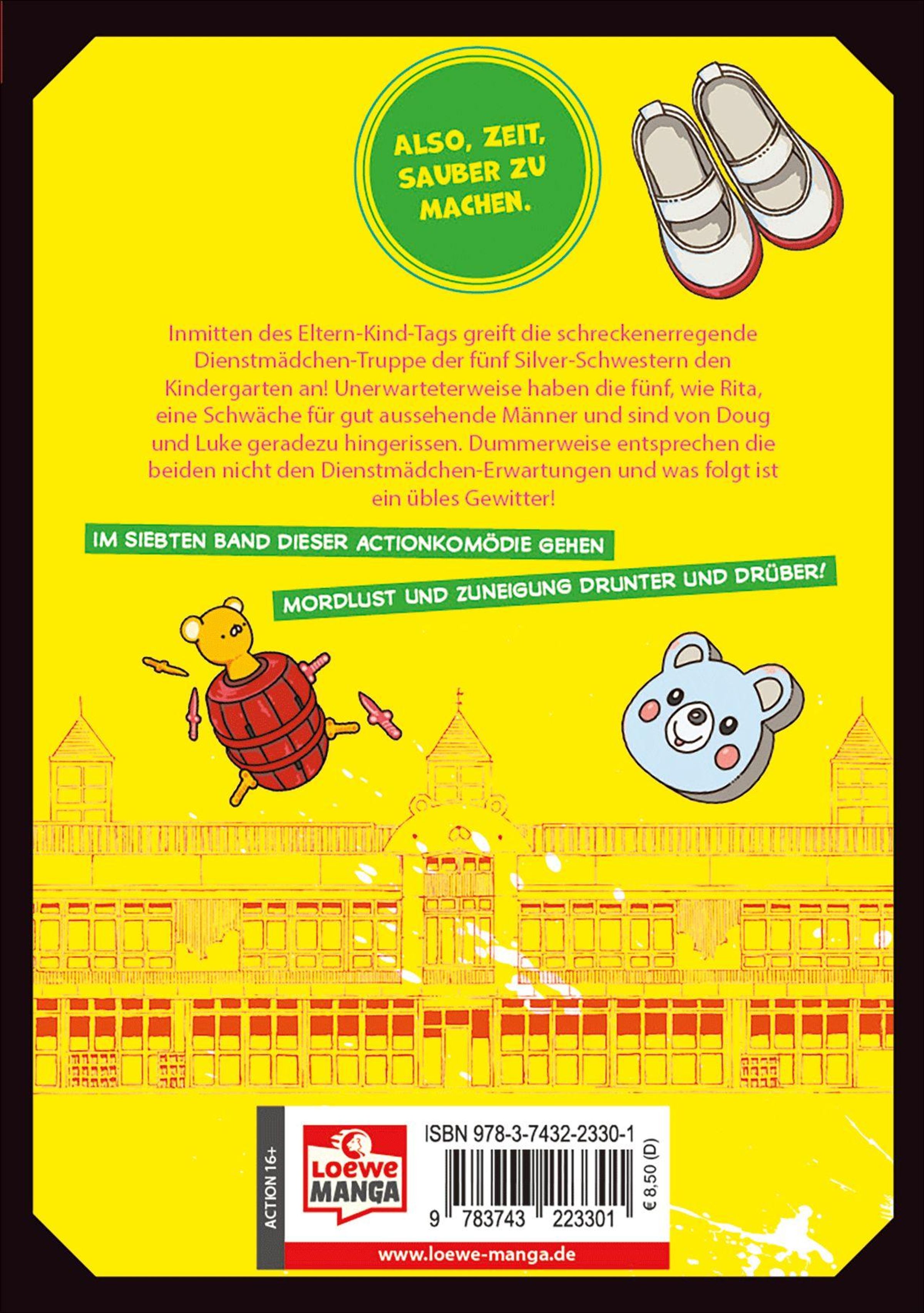 Ex-Profikillerin Rita arbeitet jetzt in der KitaInmitten des Eltern-Kind-Tags greift die schreckenerregende Dienstmädchen-Truppe der fünf Silver-Schwestern den Kindergarten an! Unerwarteterweise haben die fünf, wie Rita, eine Schwäche für gut aussehende Männer und sind von Doug und Luke geradezu hingerissen. Dummerweise entsprechen die beiden nicht den Dienstmädchen-Erwartungen und was folgt ist ein übles Gewitter! Ein explosiver Manga voller Humor, in dem eine Ex-Killerin zur unbezwingbaren Kindergärtnerin wird. Erlebe Action und Spaß in der Kita Black, wo die sicherste Kinderbetreuung auf geheime Missionen trifft. Perfekt für Fans ab 16, die Spannung, Action und Comedy lieben.