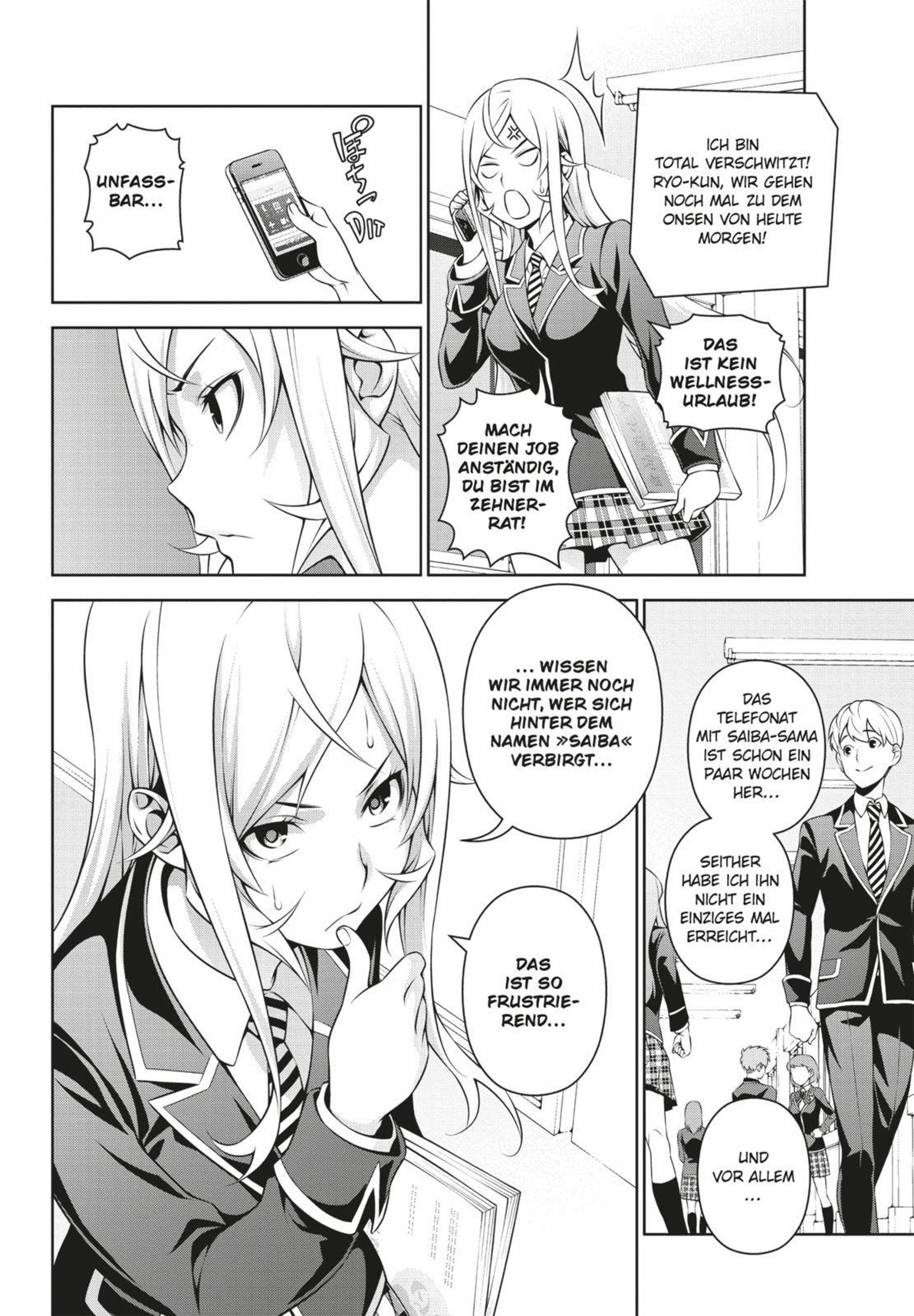 Die Aufklärung der Kochduell-Vorfälle läuft auf Hochtouren. Wer ist der ominöse >>Saiba<<, der die >>Cuisiniers Noirs<< angestiftet hat? Während Erina nach Informationen sucht, wird Soma von Aushilfsdozent Suzuki zum Kochduell herausgefordert...