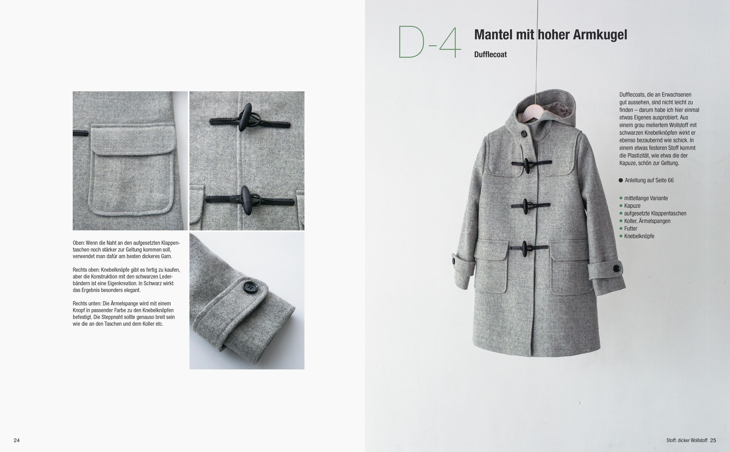 Den Kombinationsmöglichkeiten von Mantelschnitt, Stoff und Farbe sind mit diesem Nähbuch keine Grenzen gesetzt. Neben den Schnittmustern für Jacken und Mäntel für jede Jahreszeit bietet das Buch zudem hilfreiche Infos zur Stoffkunde von Kaschmir, Wolle, Tweed und anderen Stoffen, sowie eine Größentabelle.