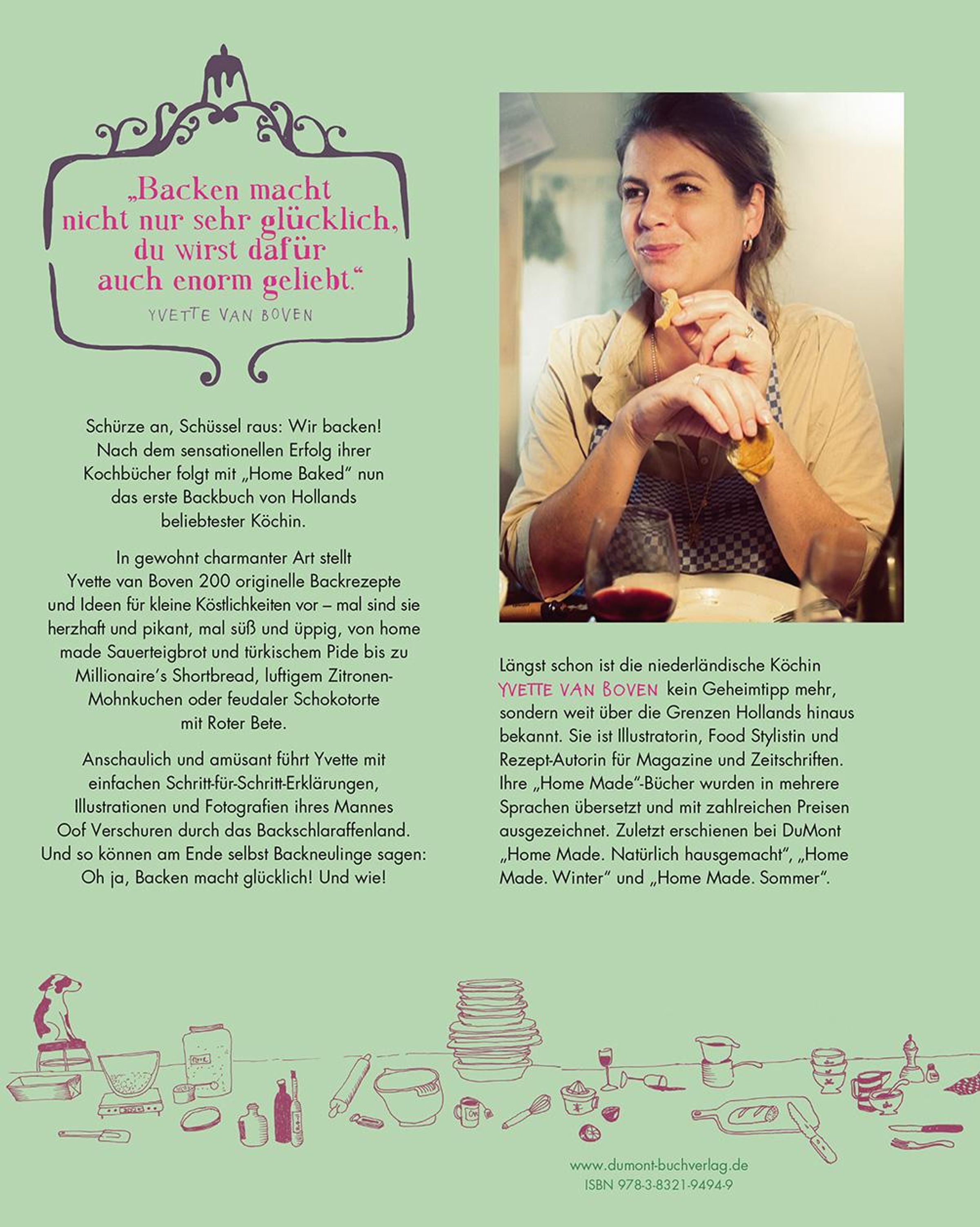 Alle Köstlichkeiten verbindet ihre Machart: schnell und einfach in der Zubereitung und wahnsinnig lecker. Nach >Home Made. Natürlich hausgemacht<, >Home Made. Winter< und >Home Made. Sommer< hat Yvette van Boven auch >Home Baked< gemeinsam mit ihrem Mann Oof Verschuren zusammengestellt - und weil Selbermachen die Devise in jeder Hinsicht ist, stammen alle Rezepte, Fotografien, Aquarellillustrationen und das Layout aus der Feder des sympathischen Gespanns.
