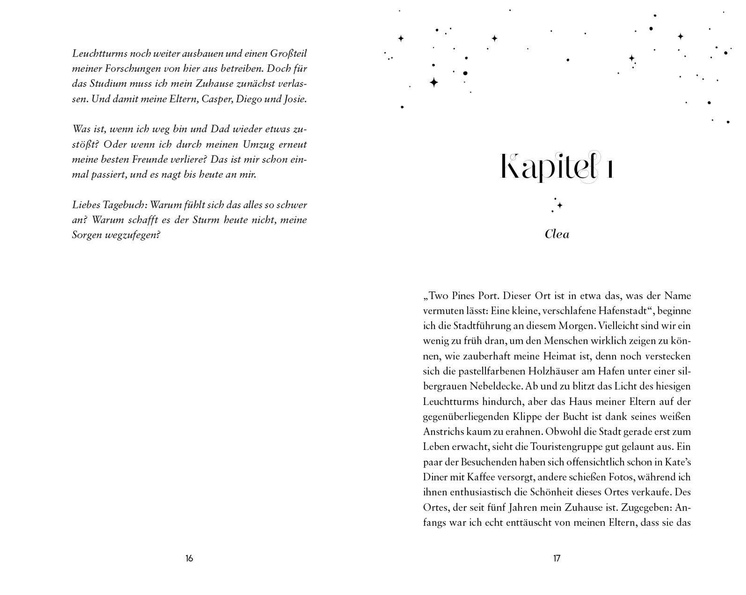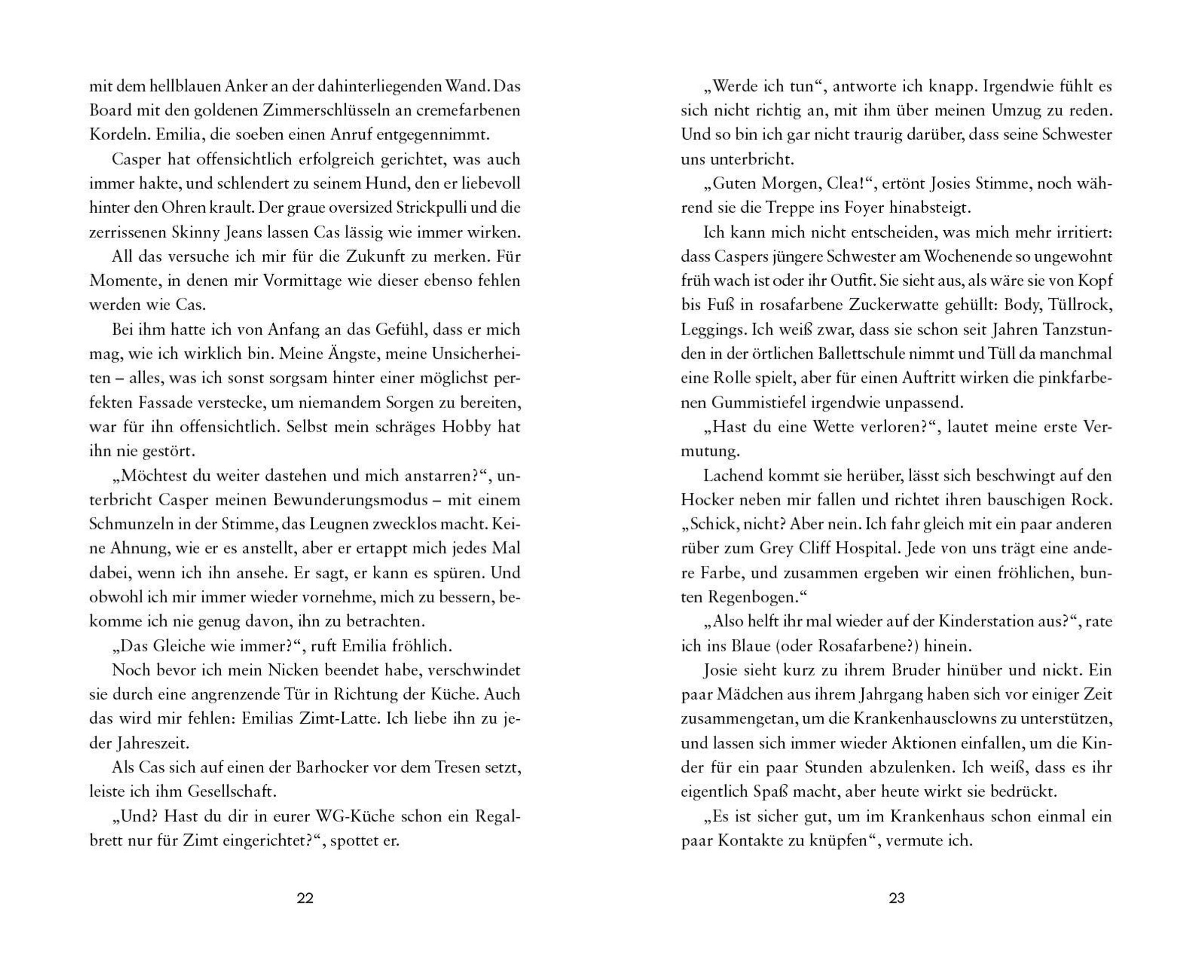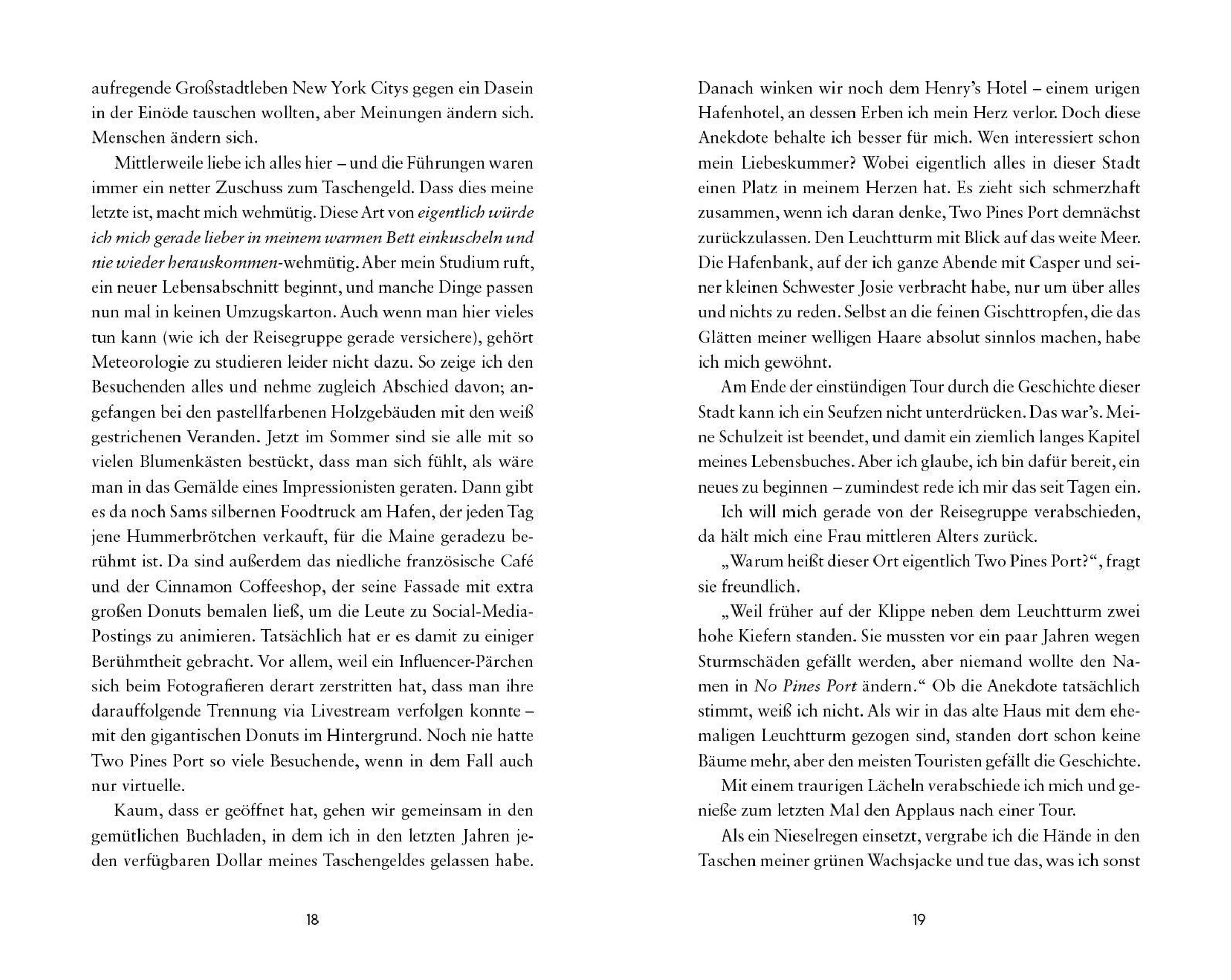 Casper und seine beste Freundin Clea sind seit Jahren unzertrennlich. Doch nach ihrem Schulabschluss steht ihnen der Abschied bevor: Clea möchte fürs Studium raus aus der Kleinstadt Two Pines Port an der US-Ostküste. Casper dagegen soll bleiben und das familieneigene Hotel übernehmen. So kann seine Mom ihn am besten unterstützen, denn Casper ist von Geburt an blind. Dabei träumt er eigentlich davon, mit einem eigenen Foodtruck seine Leidenschaft für gutes Essen zum Beruf zu machen.