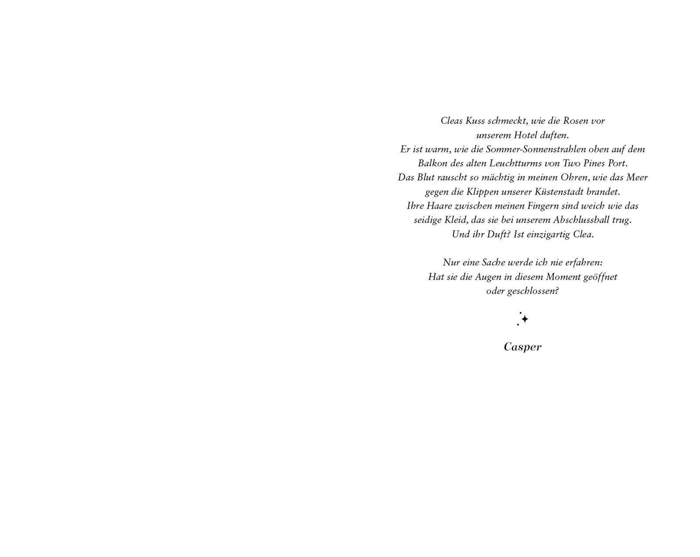 Bevor sich ihre Wege trennen, brechen sie zu einem gemeinsamen Roadtrip entlang der Küste Maines auf. Für Clea ist es die letzte Gelegenheit, Casper zu gestehen, dass ihre Gefühle längst über Freundschaft hinausgehen. Doch dieser verhält sich sonderbar abweisend. Wird er den Mut finden, seine Träume zu verwirklichen - und das festzuhalten, was ihm wirklich wichtig ist?