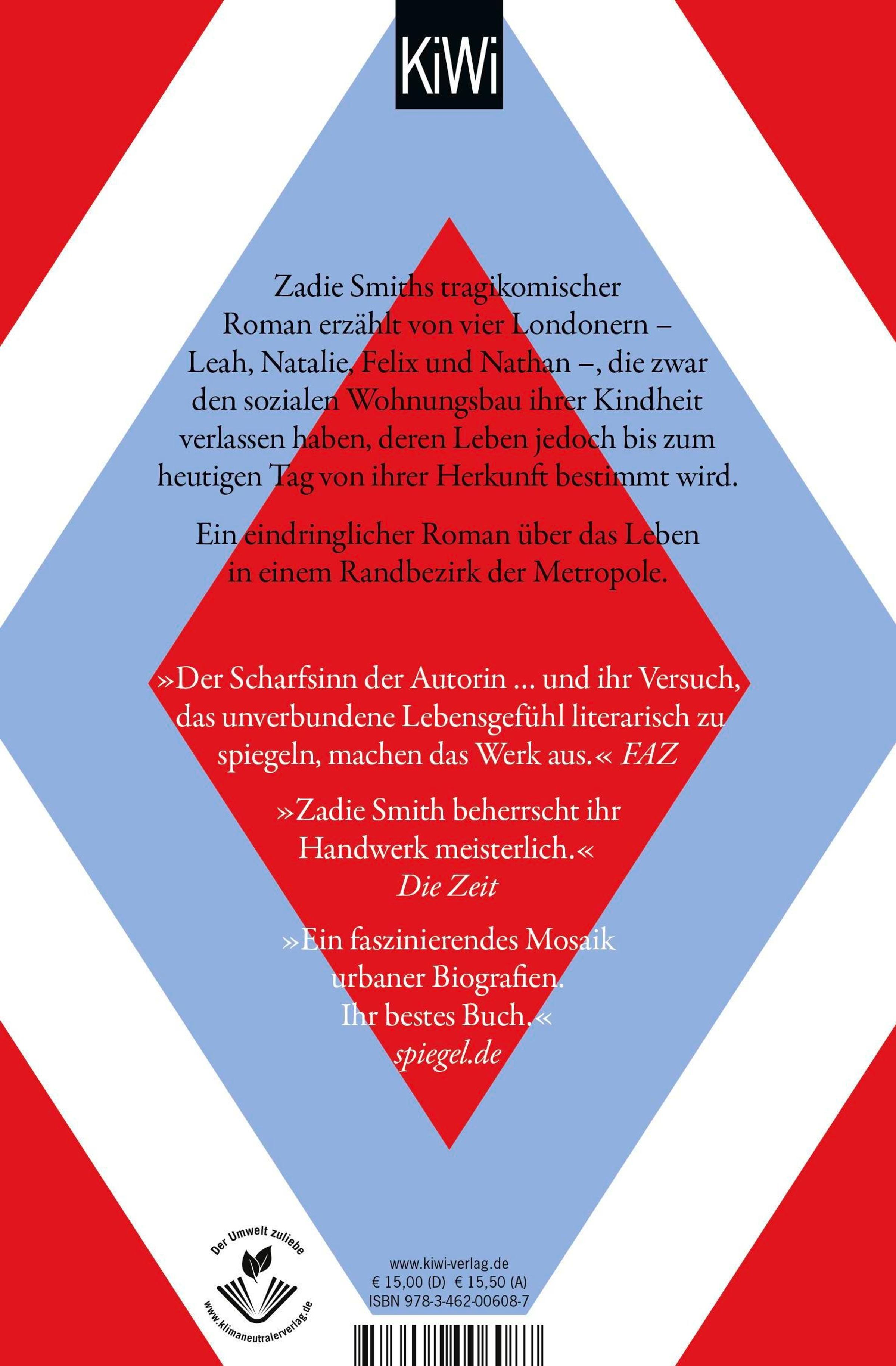 Zadie Smiths tragikomischer Roman erzählt von vier Londoner: innen - Leah, Natalie, Felix und Nathan -, die zwar den sozialen Wohnungsbau ihrer Kindheit verlassen haben, doch bis zum heutigen Tag im Londoner Nordwesten leben, dem eigentlichen Zentrum der Stadt.