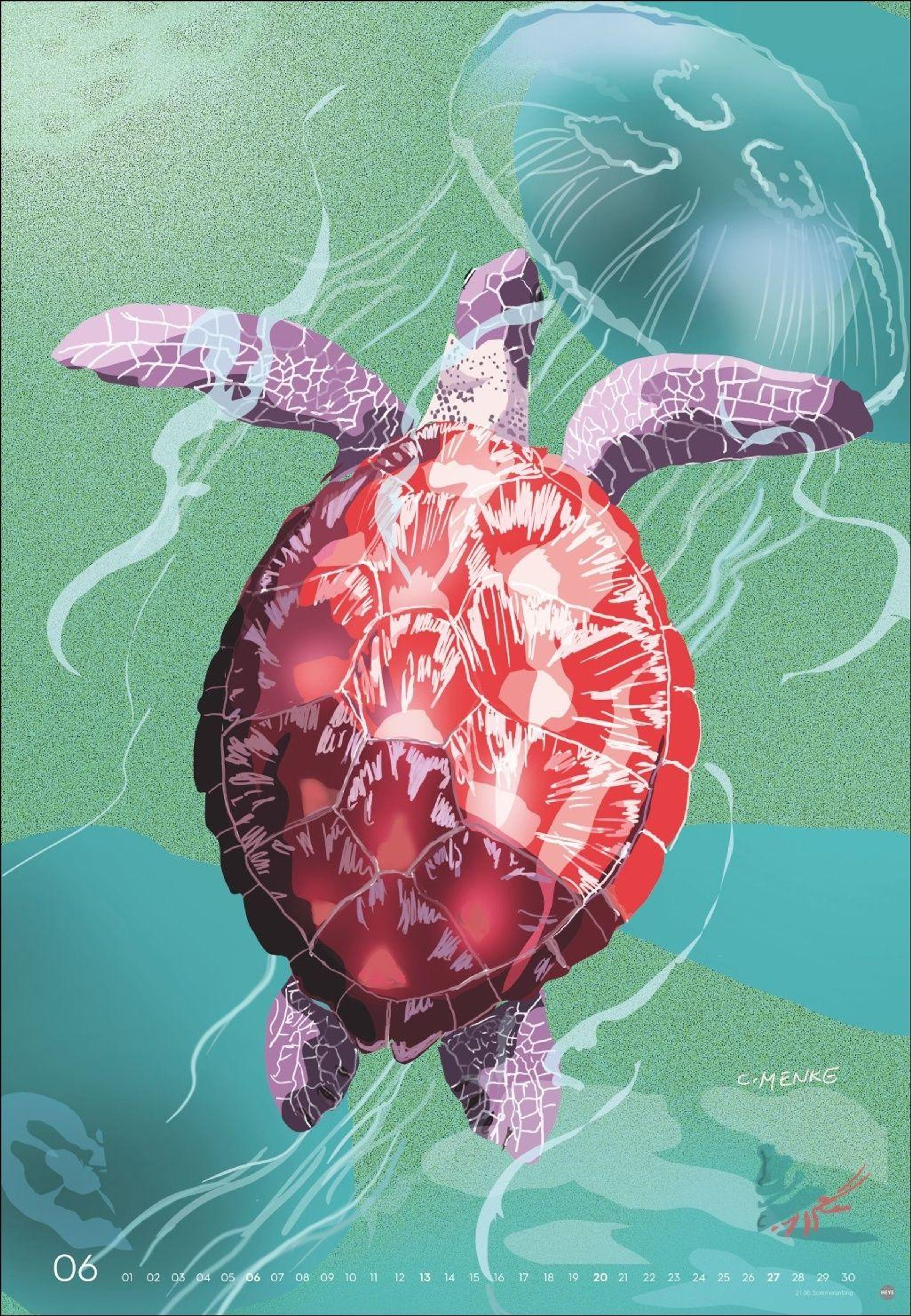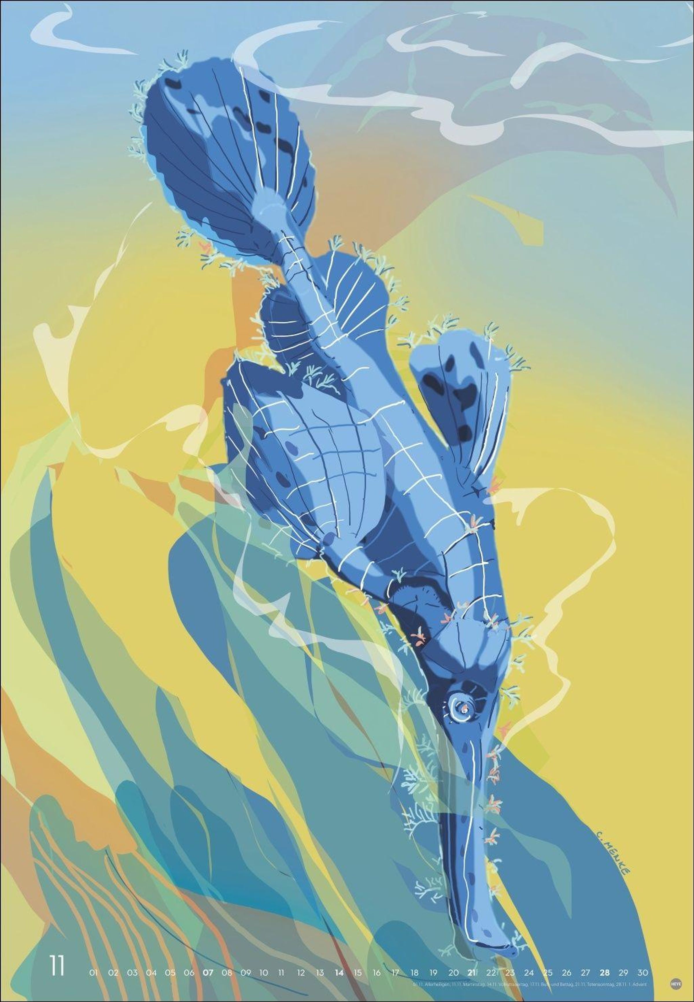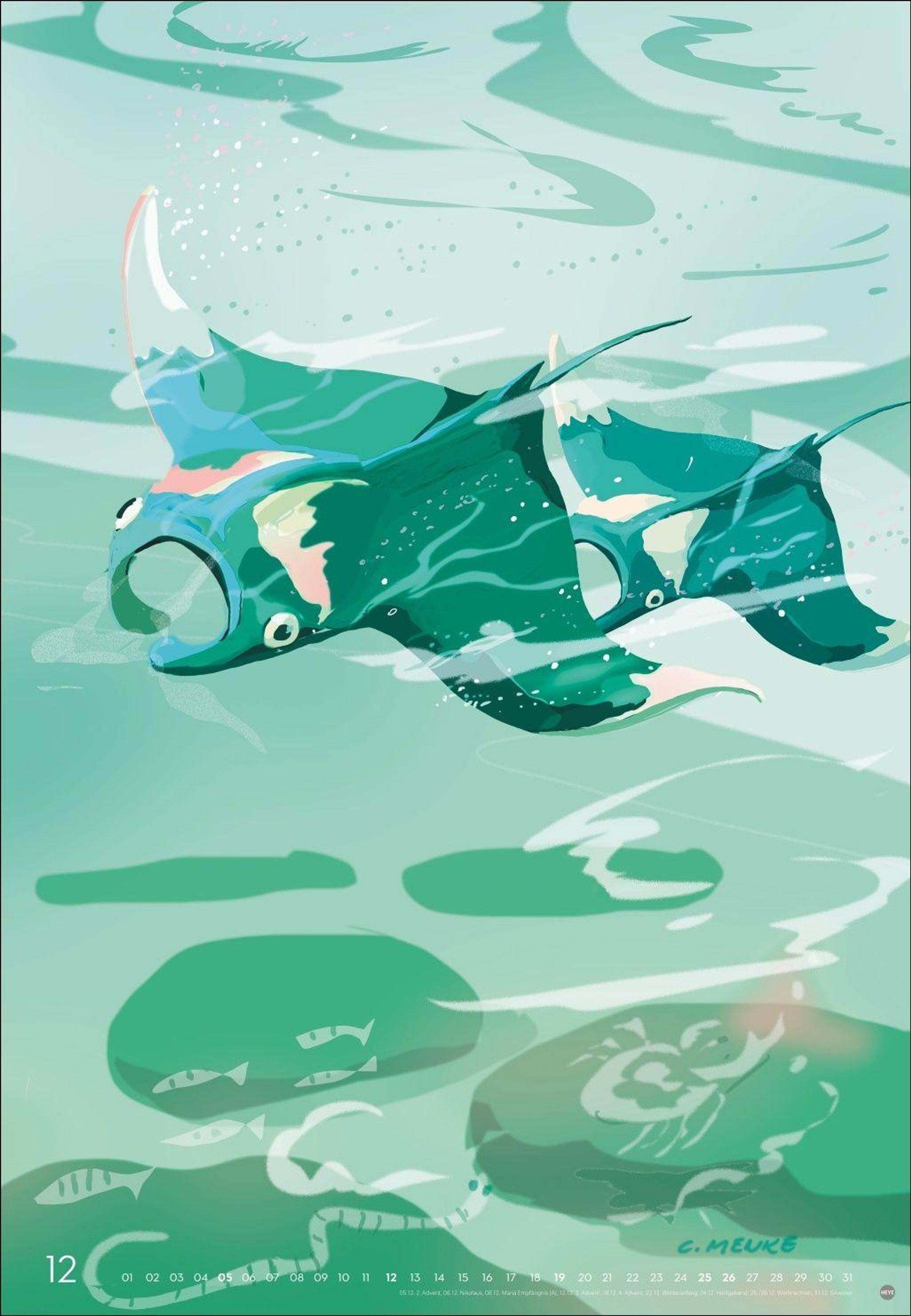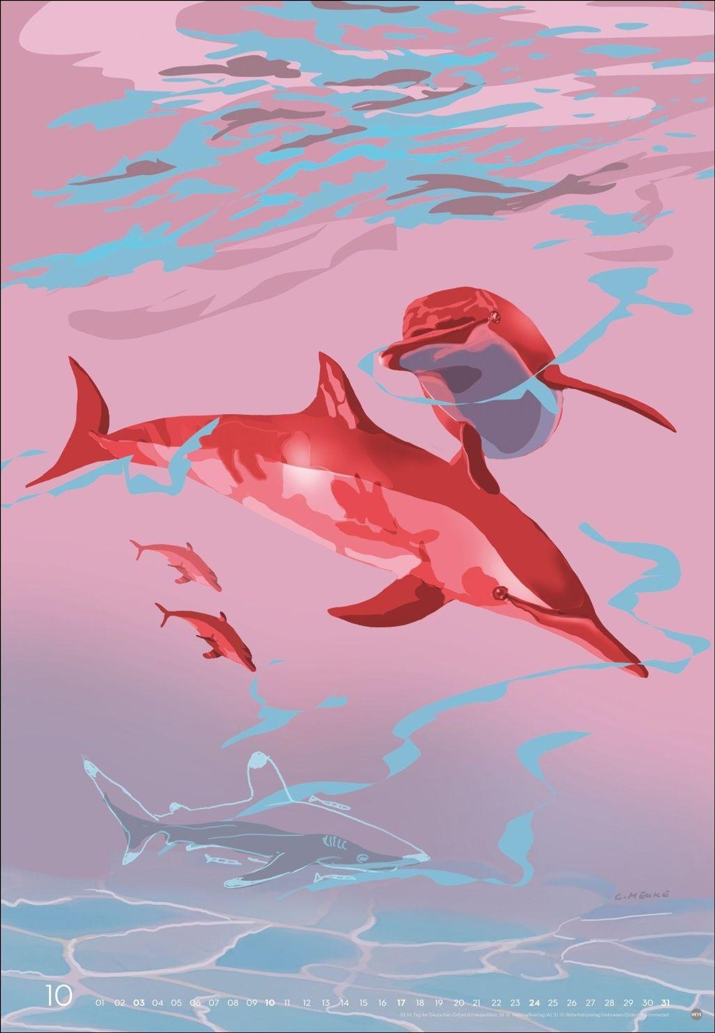 Originelle Deko für maritimes Flair: Großer Wandkalender mit poppigem Artwork der deutschen Künstlerin Chris Menke - nicht nur ein Geschenk für Tierfreunde