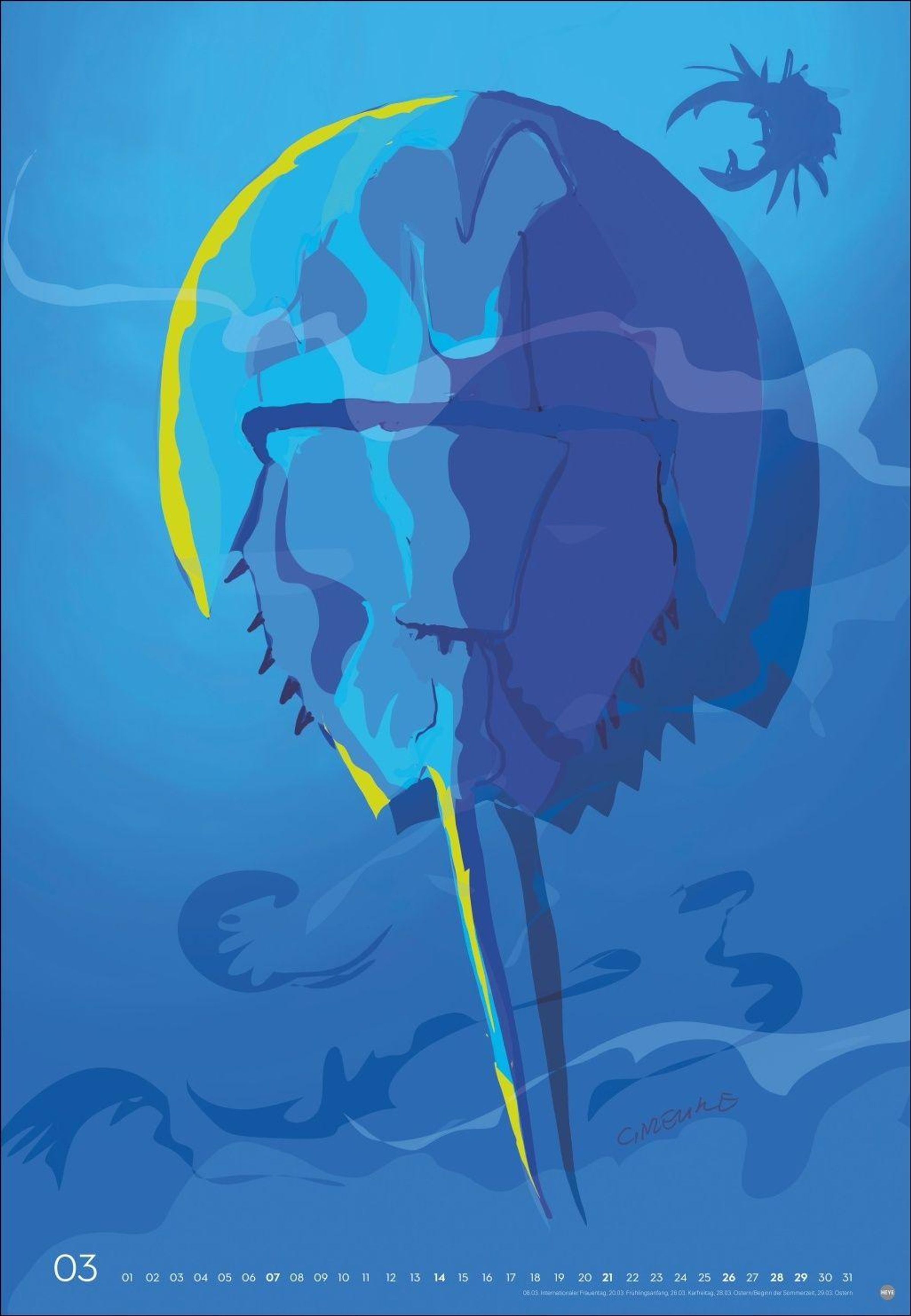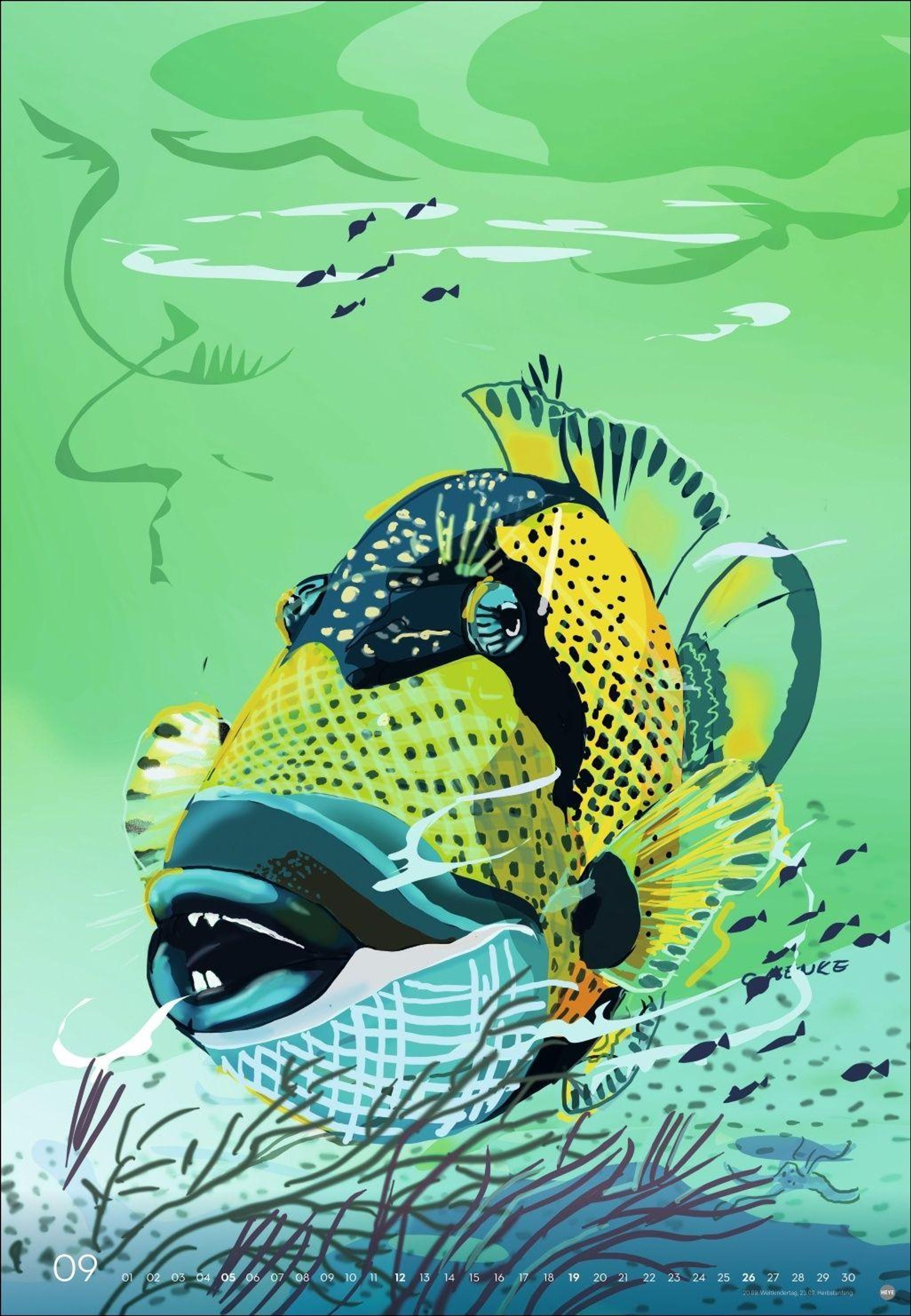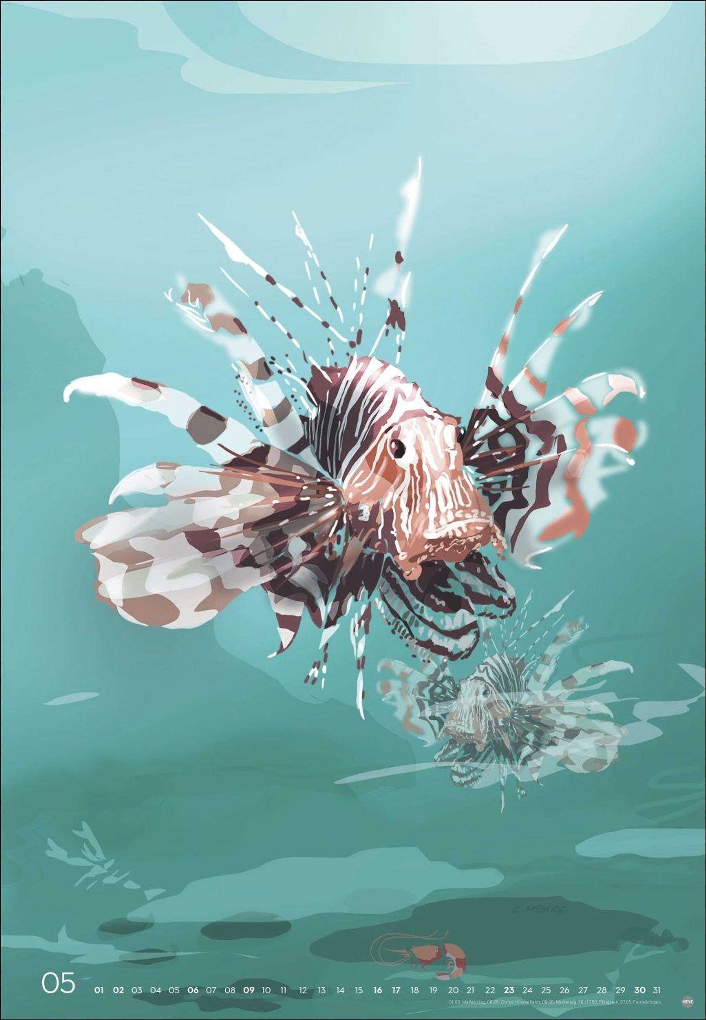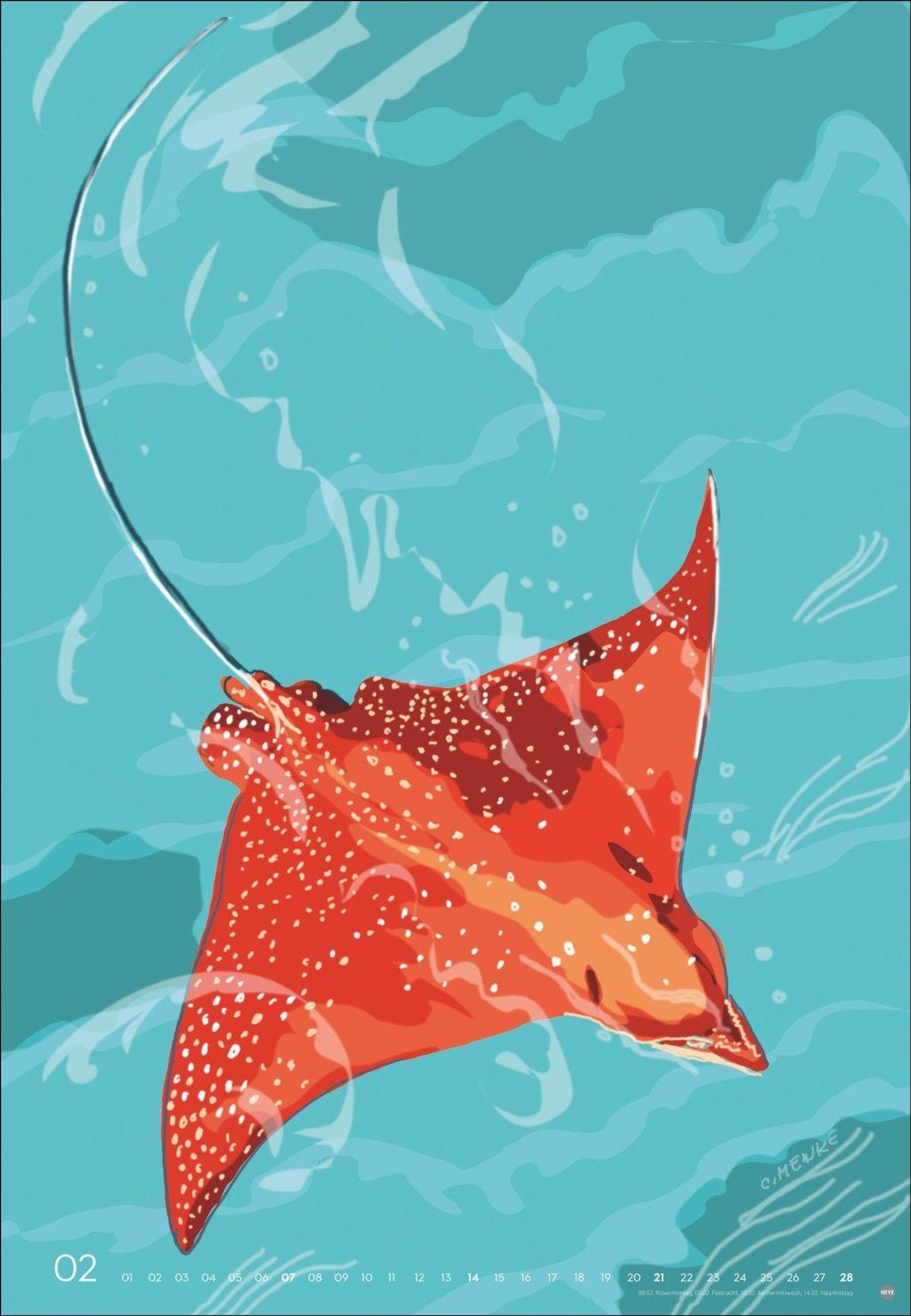 Originelle Deko für maritimes Flair: Großer Wandkalender mit poppigem Artwork der deutschen Künstlerin Chris Menke - nicht nur ein Geschenk für Tierfreunde