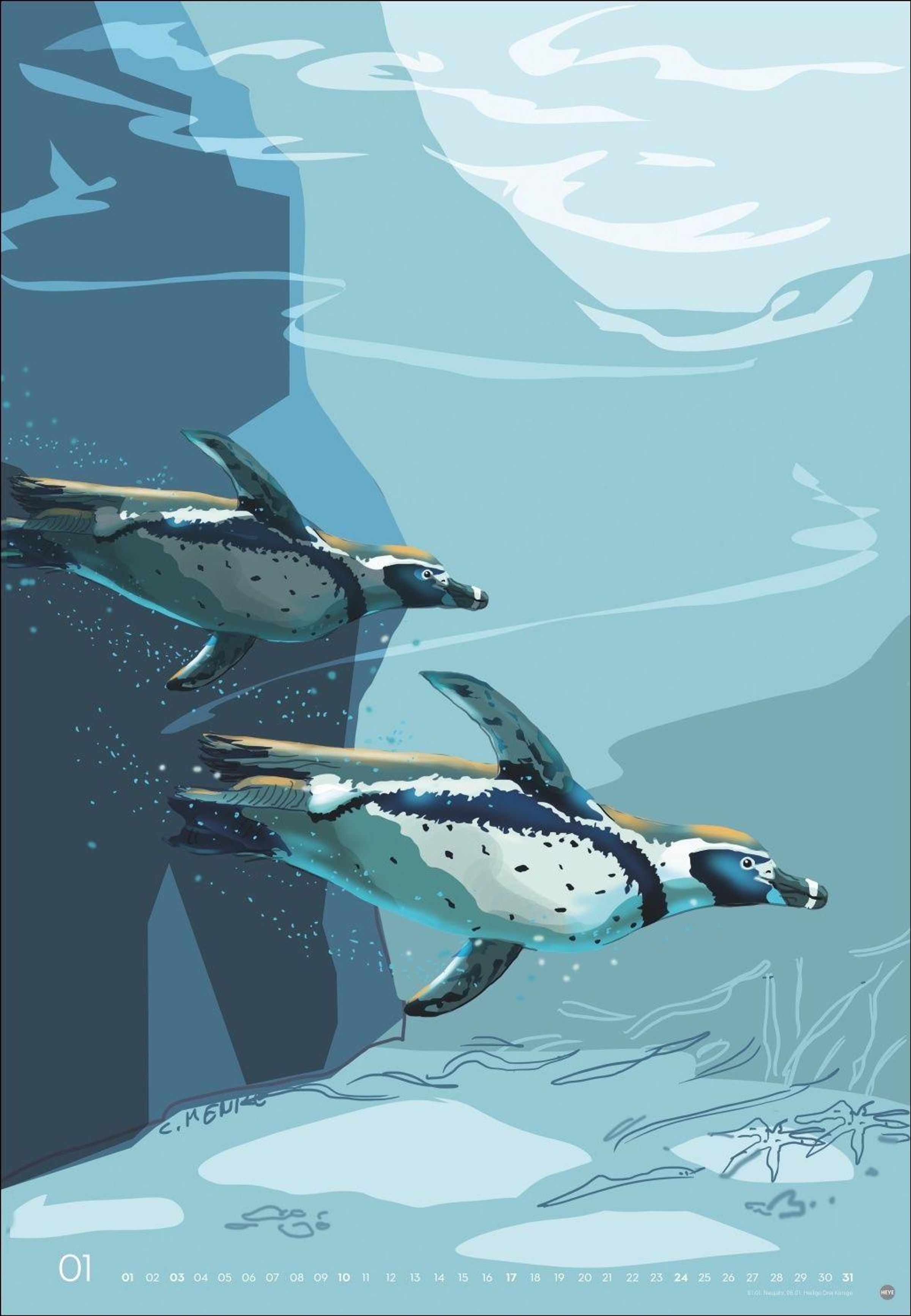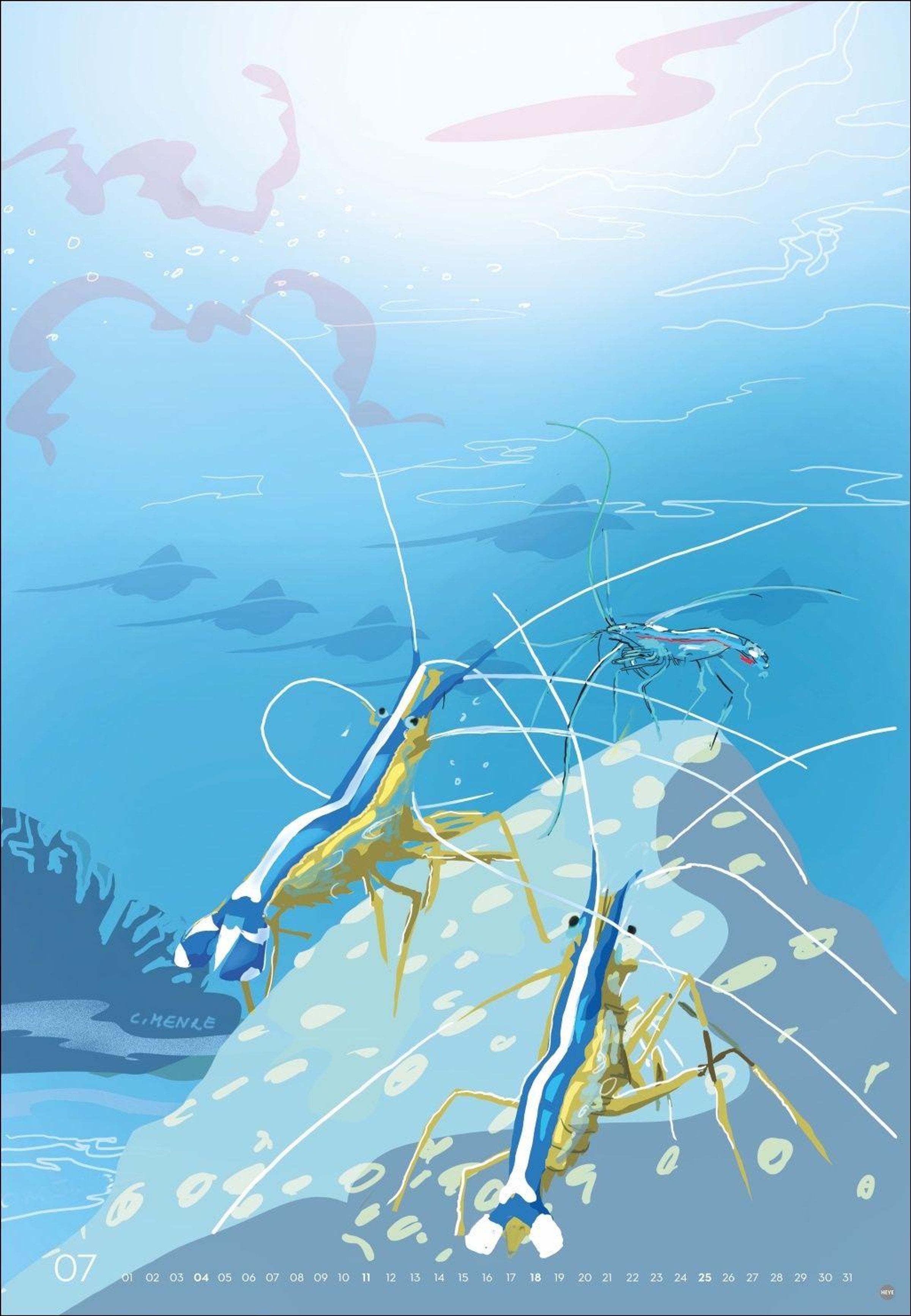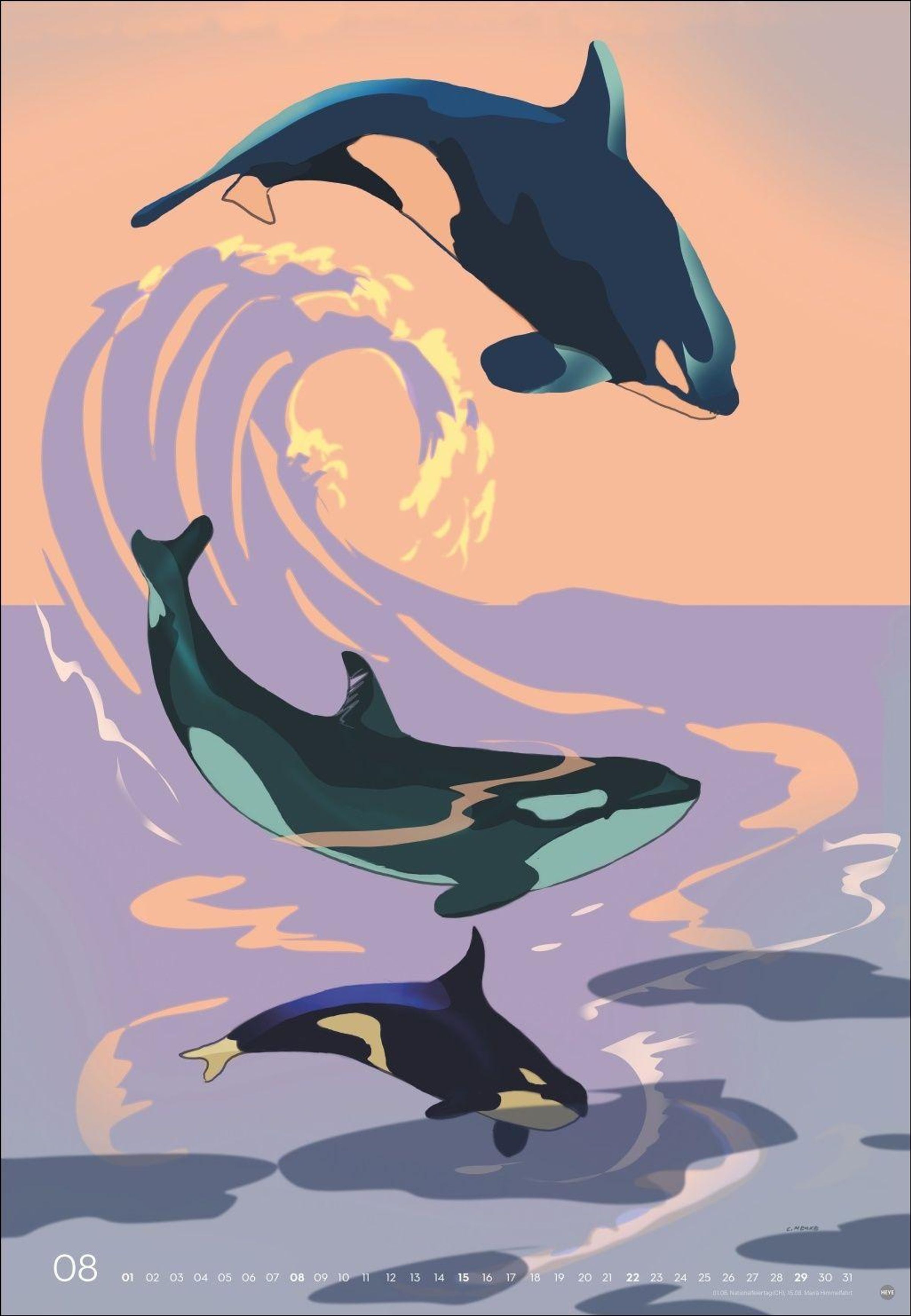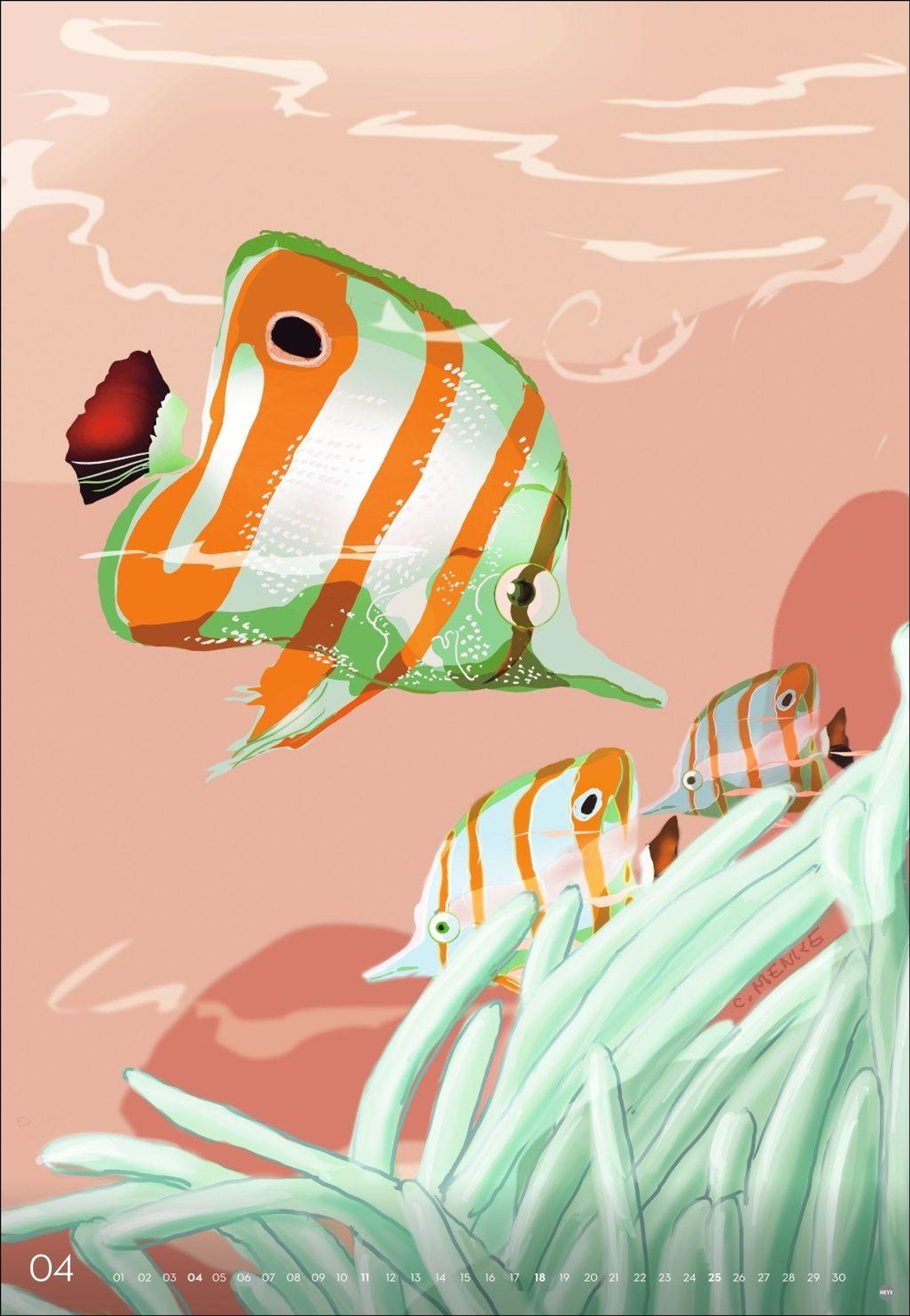 Originelle Deko für maritimes Flair: Großer Wandkalender mit poppigem Artwork der deutschen Künstlerin Chris Menke - nicht nur ein Geschenk für Tierfreunde