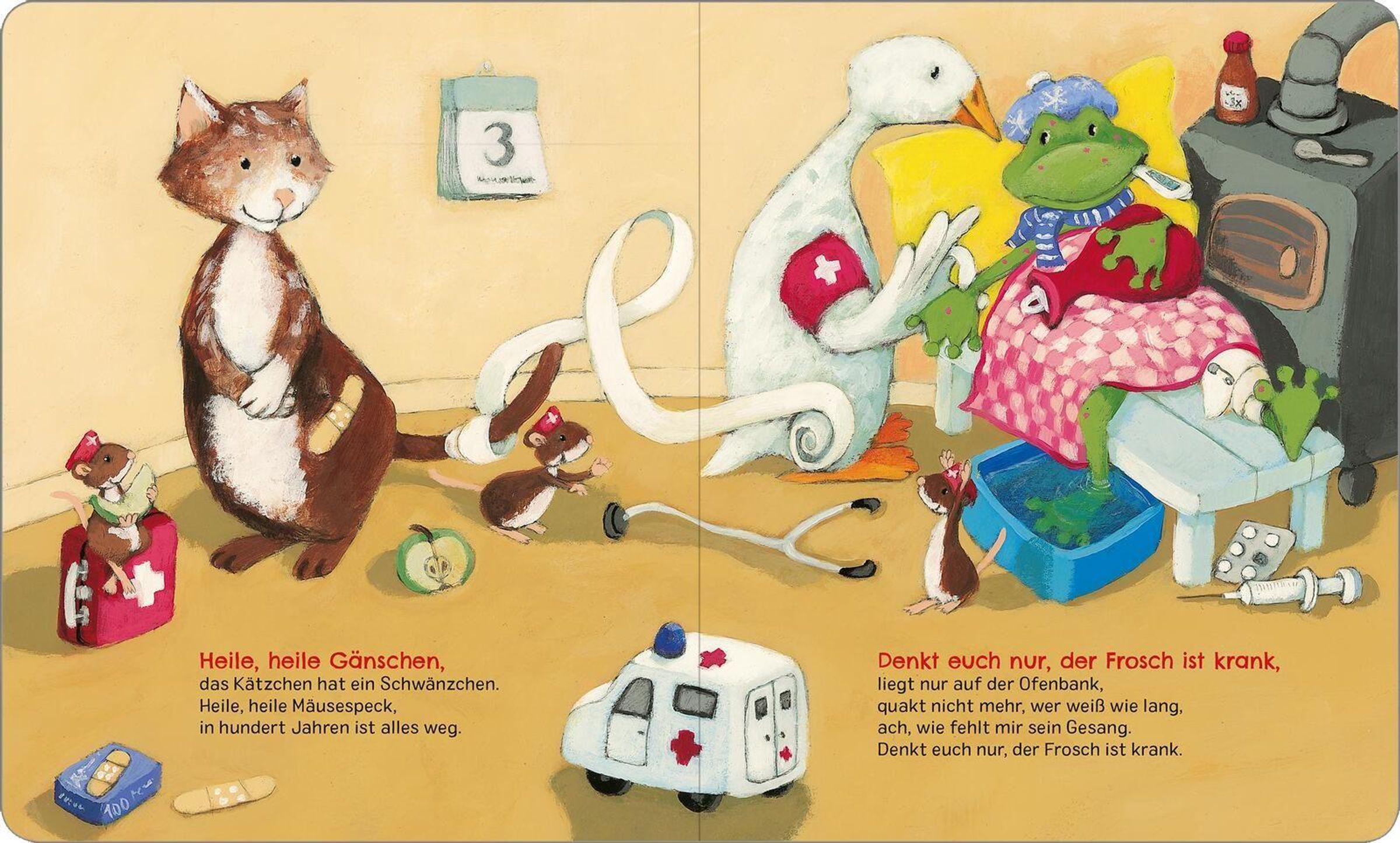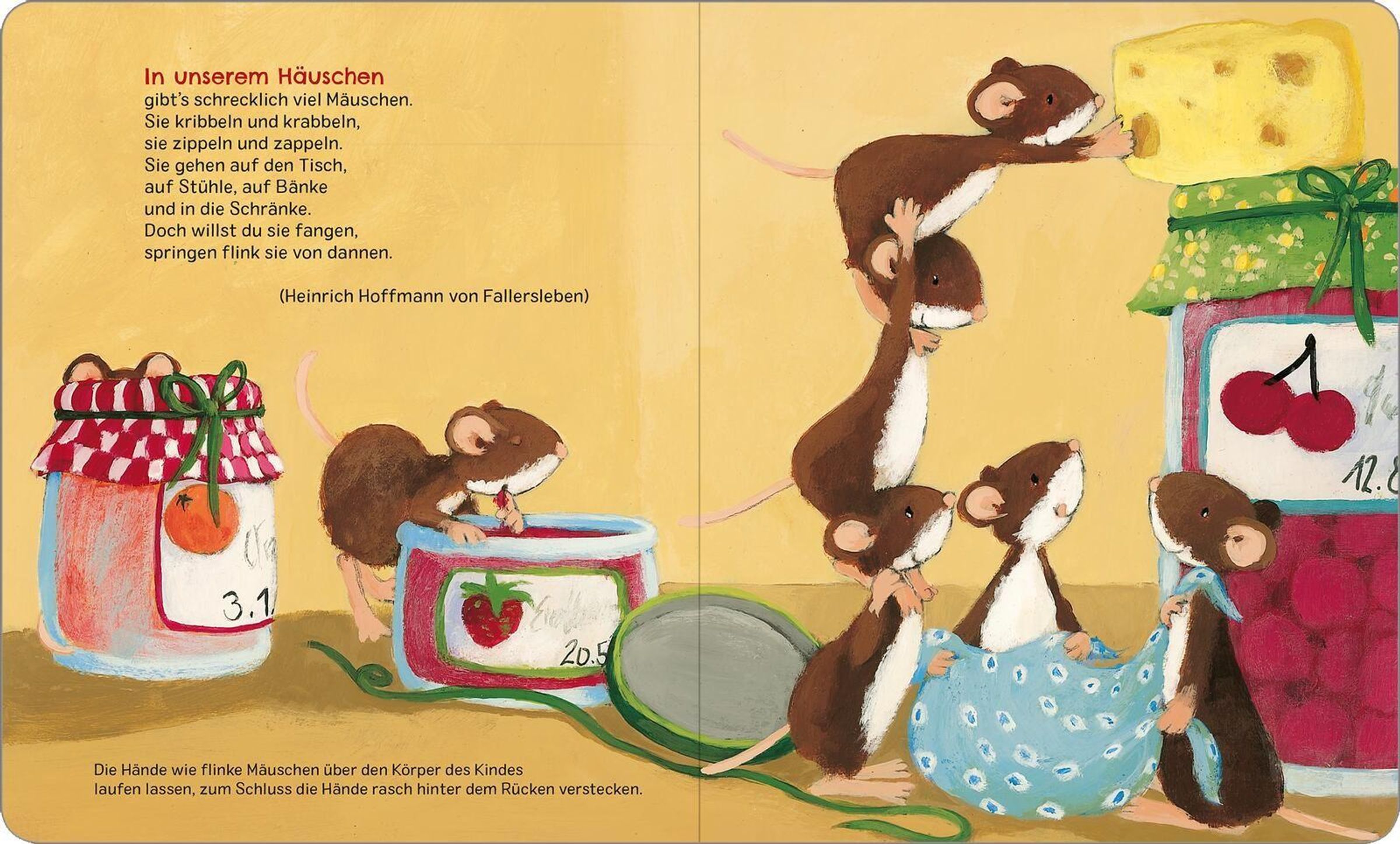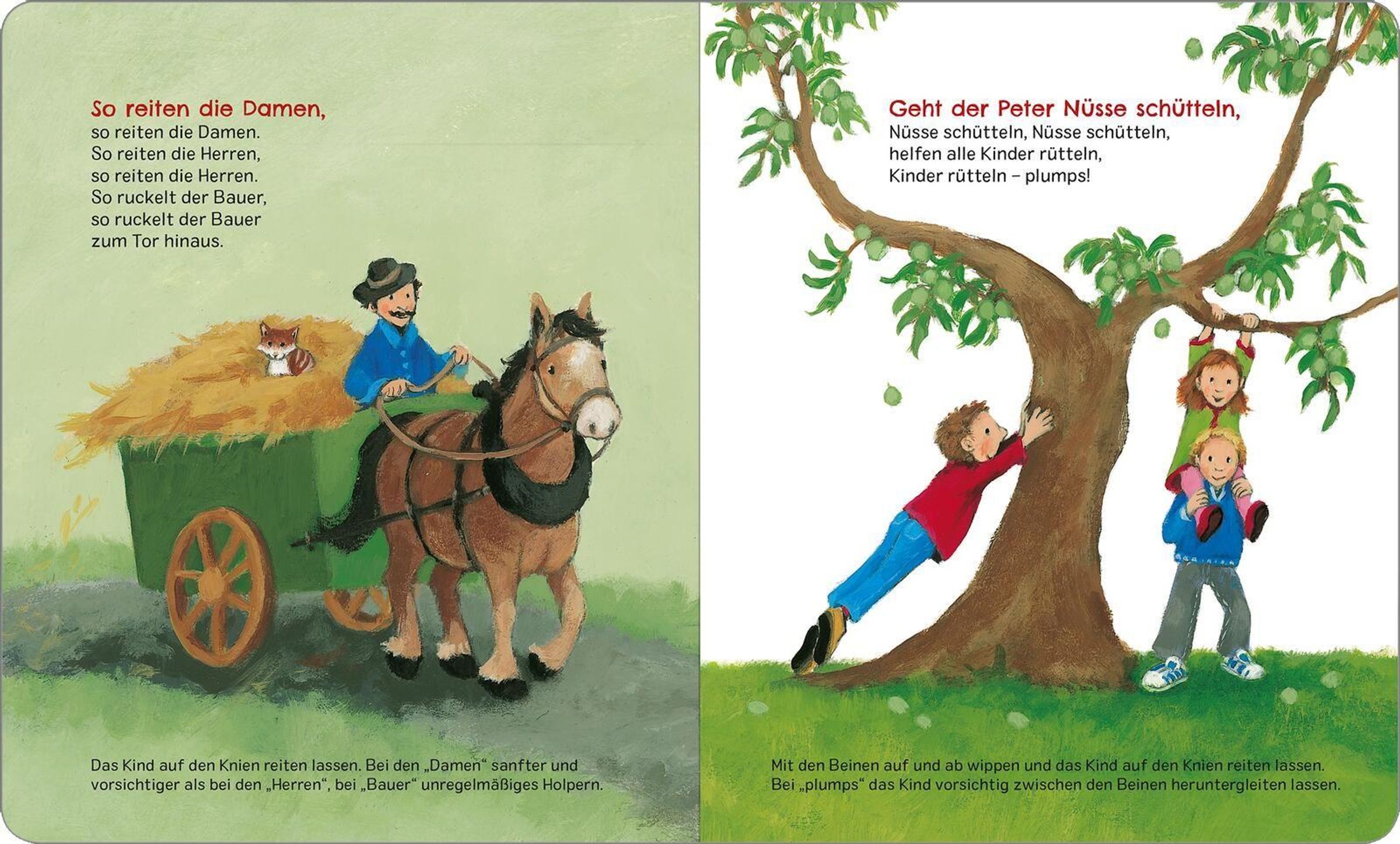 - **Interaktives Vorleseerlebnis:**Leicht verständliche Anleitungen zu den Fingerspielen udn Kniereietern laden zum Mitmachen ein