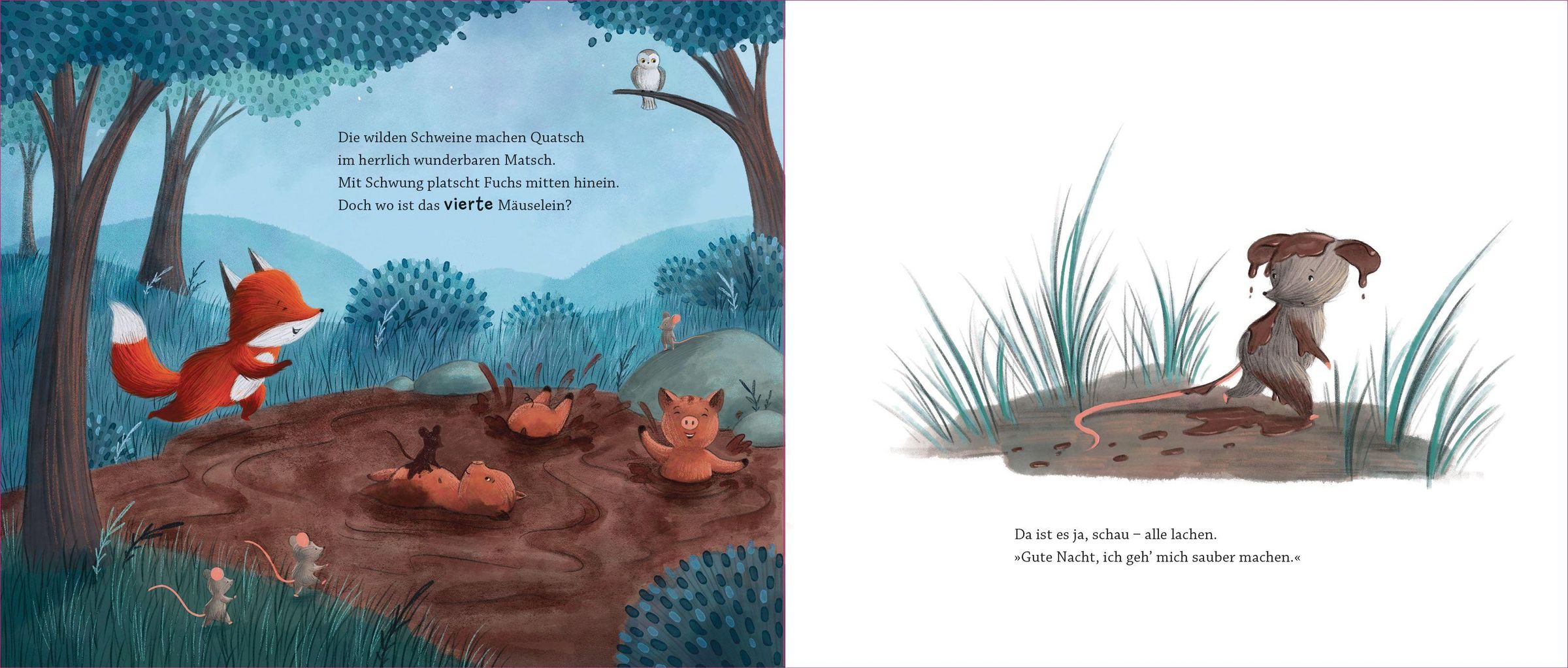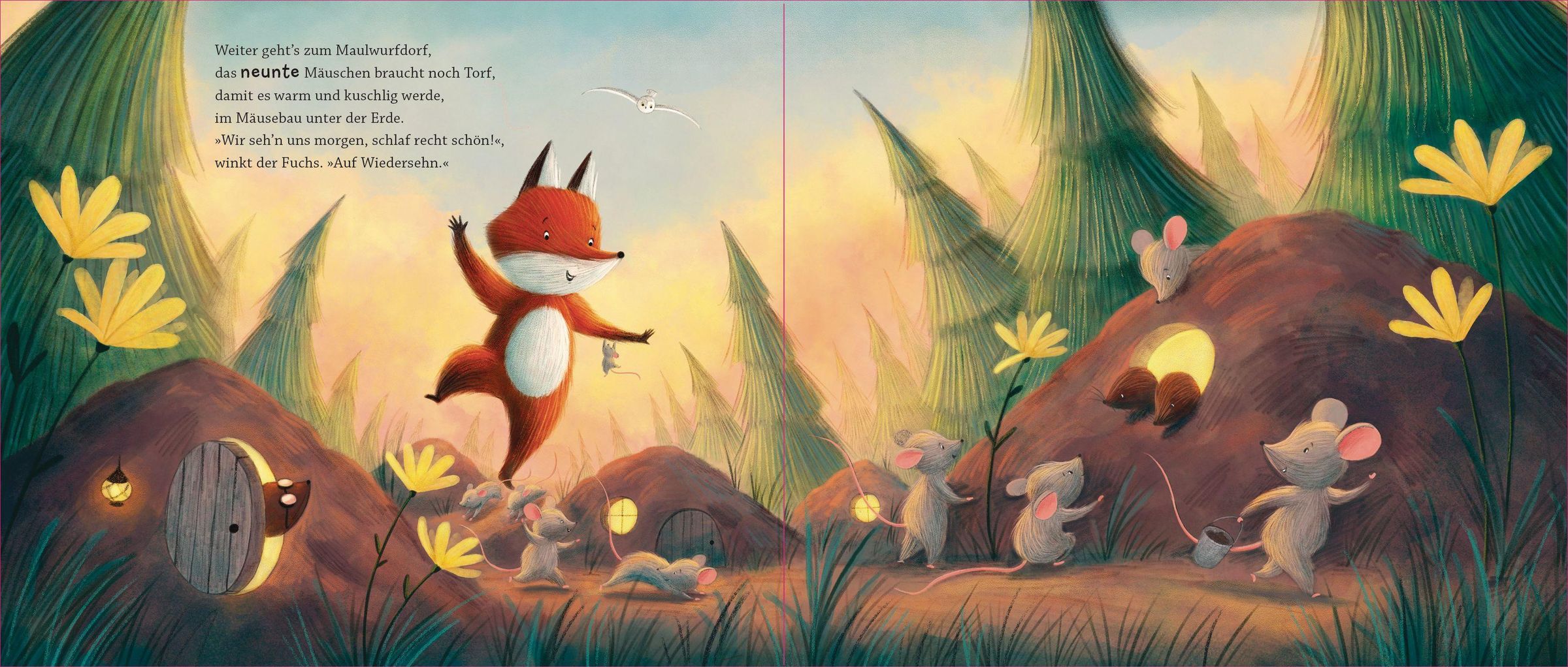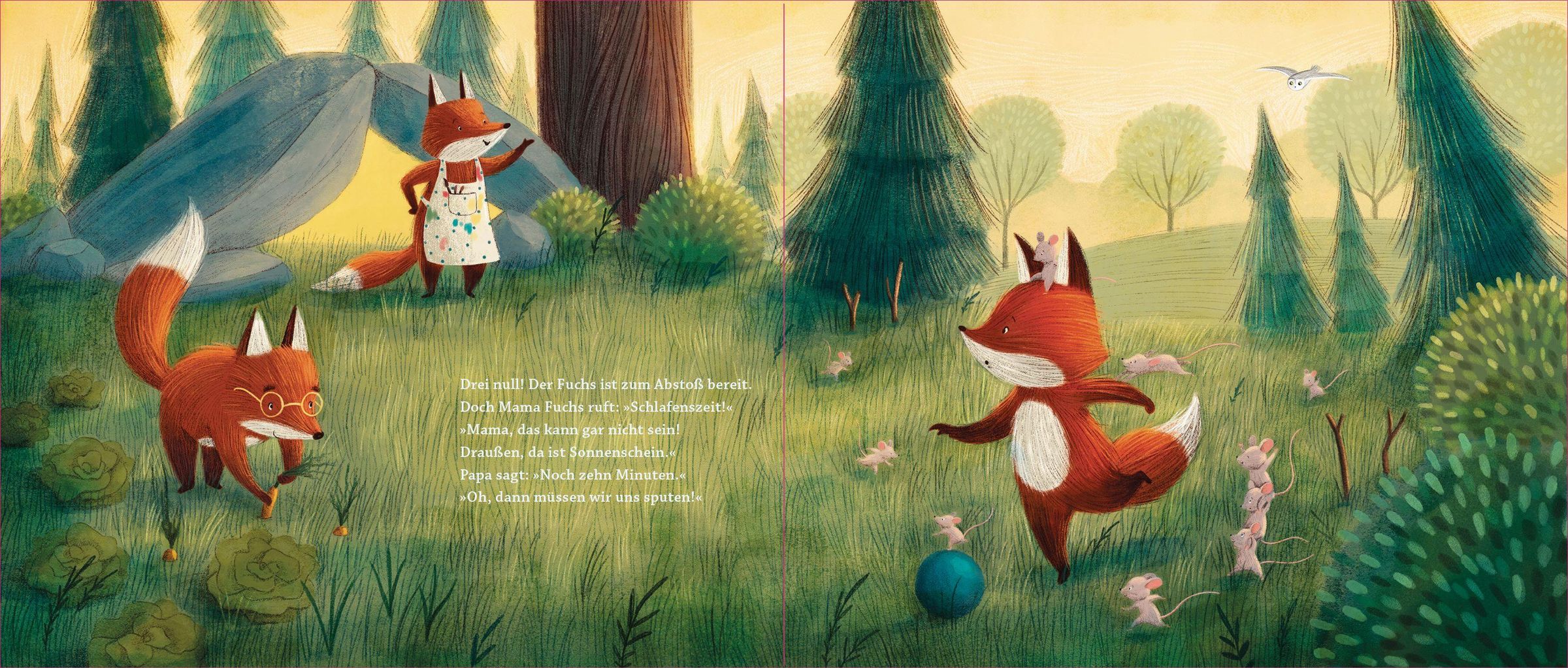 Noch zehn Minuten, dann ist Schlafenszeit. Dabei sind der kleine Fuchs und seine Freunde doch gar nicht müde. Aber Papa Fuchs ist unerbittlich.