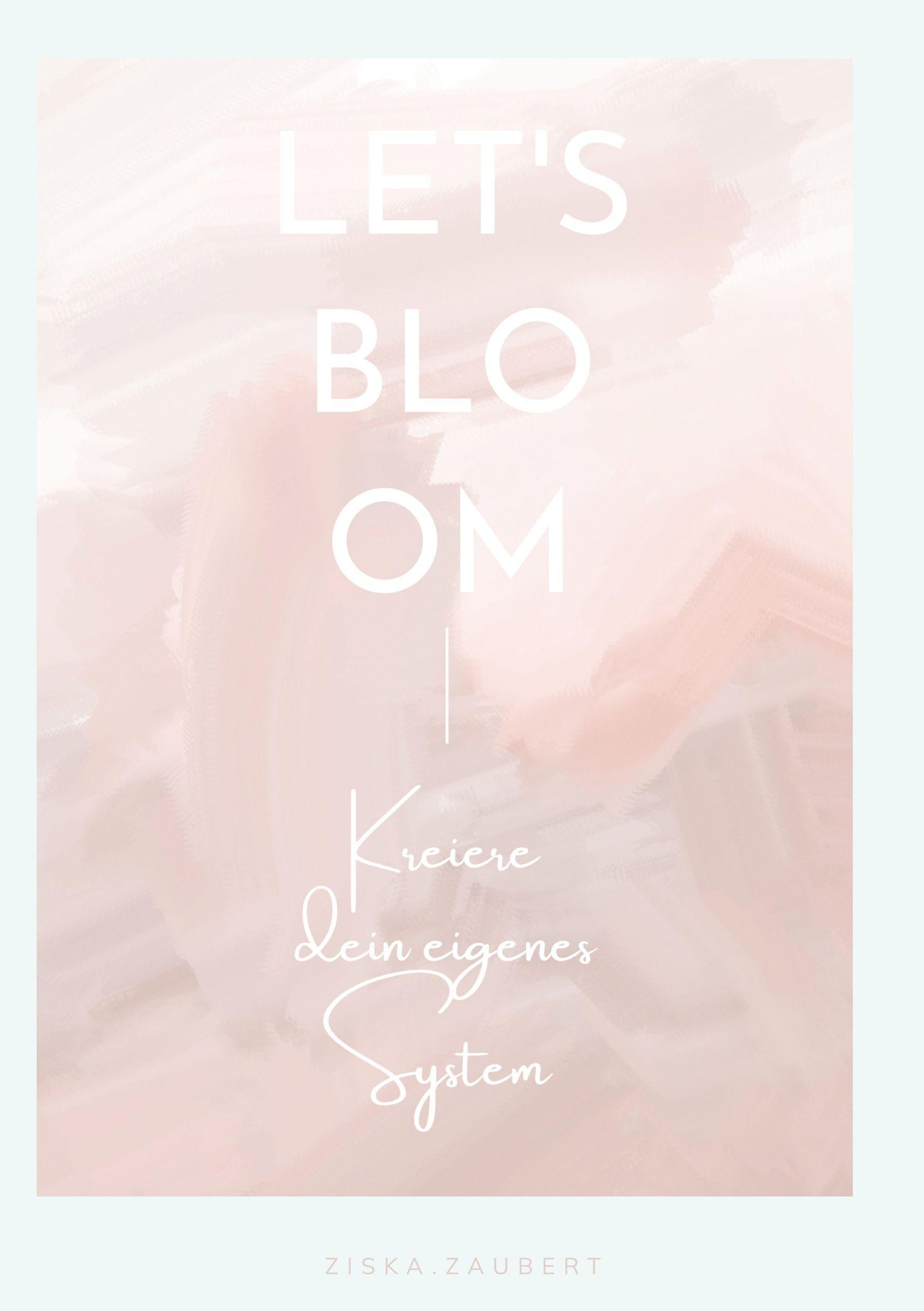 "LET'S BLOOM. Kreiere dein eigenes System. ZISKA.ZAUBERT." Pastellfarben, sanft verwischte, rosa und beige Töne., Buch