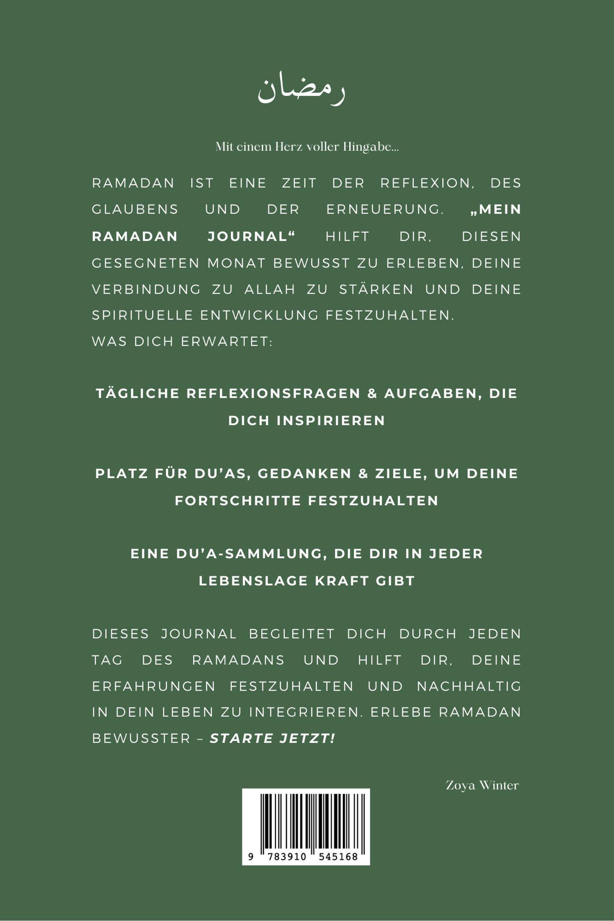 Der heilige Monat Ramadan ist eine Zeit des Wandels, der inneren Reinigung und der spirituellen Erneuerung. Doch inmitten des Alltags kann es herausfordernd sein, sich wirklich auf das Wesentliche zu konzentrieren. Hier kommt "Mein Ramadan" ins Spiel - dein persönliches Journal, das dich Tag für Tag begleitet, inspiriert und motiviert.