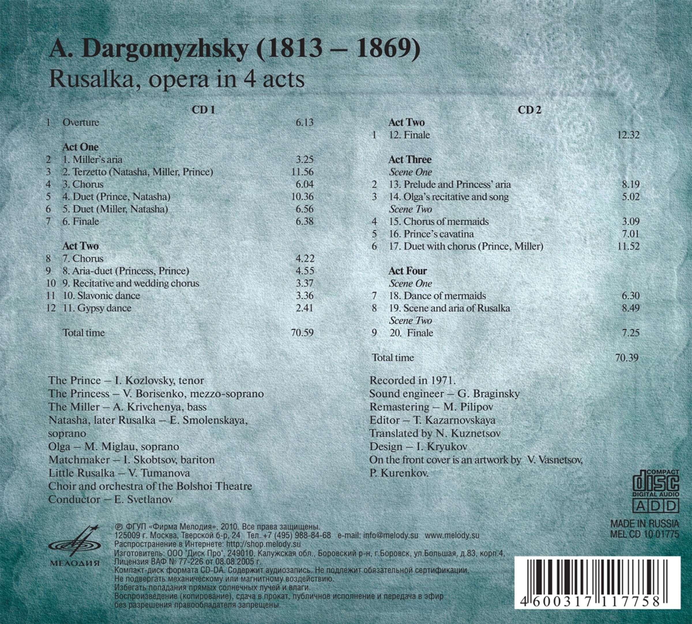 Alexander Dargomyschsky (1813-1869): Rusalka, 2 CDs, 2 CDs