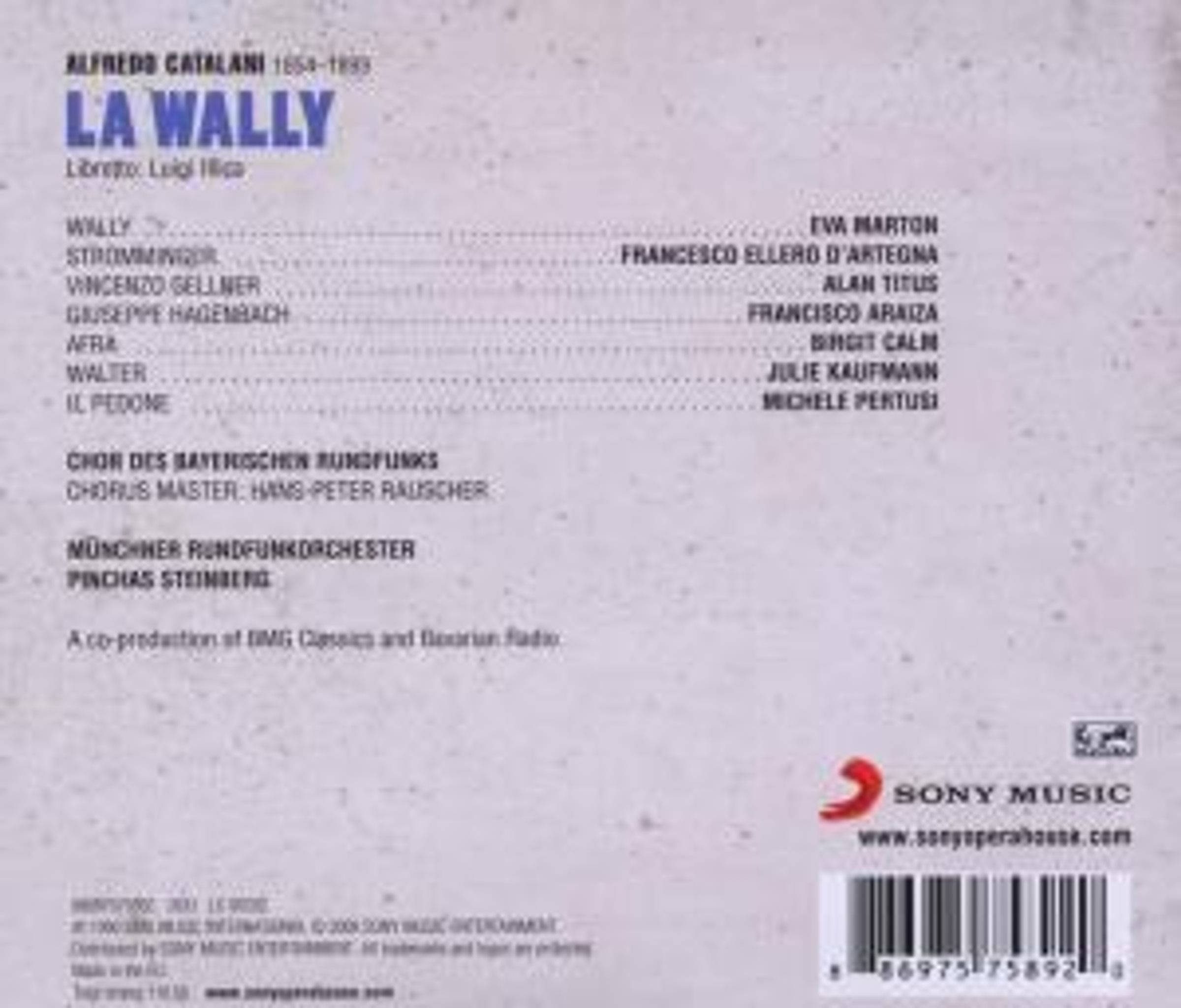 E. Bezold in HiFiVision 9/90: »Pinchas Steinberg durchlebt die Oper voller Hingabe, und nicht nur, wie Eva Marton ihre Rolle stimmlich meistert, verdient hohe Anerkennung: ›La Wally‹ reißt mit - von der ersten bis zur letzten Note.«Disk 1 von 2 (CD)