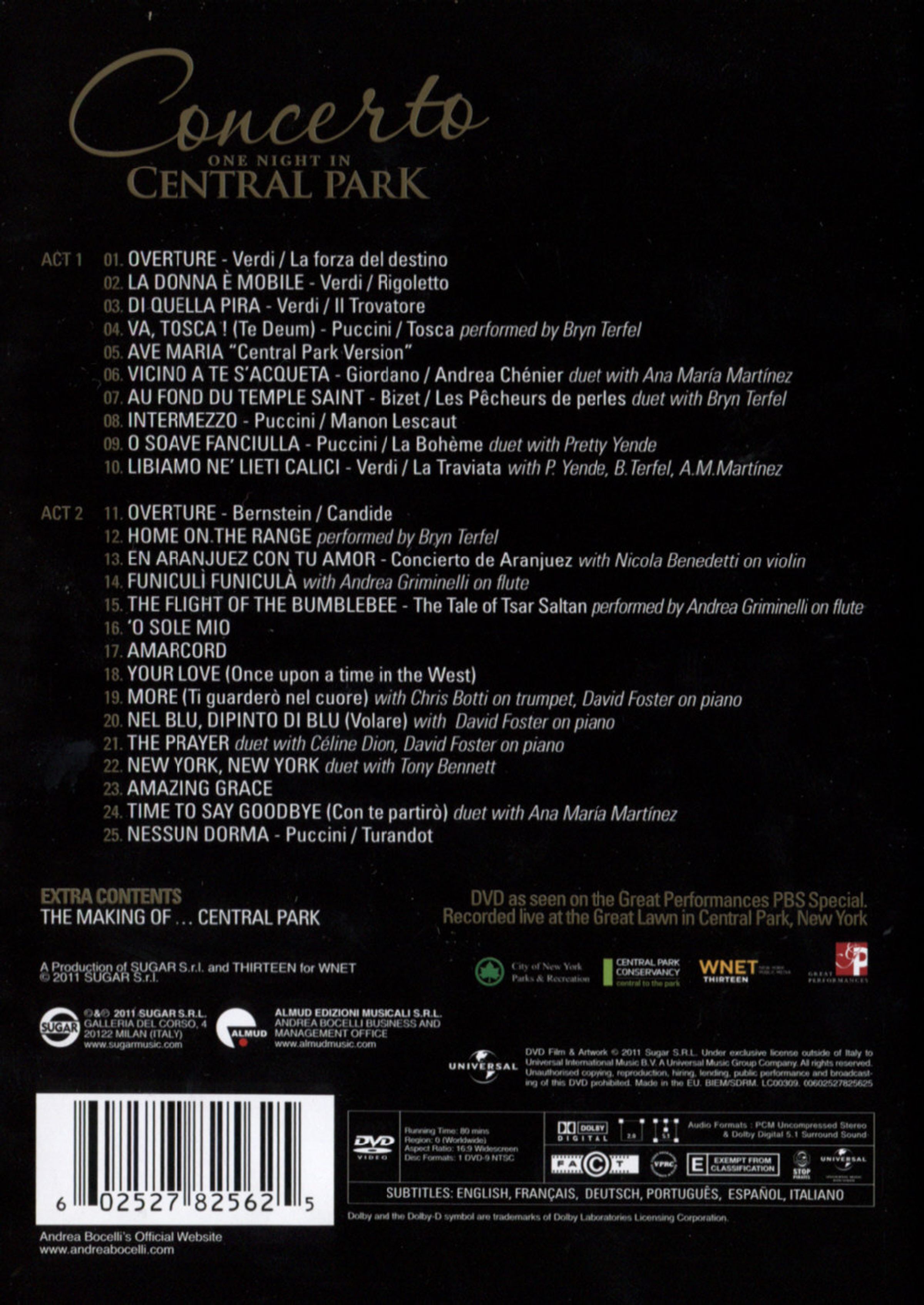 Andrea Bocelli - One Night In Central Park, DVD, DVD
