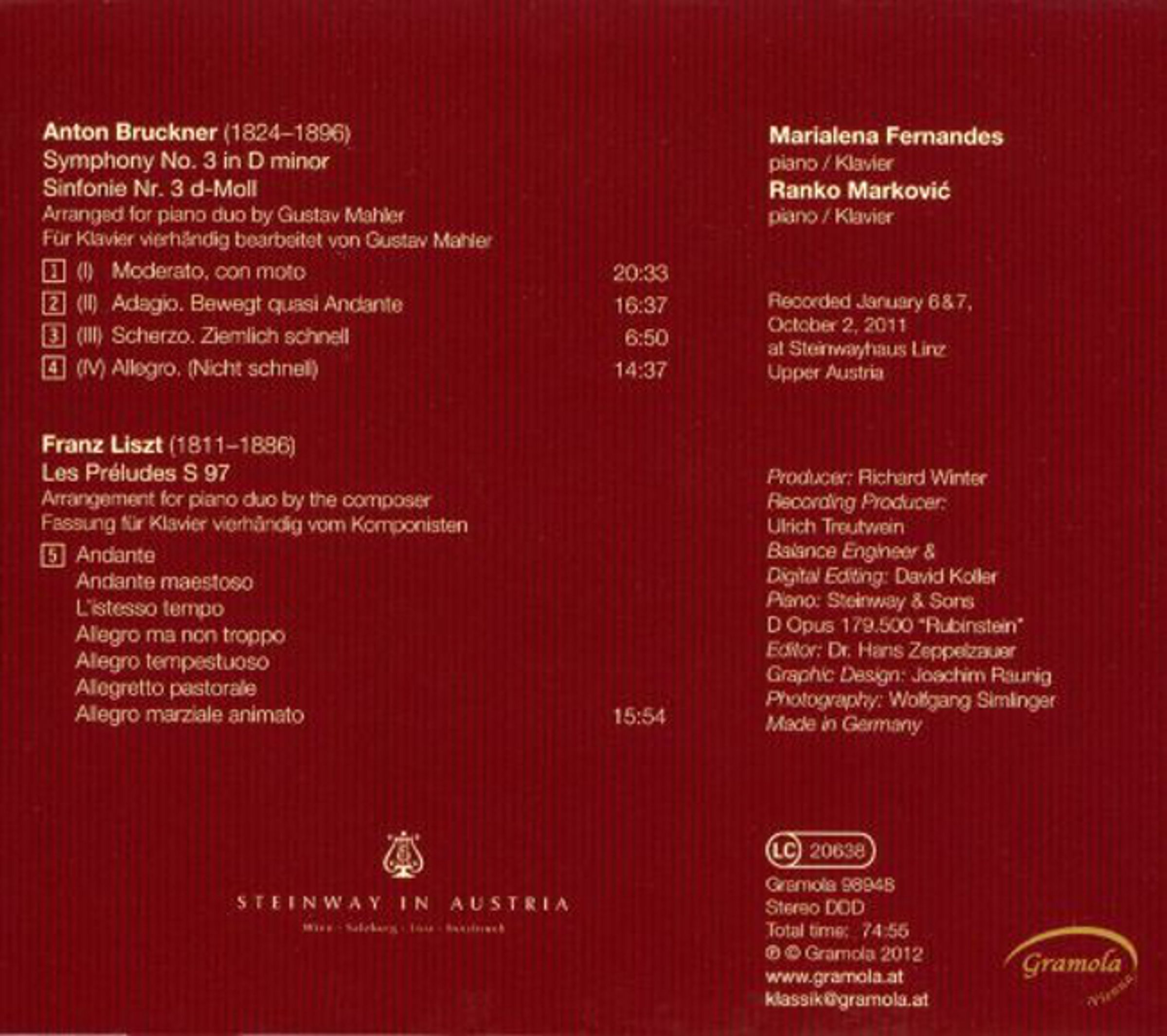 Anton Bruckner: Symphonie Nr.3 arr.für Klavier 4-händig auf CD