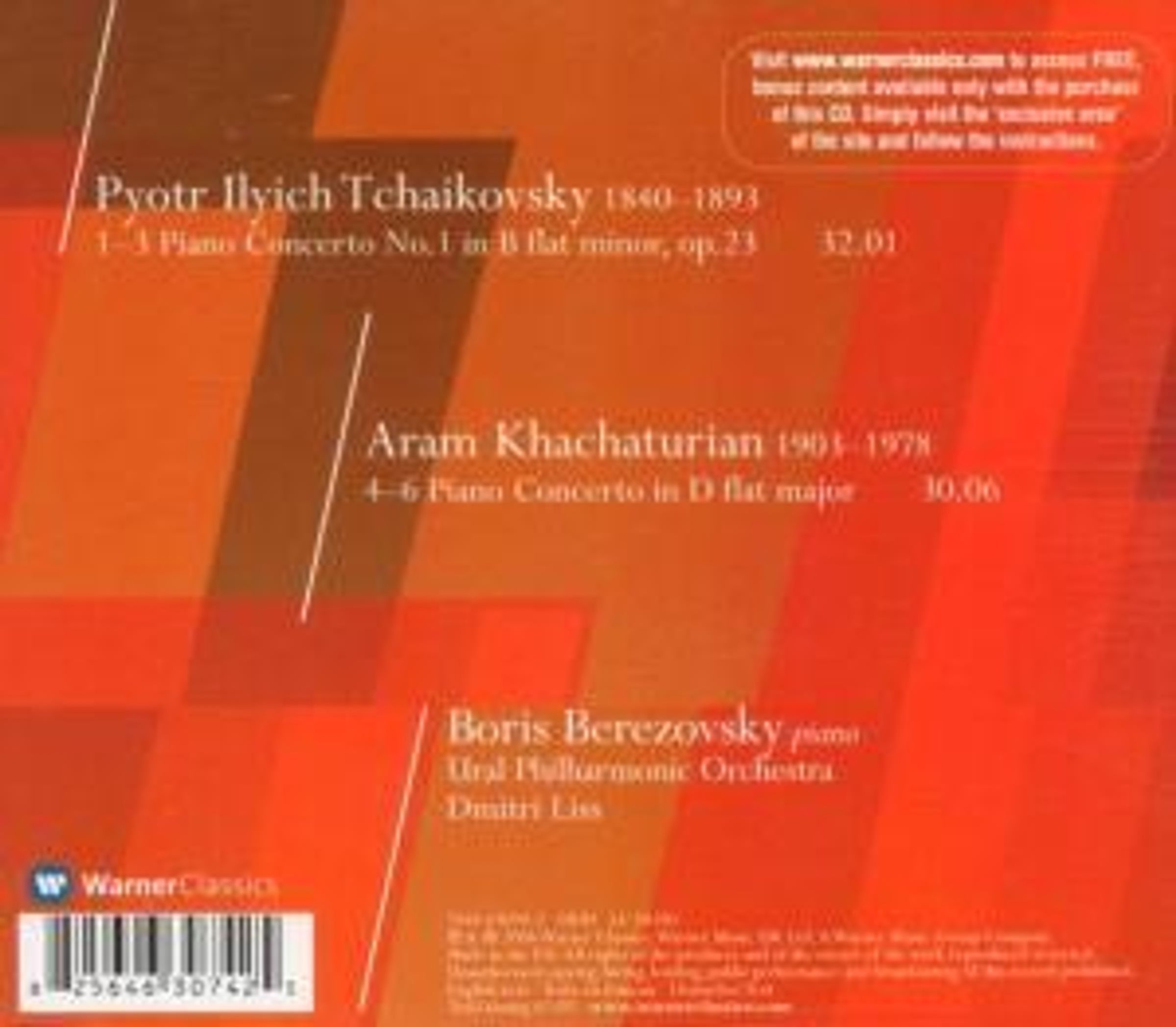 M. Stenger in FonoForum 09/06: »Wie Berezovsky nun mit dem zupackenen Philharmonischen Orchester des Ural unter Dmitri Liss ein viel geschundenes, aber auch tief ausgelotetes Werk wie Tschaikowskys erstes Klavierkonzert aus der Sphäre der nur gestylten Eleganz heraushebt, ist bemerkenswert. Da herrscht im straff genommenen ersten Satz ein mitreißend drängender Atem, da wird das Andantino wirklich mal ›semplice‹ begriffen.«Disk 1 von 1 (CD)