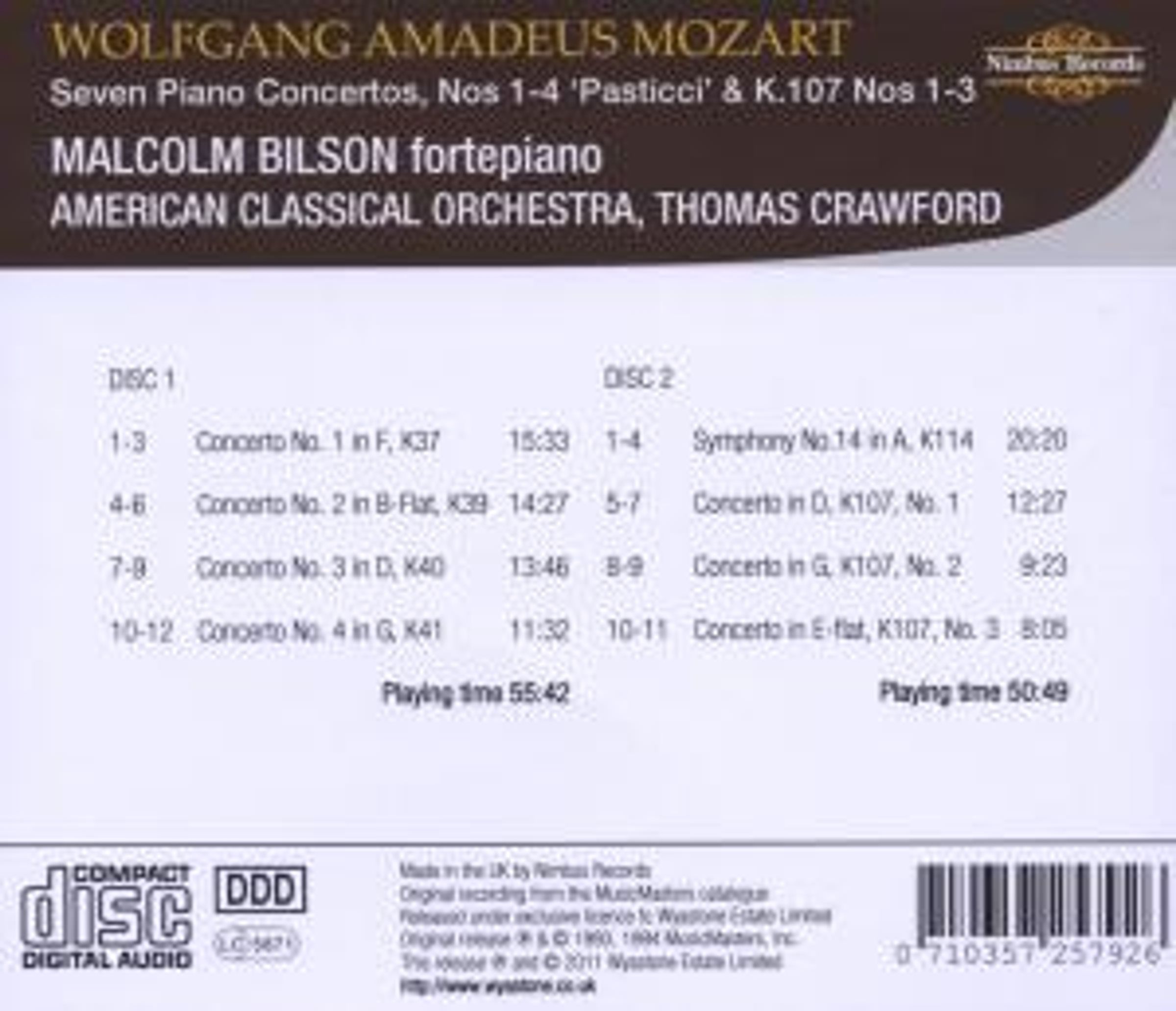 - Malcolm Bilson (Hammerklavier), American Classical Orchestra, Thomas Crawford