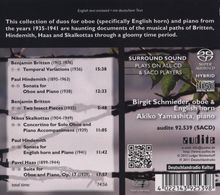 Die vorliegenden Duo-Werke für Oboe (bzw. Englischhorn) und Klavier von Benjamin Britten, Pavel Haas, Paul Hindemith und Nikos Skalkottas sind nicht nur durch ihren Entstehungszeitraum der Jahre 1935-1941 aufeinander bezogen, sondern bilden auch als eindringliche Dokumente kompositorischer Lebenswege in einer sich zunehmend verdüsternden Zeit einen engen Zusammenhang. Hindemiths Sonaten für Oboe bzw. Englischhorn und Klavier reflektieren Verinnerlichung und handwerkliche Gelassenheit vor und während der Emigration. Die Suite von Pavel Haas ist ein subtiler Protest gegen die Annektion der Tschechoslowakei durch NS-Deutschland. Skalkottas’ Concertino ist Teil des einzigartigen Oeuvres, das der Schüler Schönbergs in künstlerischer Isolation und unter desolaten äußeren Umständen in seiner griechischen Heimat schrieb. In den beiden genialischen Stücken des jungen Benjamin Britten schließlich ist unter der Oberfläche virtuosen Glanzes ein tiefes Unbehagen gegenüber den politischen Verhältnissen der Vorkriegszeit spürbar. Eine enorme Bereicherung für das schmale Repertoire der Oboenliteratur im 20. Jahrhundert, stellen diese Werke eine ebenso anspruchsvolle musikalische wie gestalterische Herausforderung für die Interpreten dar.